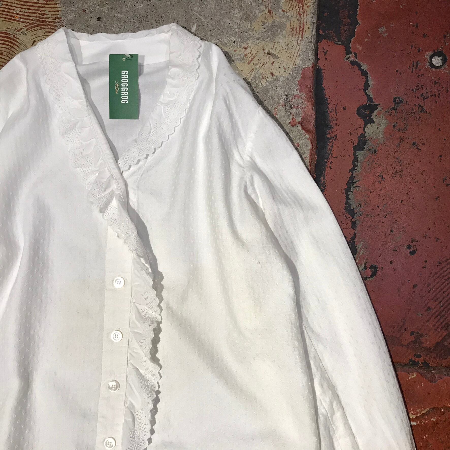 袖口や襟からフロントにかけてフリルレースも品良く素敵なアイテム。