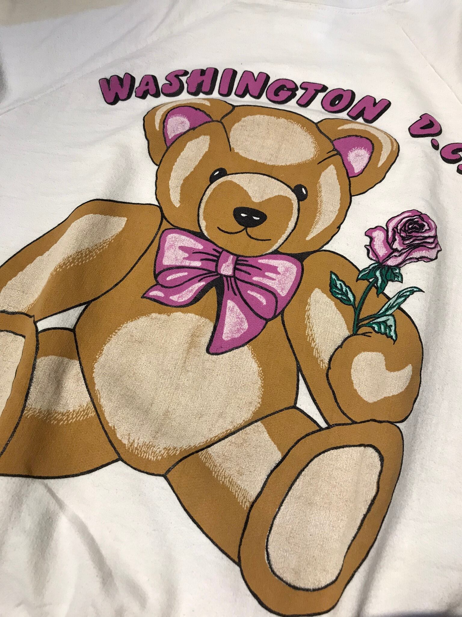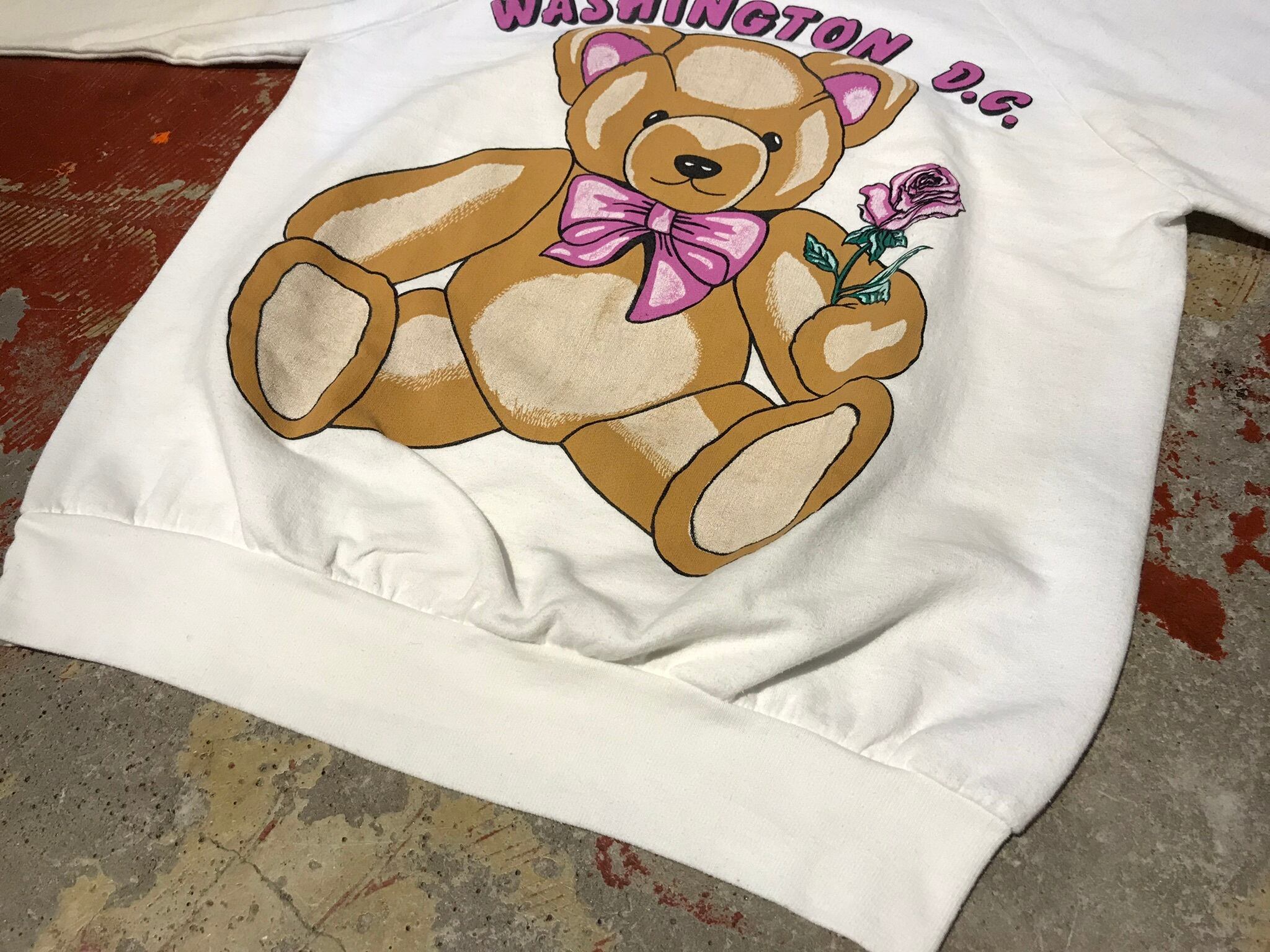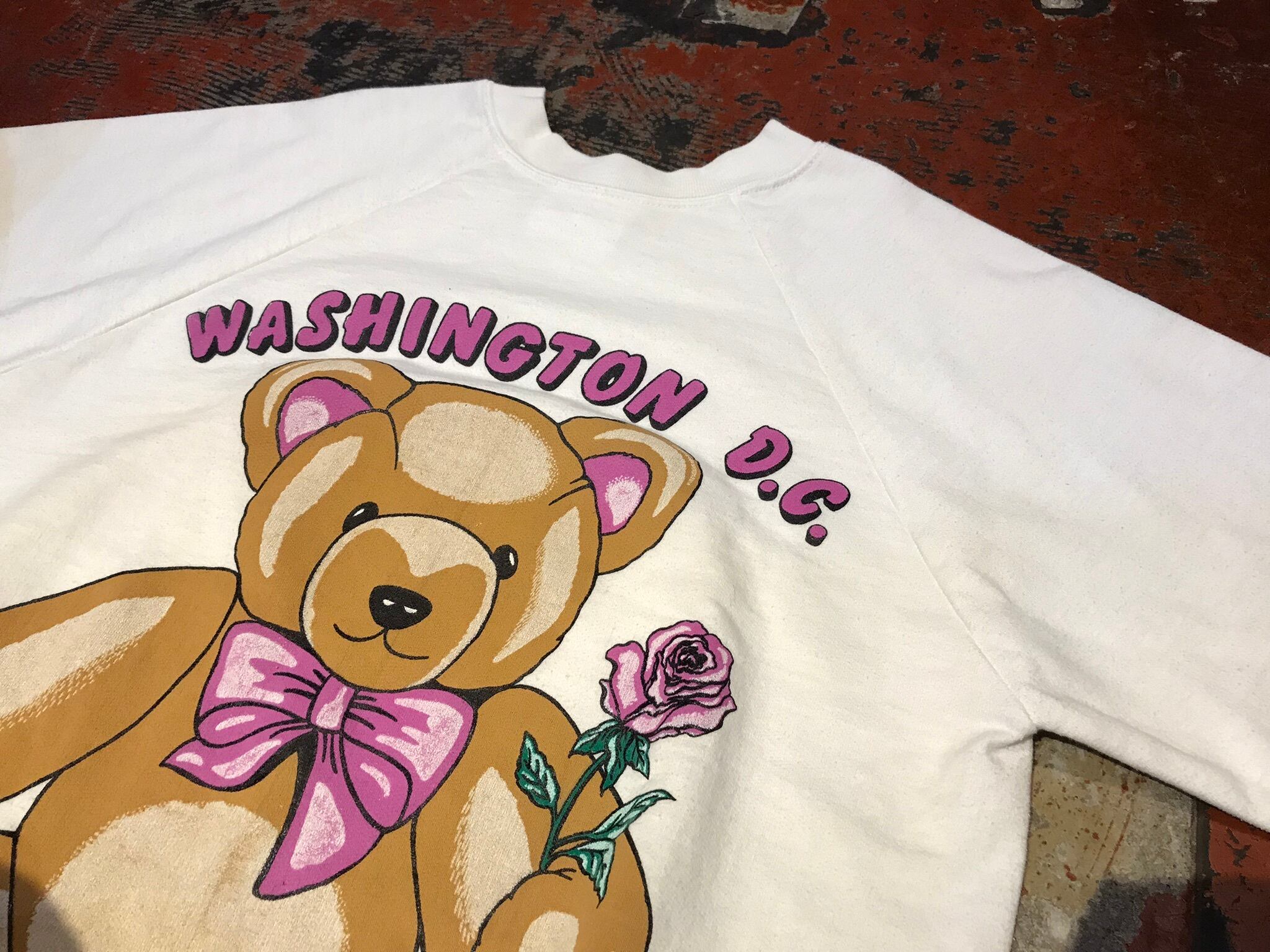 ワシントンD.C.のロゴ、くまちゃんの首にはリボンが付き、薔薇を持ったデザインで可愛らしく、ゆったりとしたサイズ感でシルエットの良い1着です。