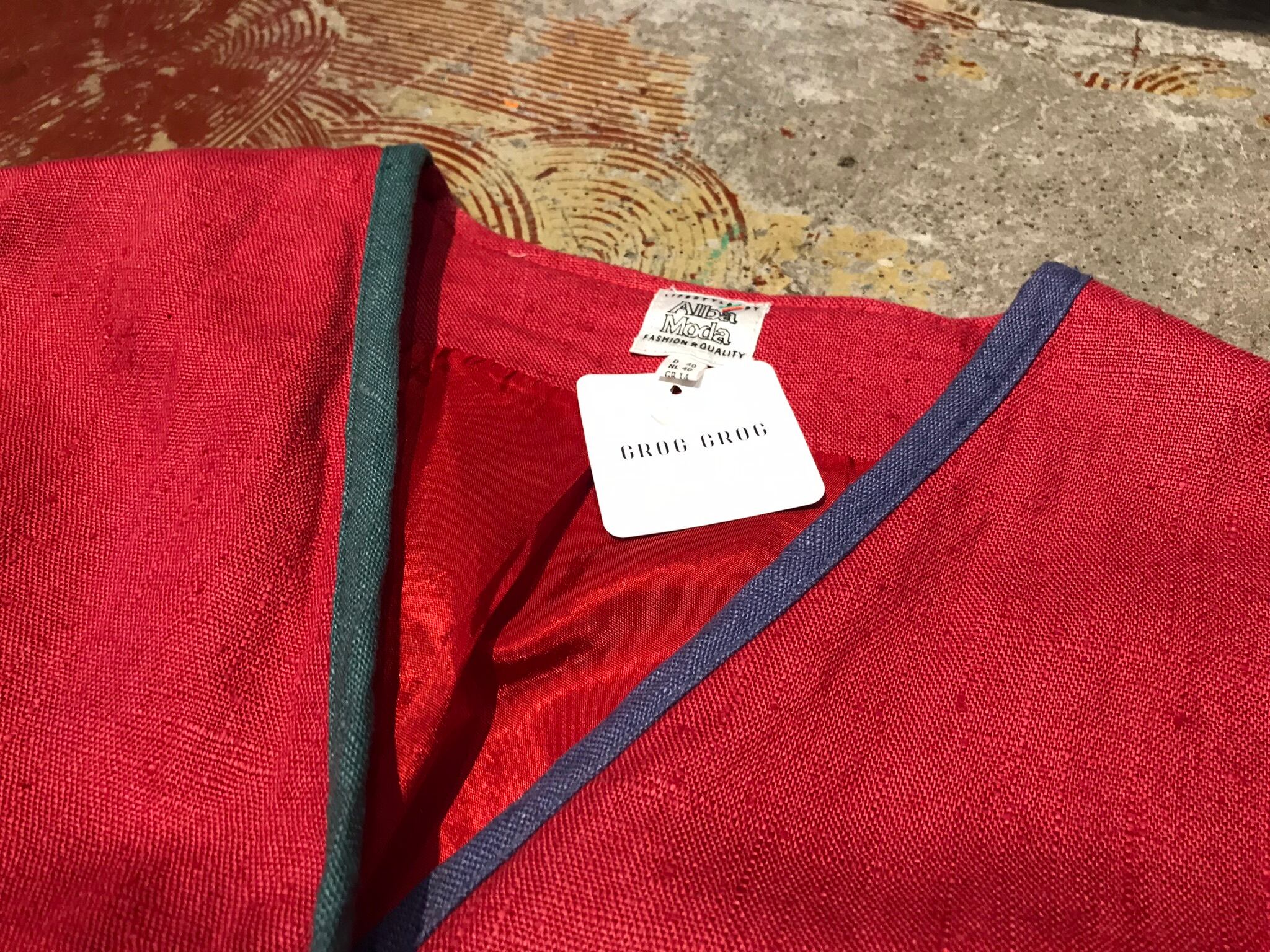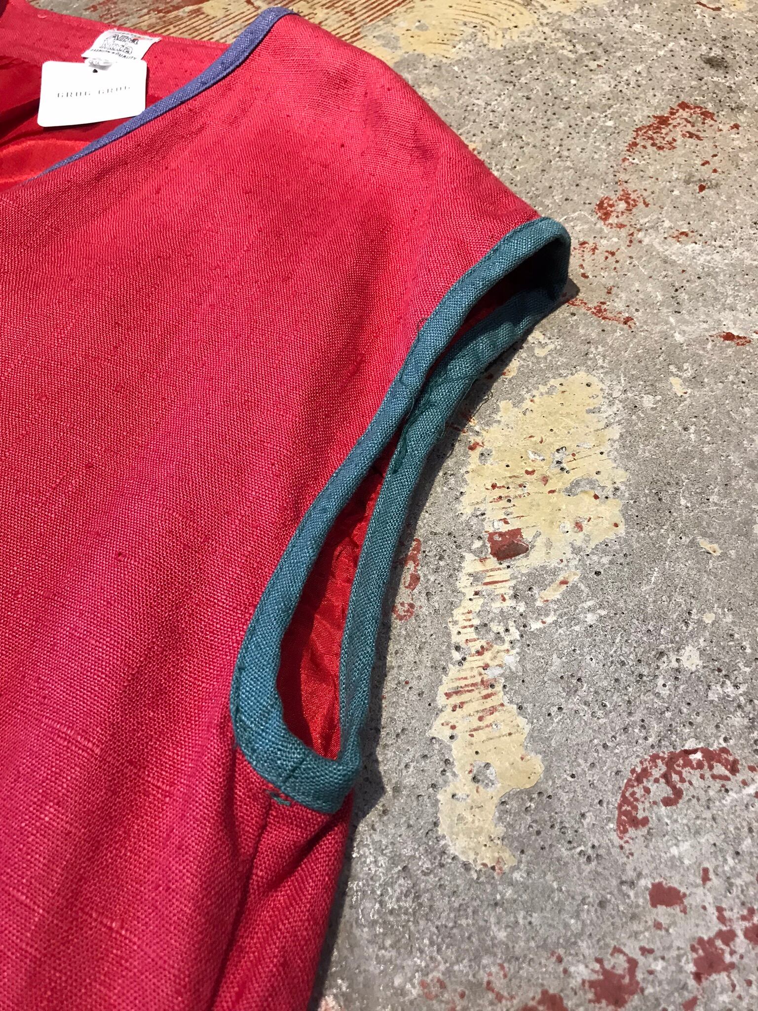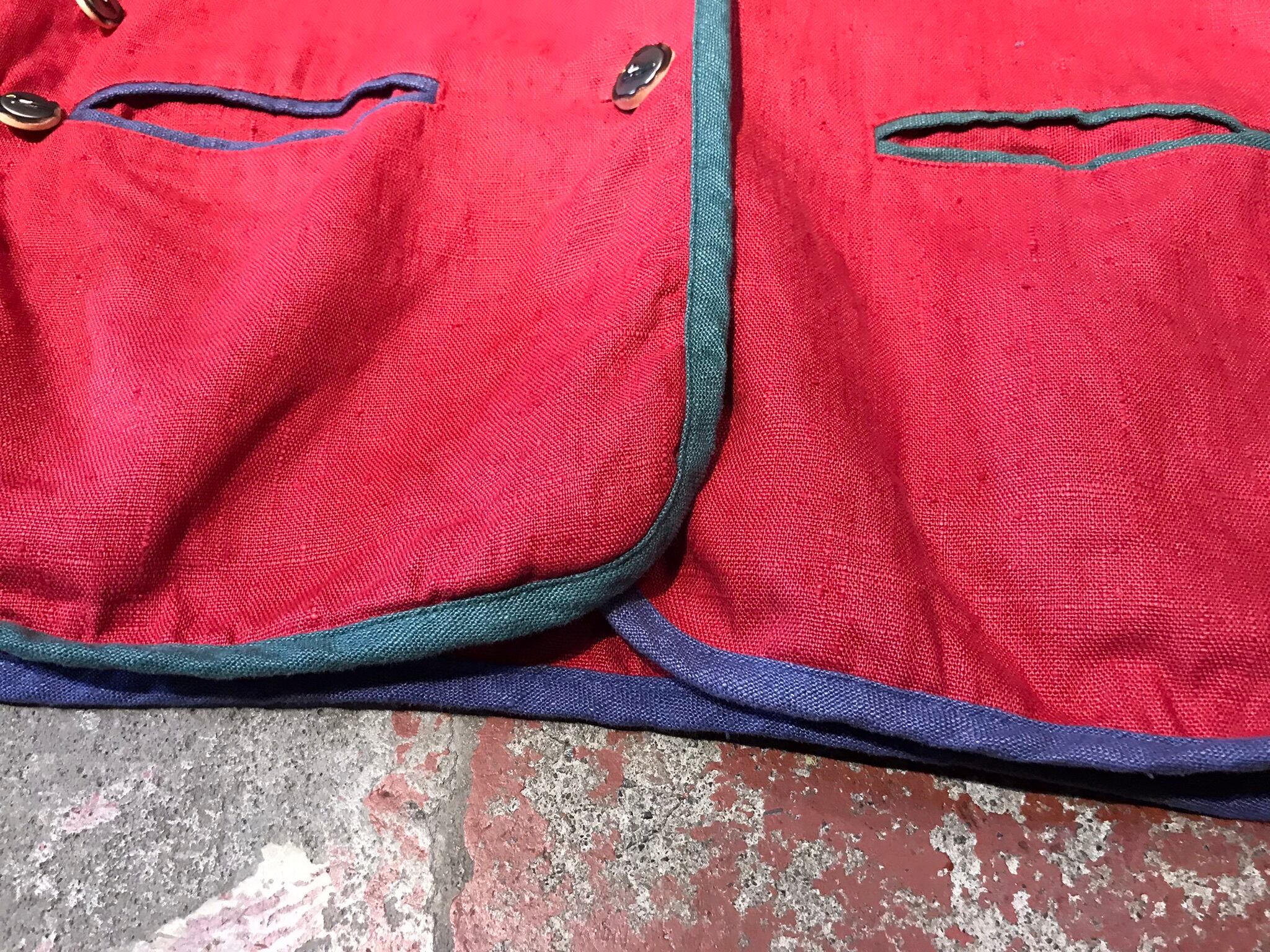 くすんだレッドボディにカラフルパイピングやチロルらしいボタン装飾が惹くビンテージならではな1着。