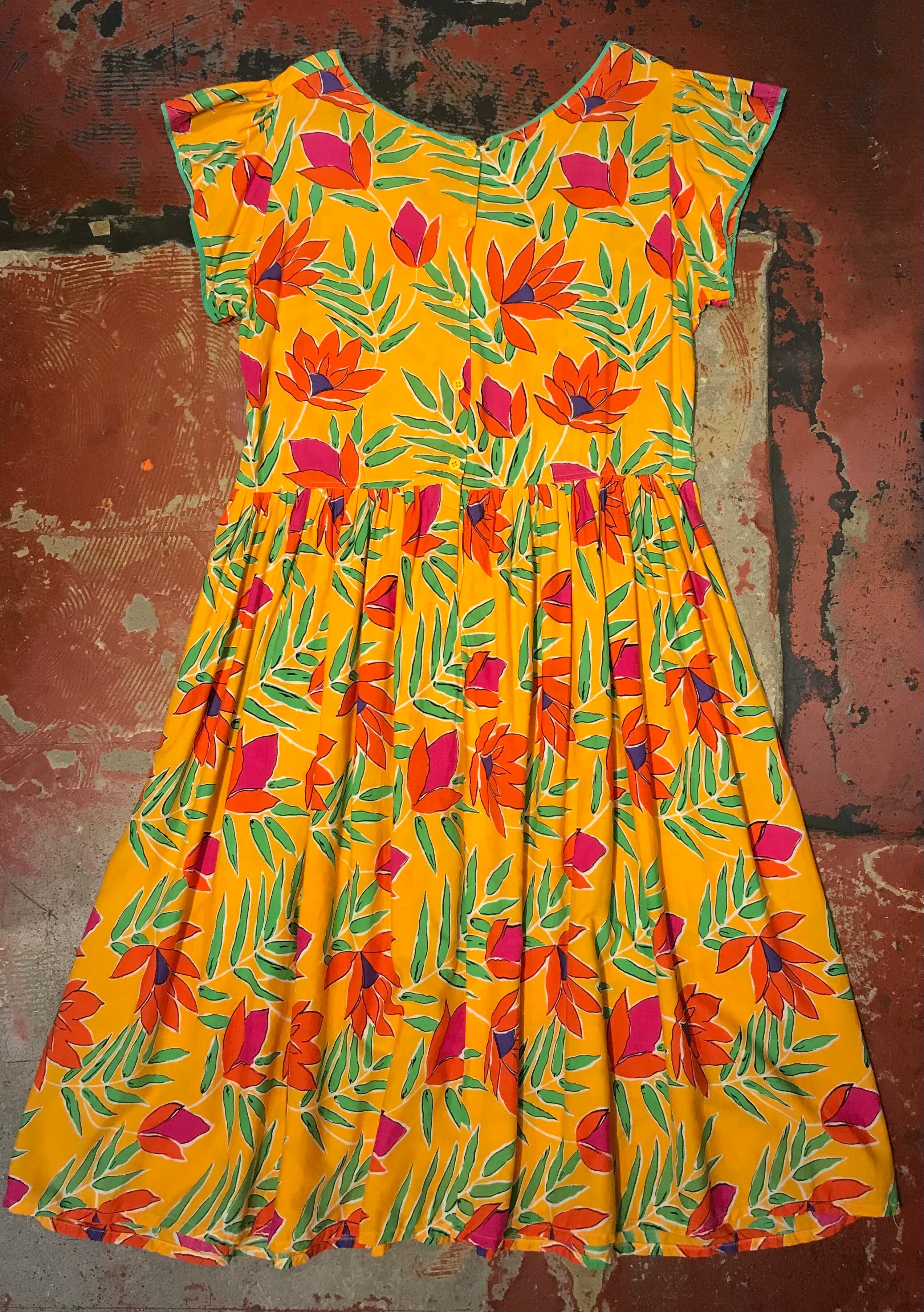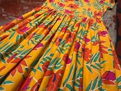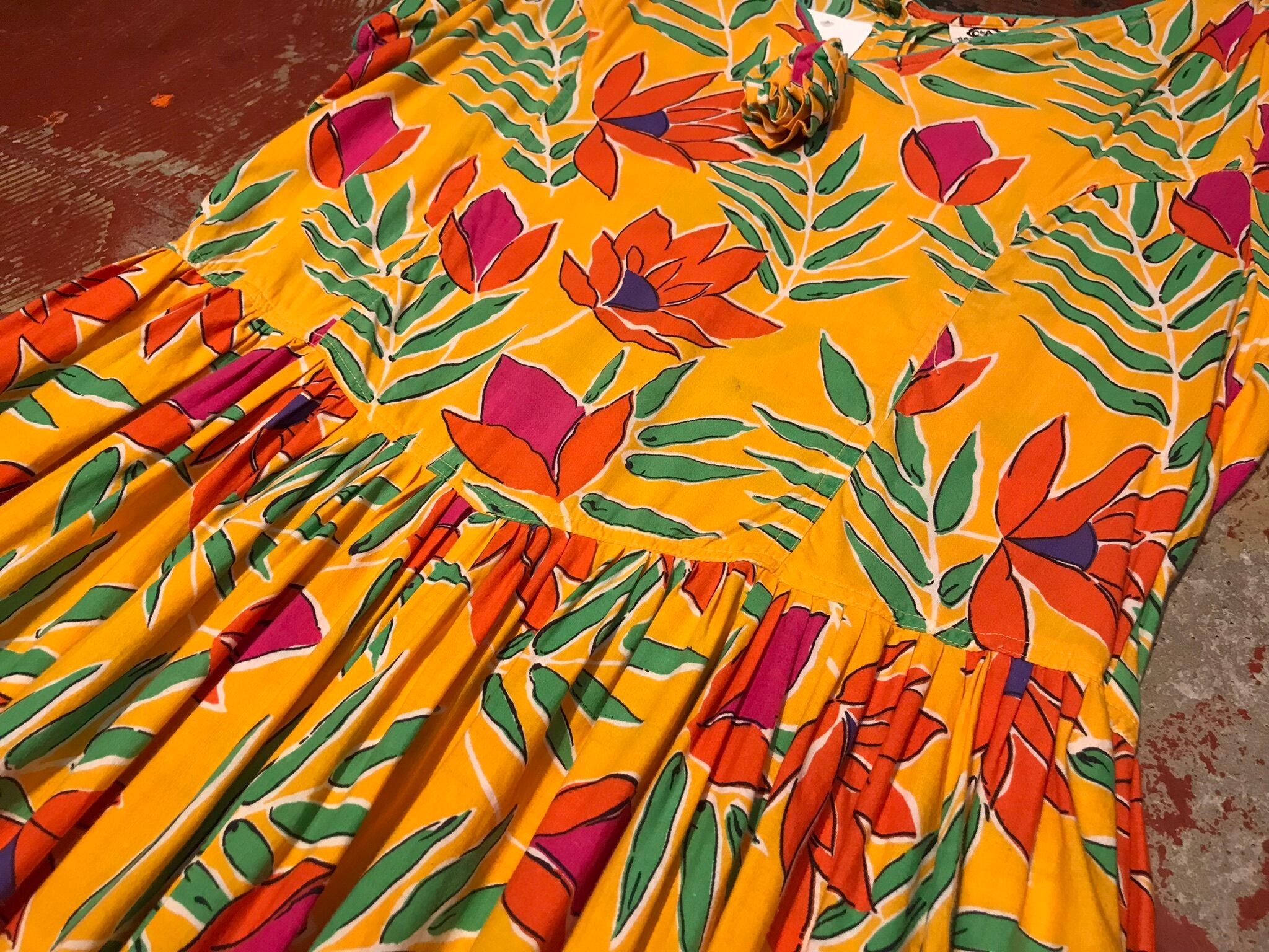 鮮やかなオレンジボディにパキッとしたフラワープリントが目を奪う一着。