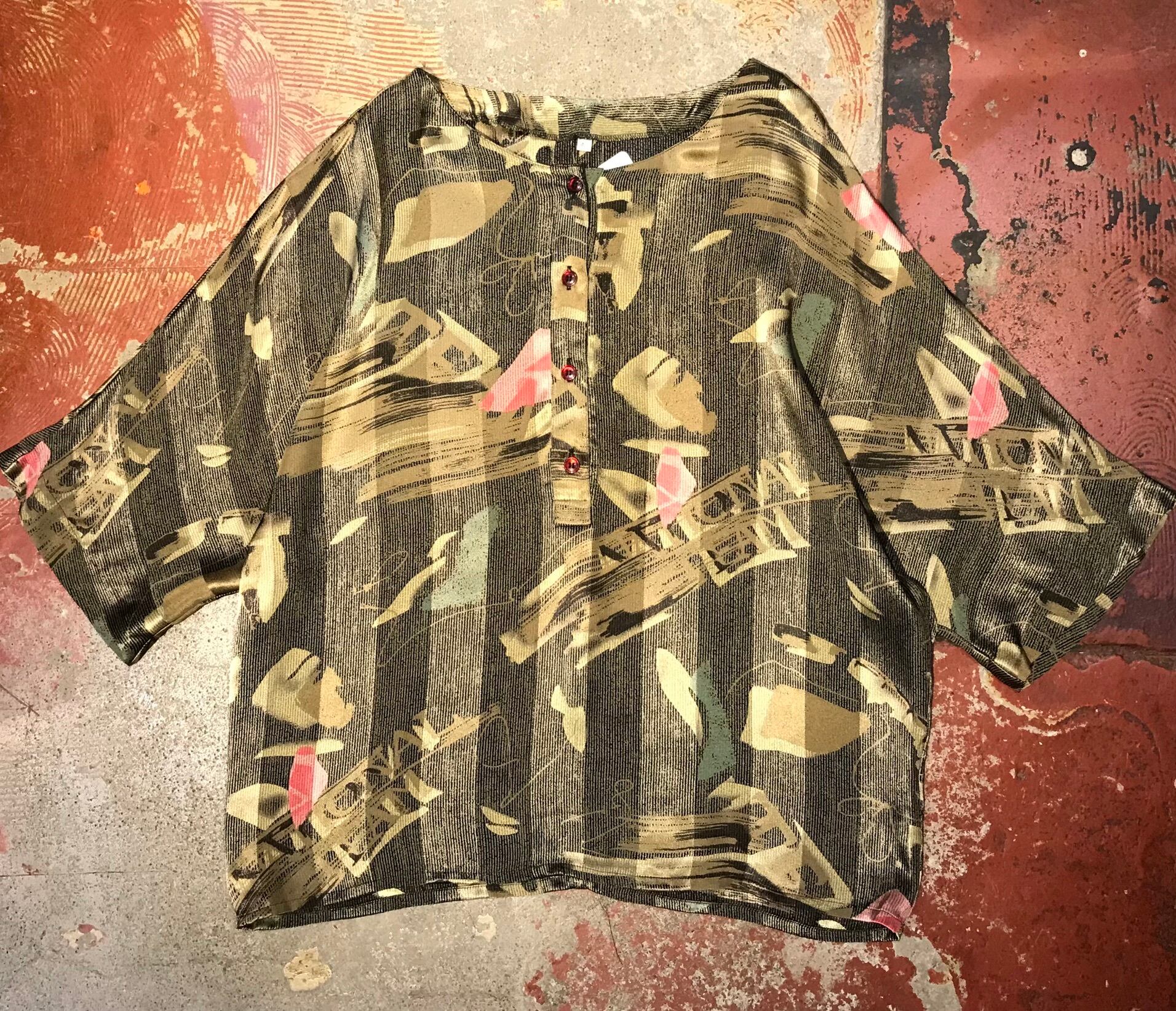 渋いカラーでまとまったデザインに、アーティスティックなプリントが可愛いアイテム。