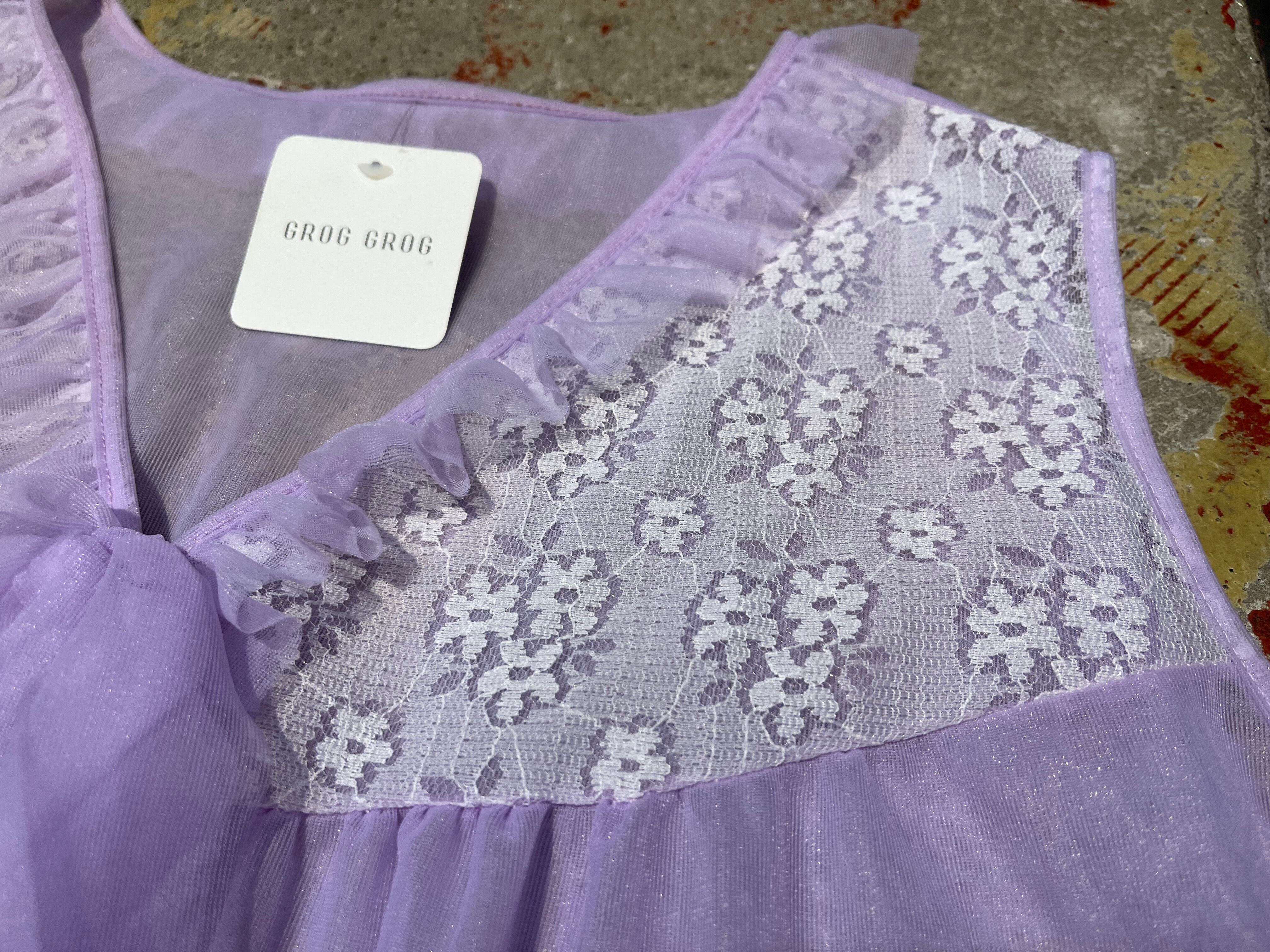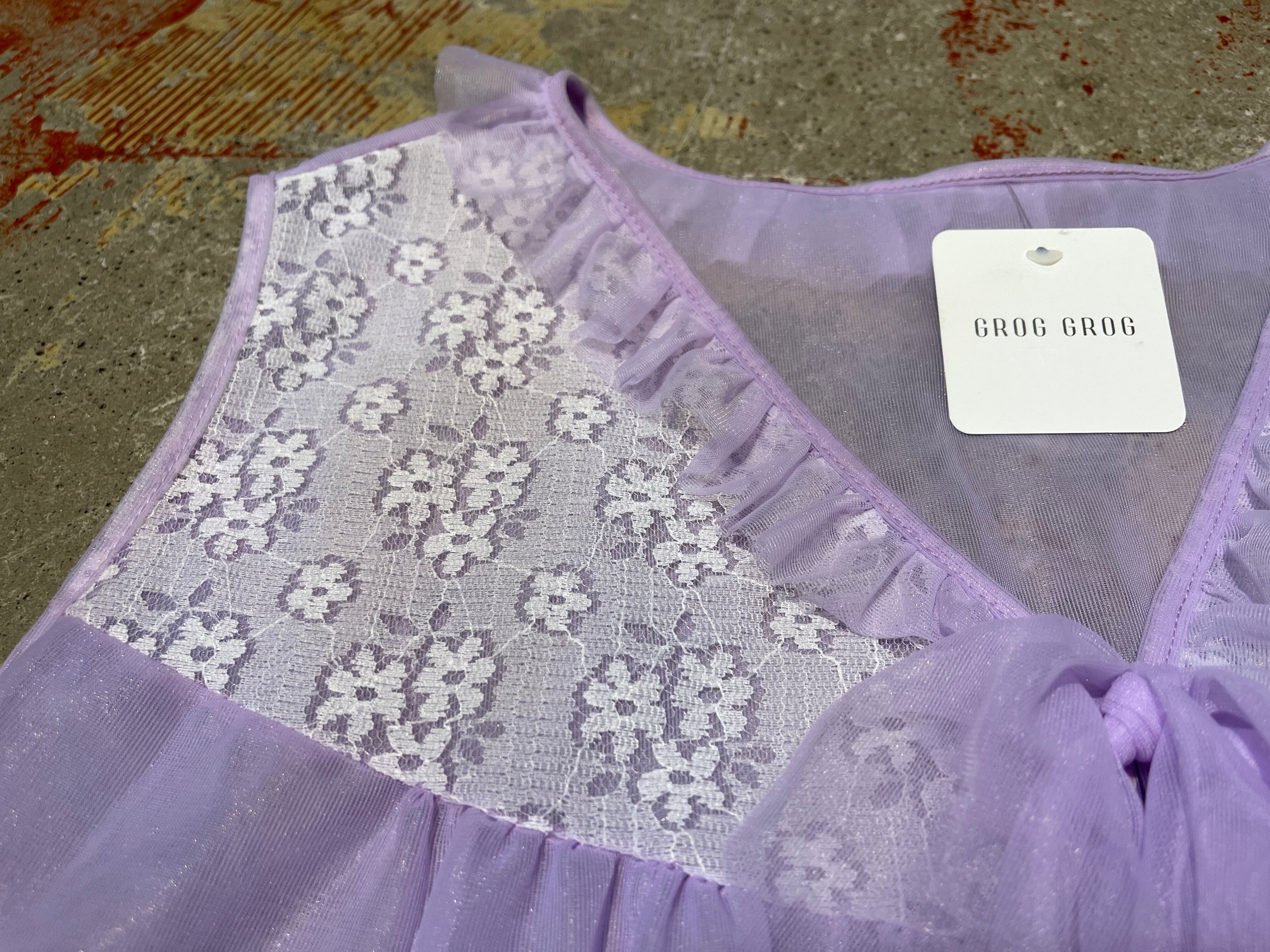 薄紫ボディ、透け感の素敵な可愛い短い丈感の一着。
