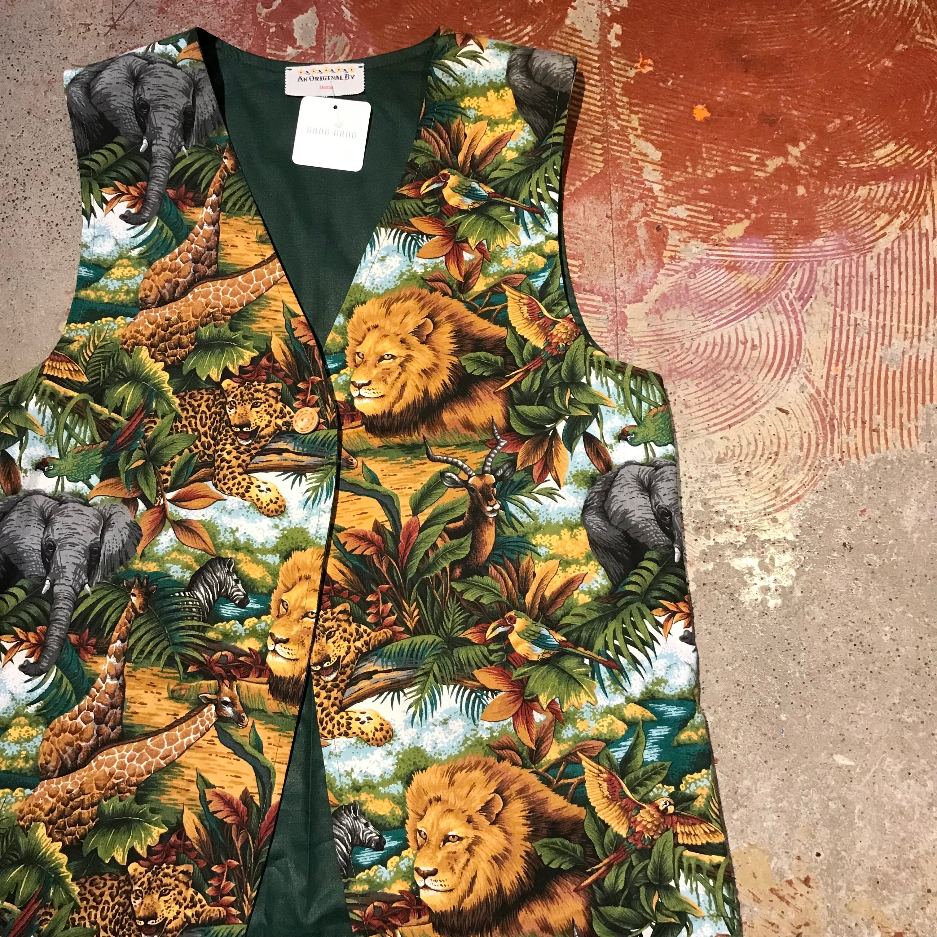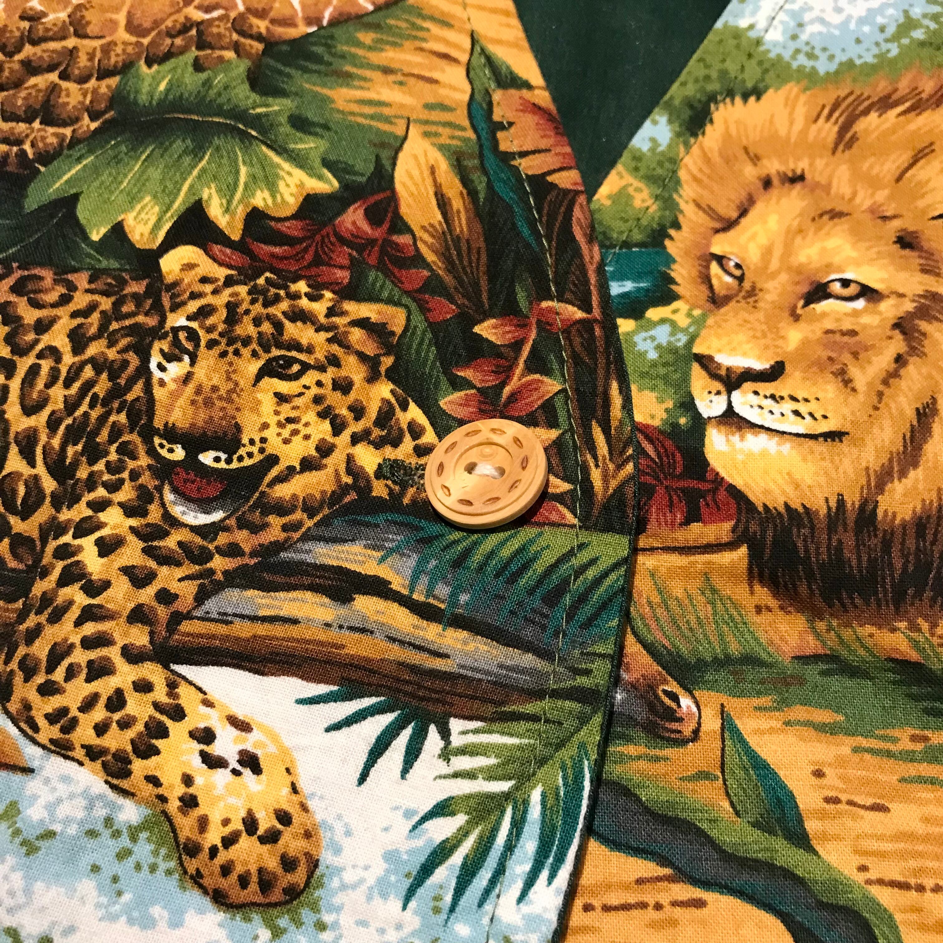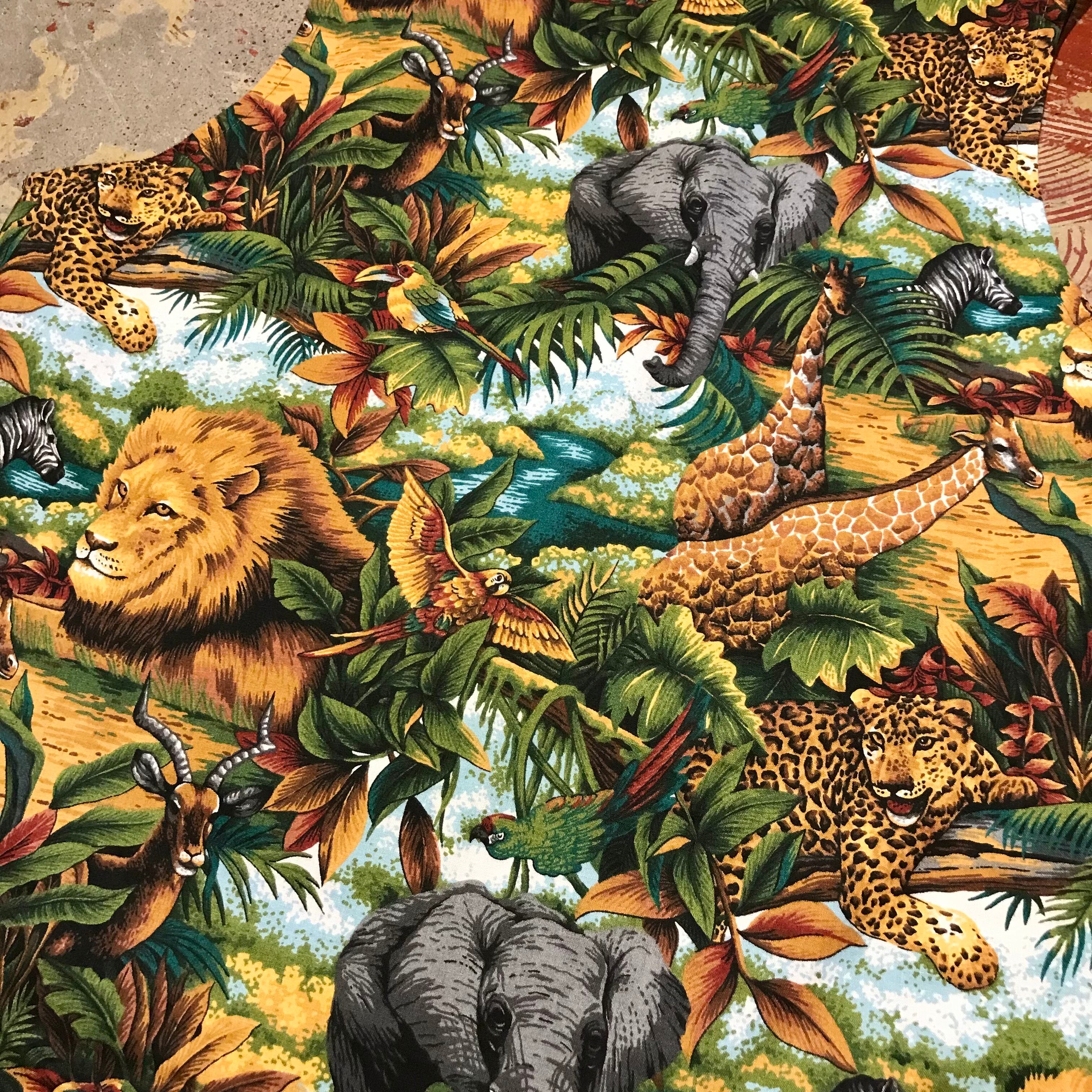 サバンナの動物たちがリアルに描かれたテキスタイルを贅沢に使用。
