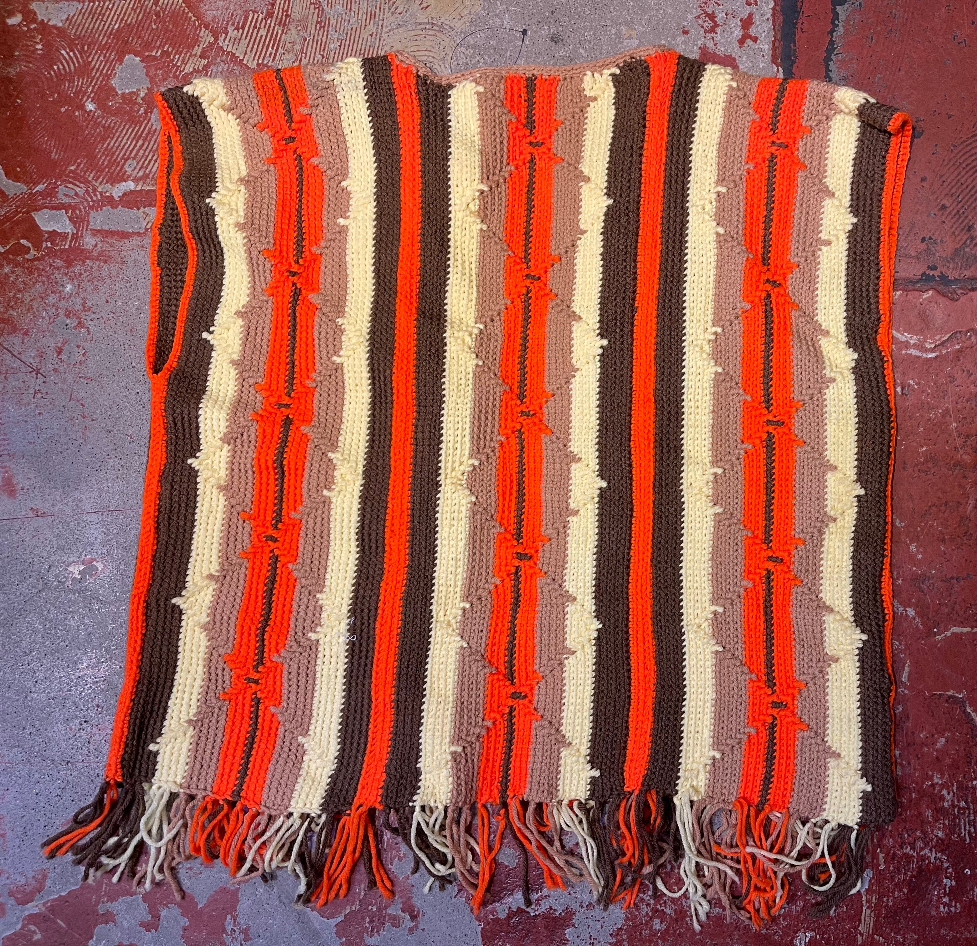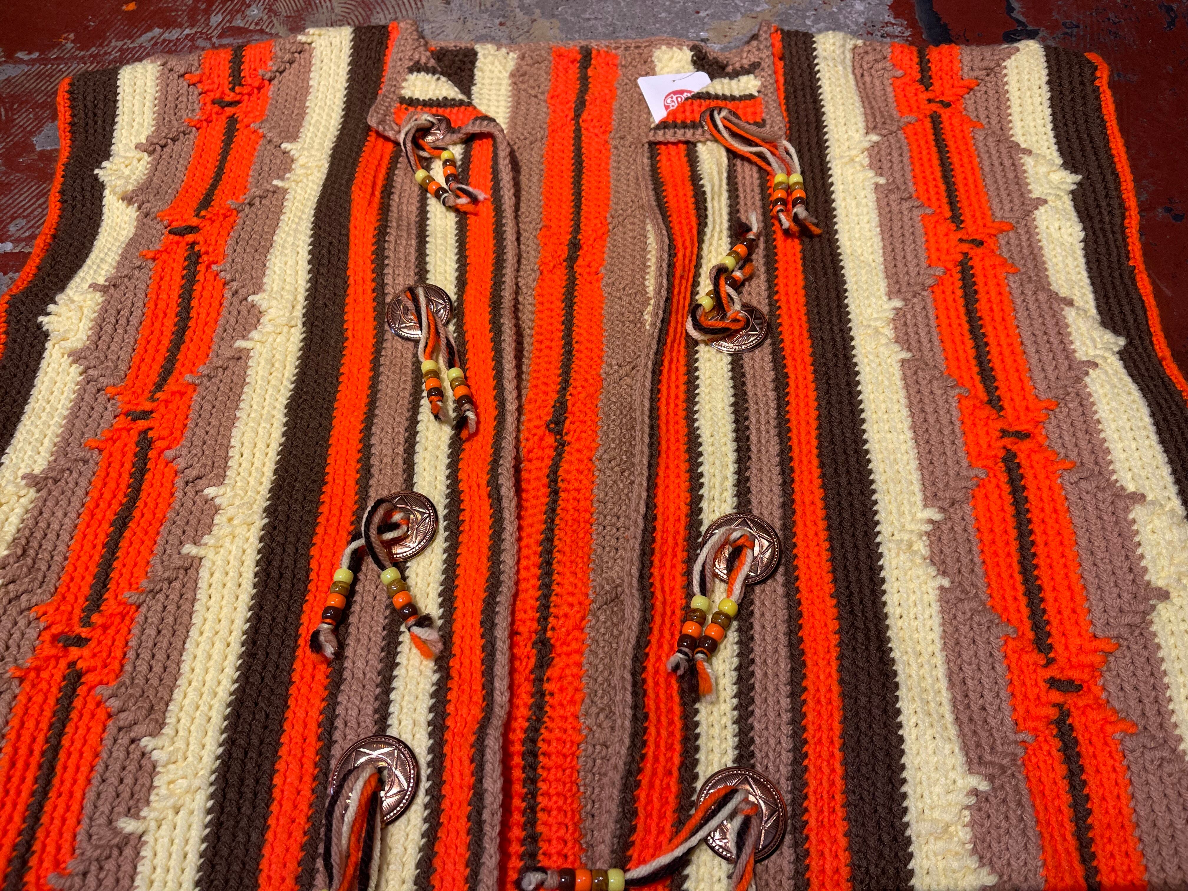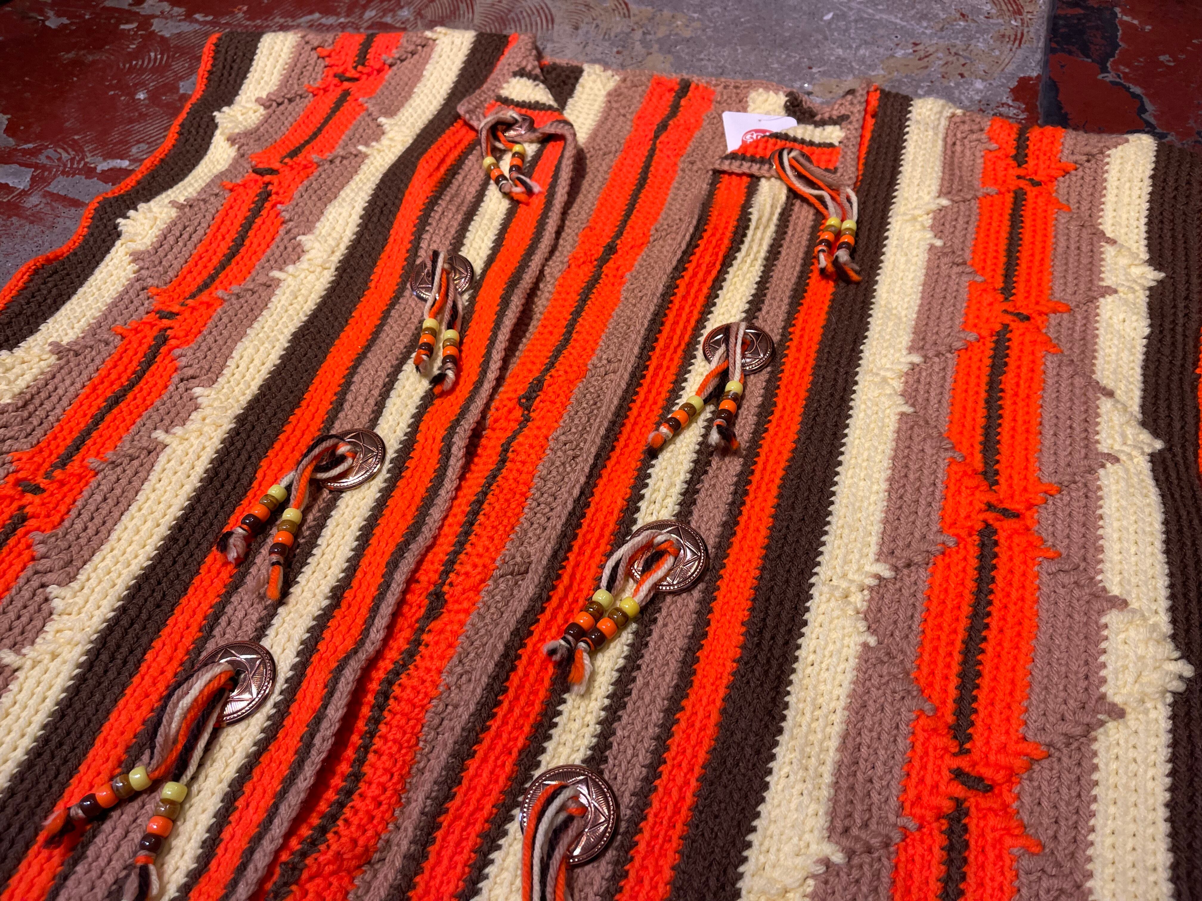 size:表記不明 肩幅71cm、身幅68cm、着丈77cm(内フリンジ9.5cm)