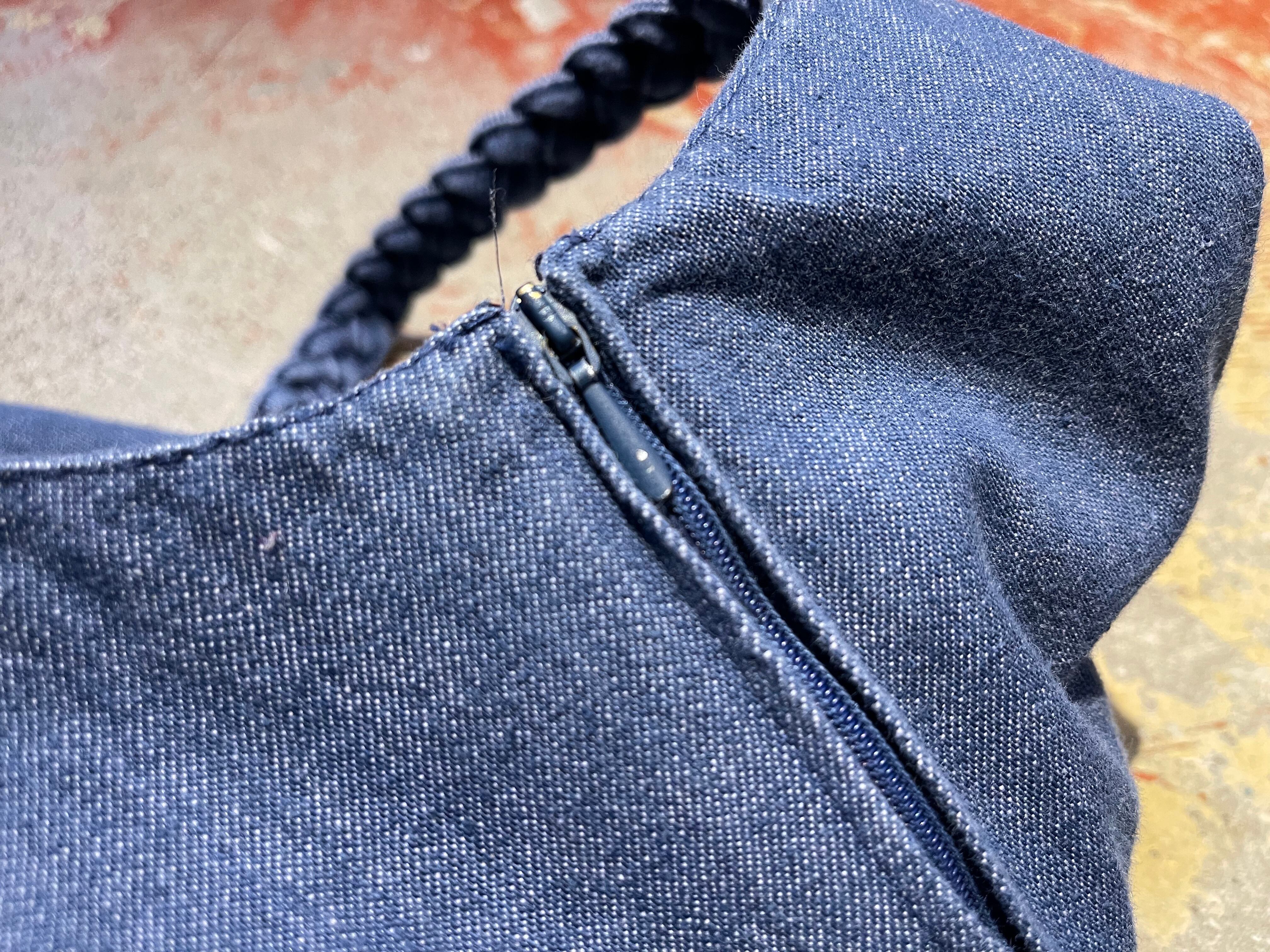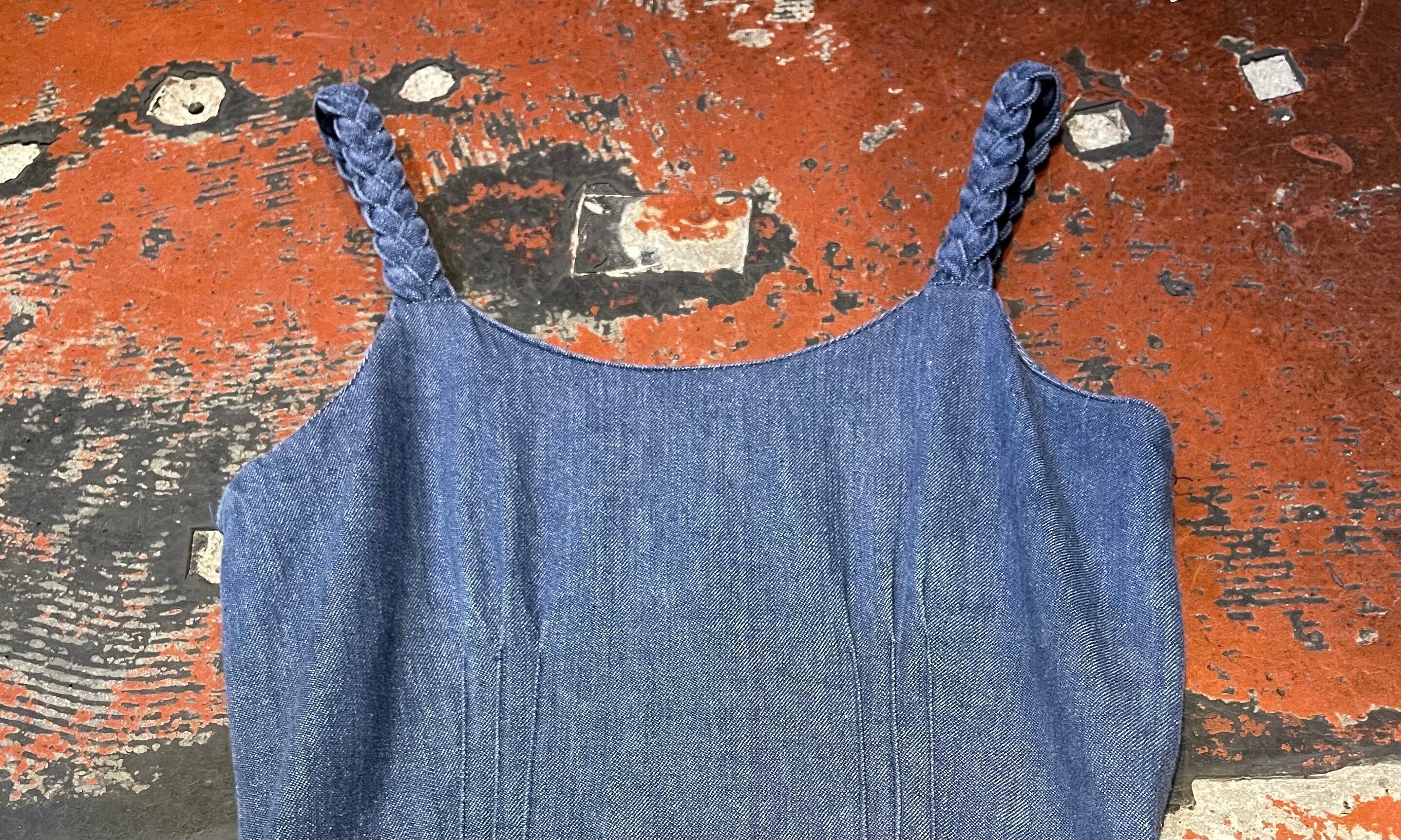肩紐は三つ編みになっており、ウエストリボンも同じ紐でアクセントとして着用頂けます。