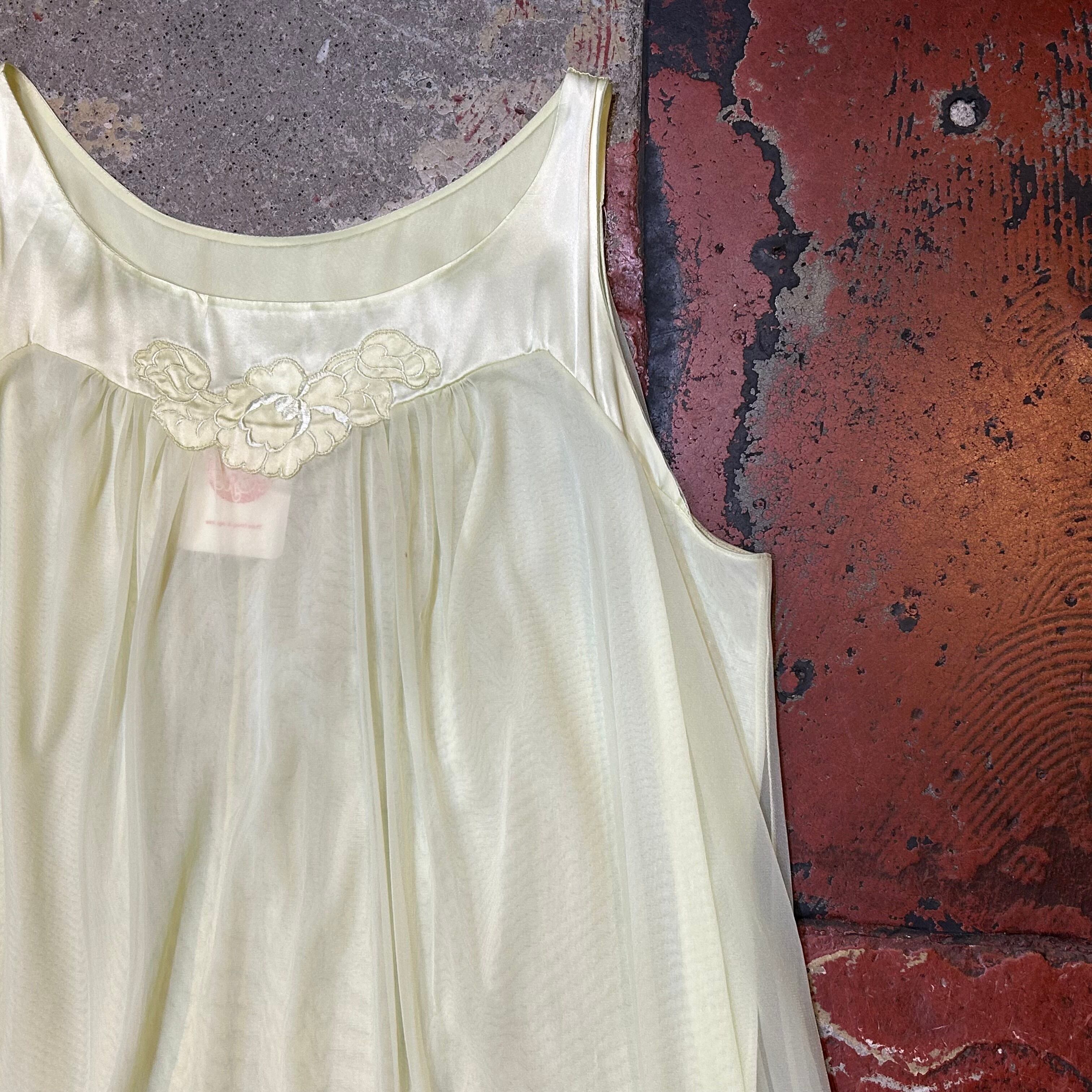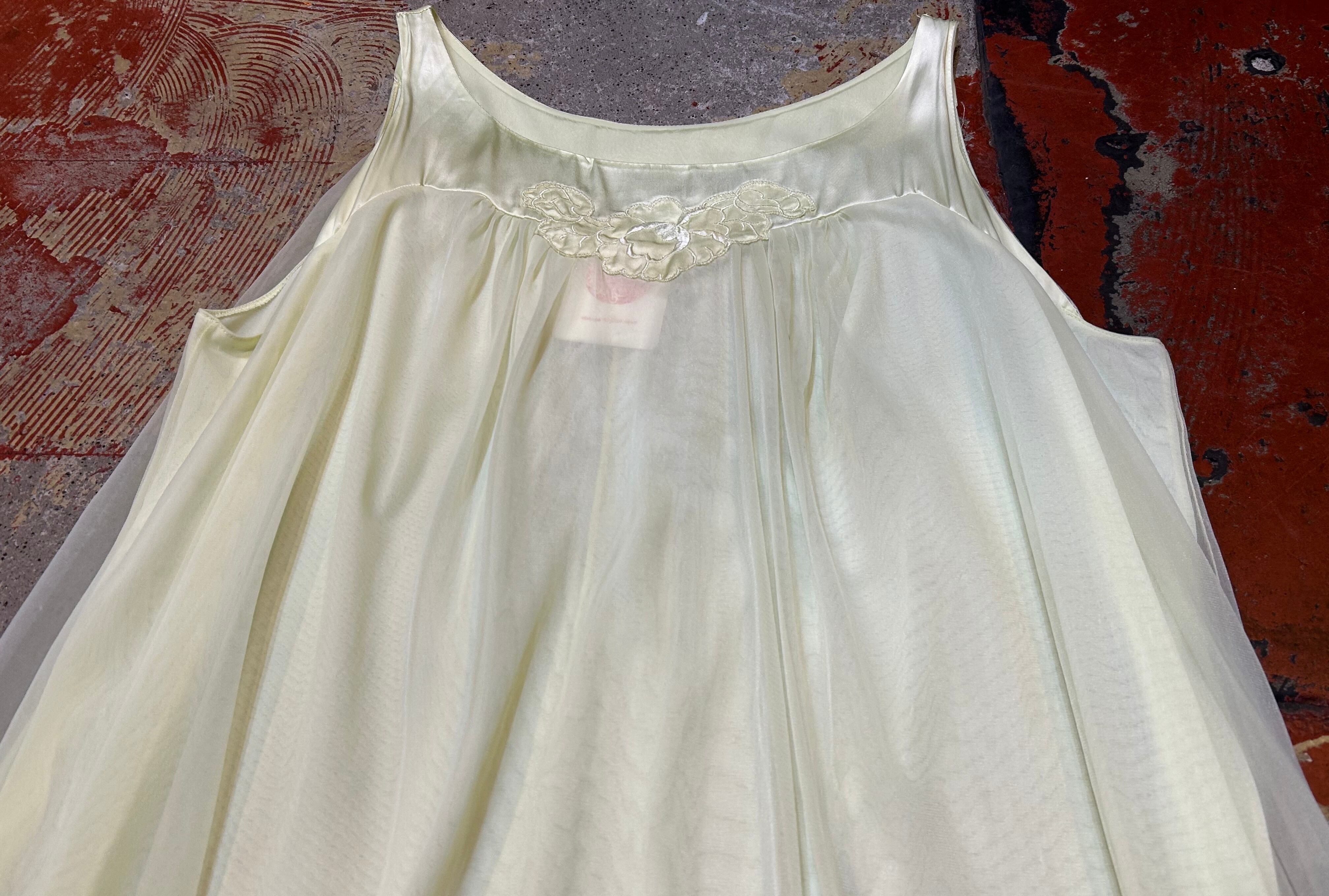パステルイエローと透け感のある素材が春らしいランジェリーのドレス。