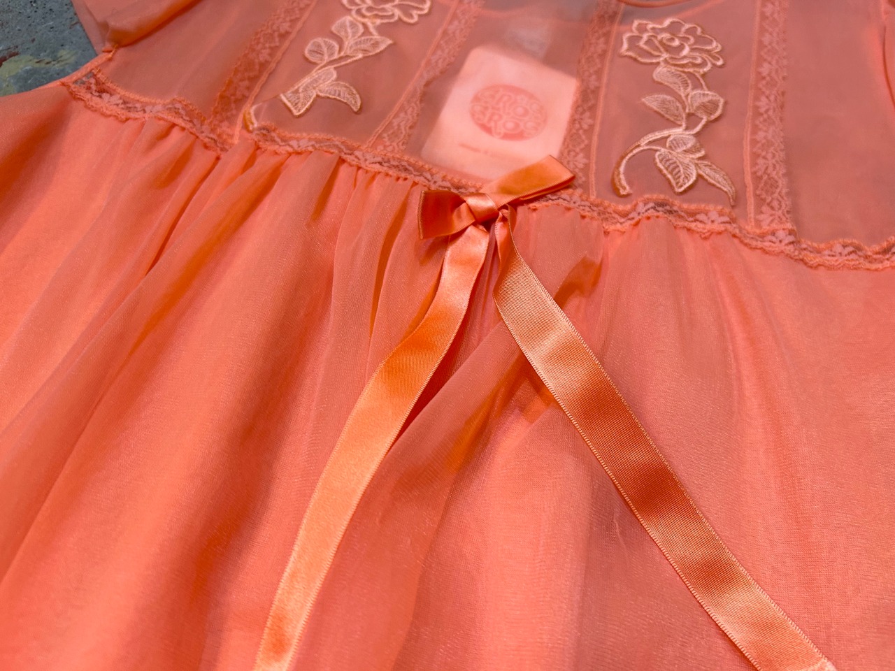 濃いめのピンクボディ、薔薇の刺繍にフロントリボンが可愛らしいアイテム。