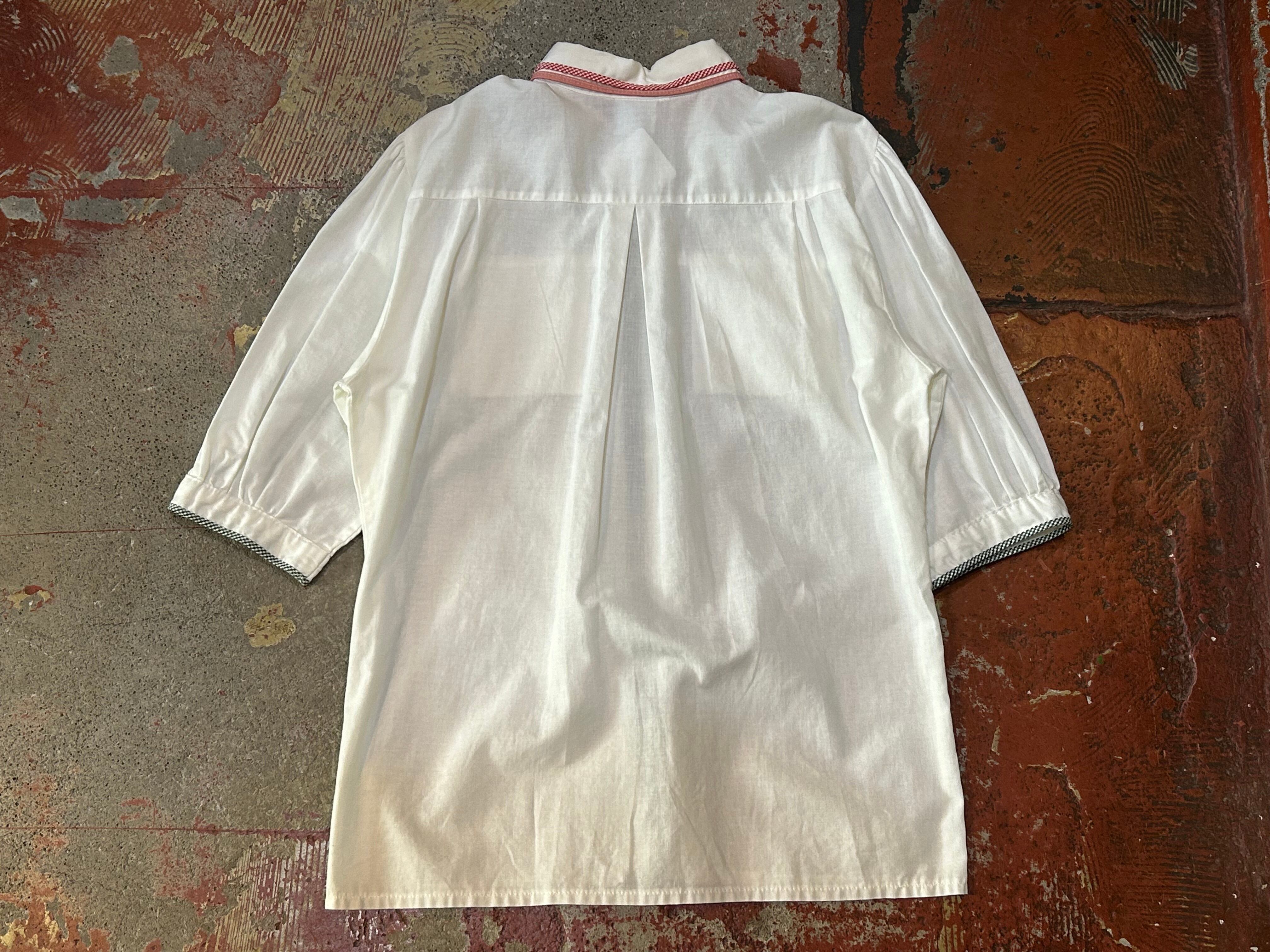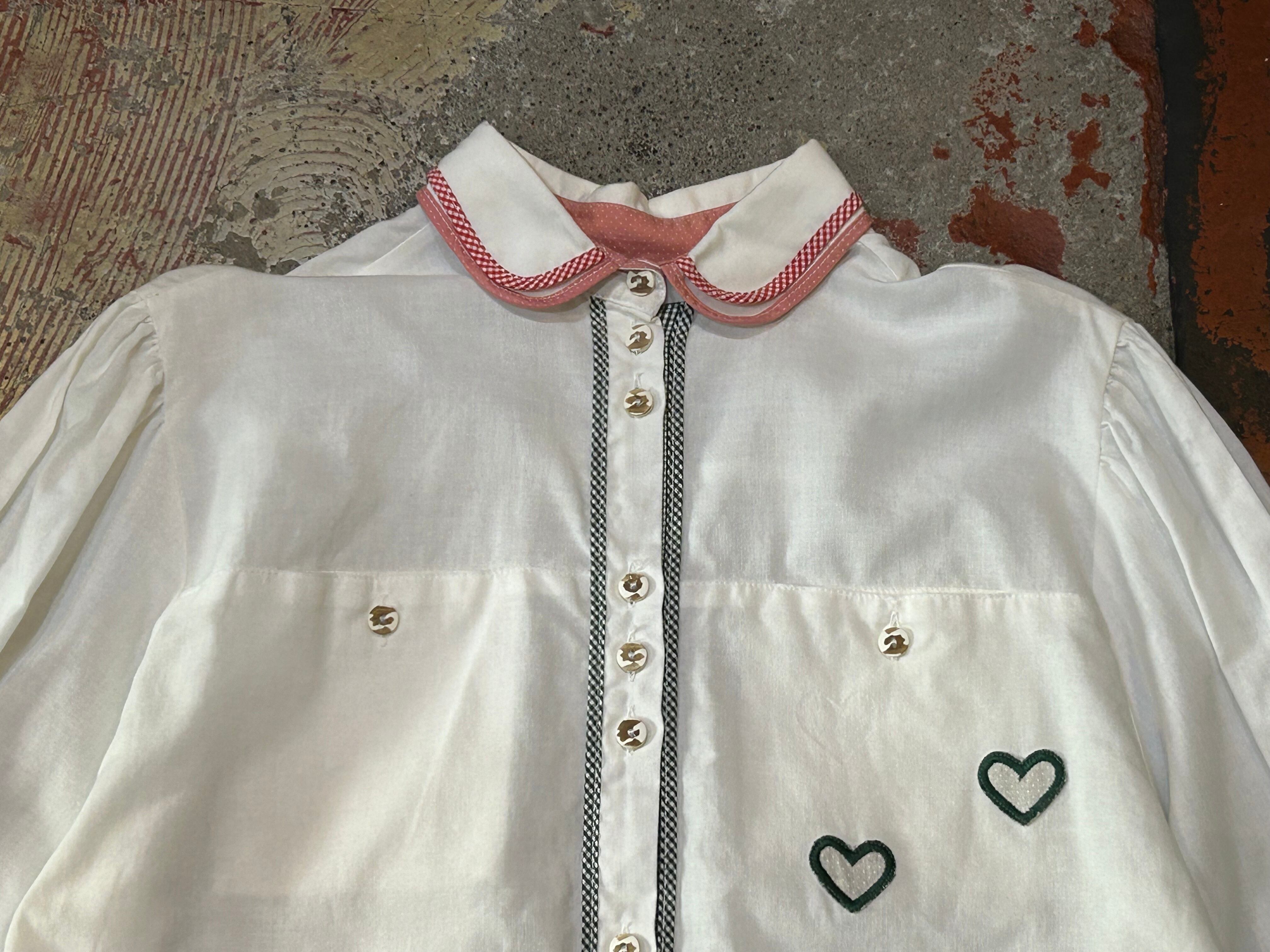 ギンガムチェックの2段襟にフロントのギンガムチェックのラインがチロルらしいアイテム。
