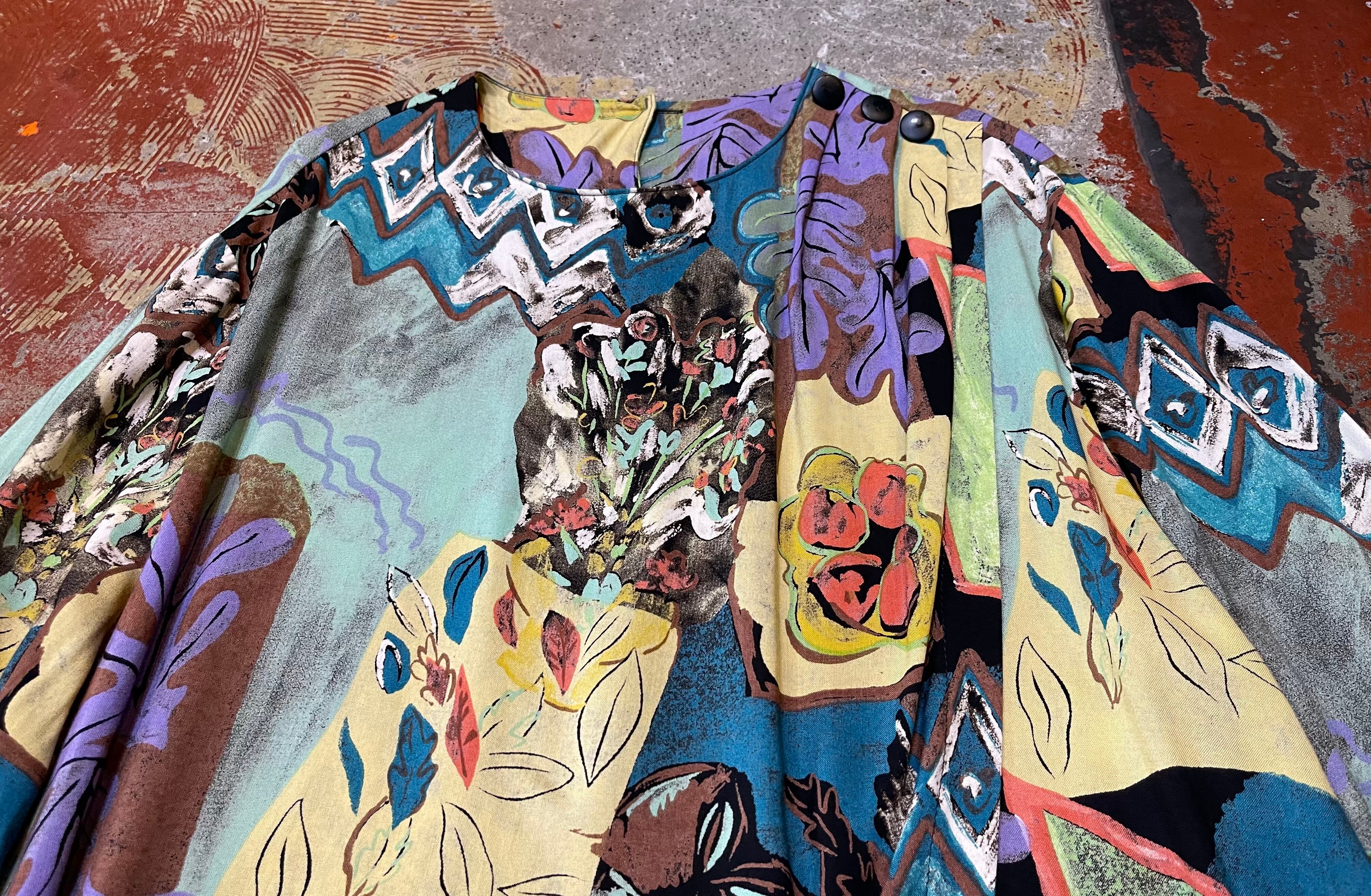 なめらかな素材感、ニュアンス柄の面白いテキスタイルの一着。