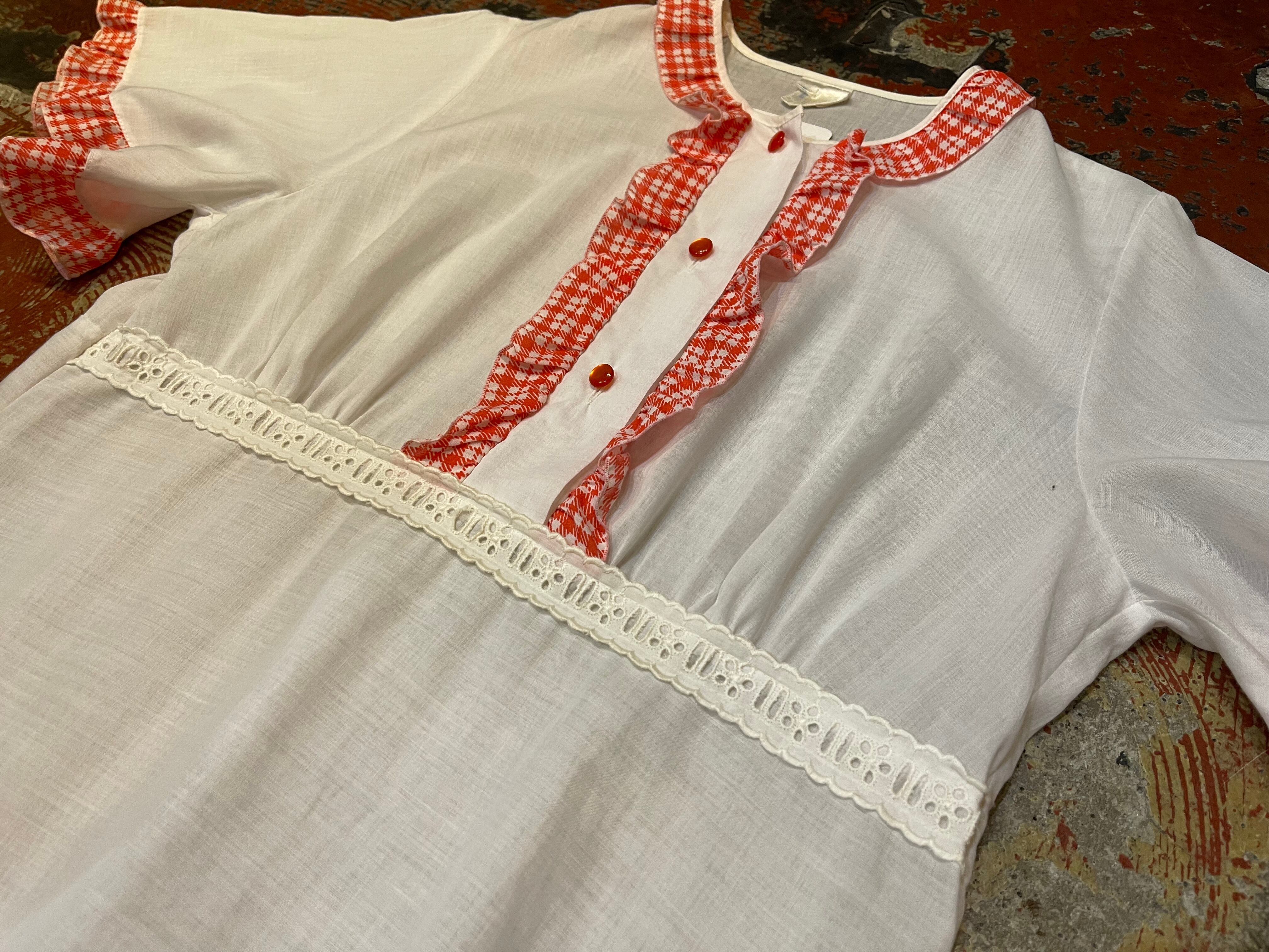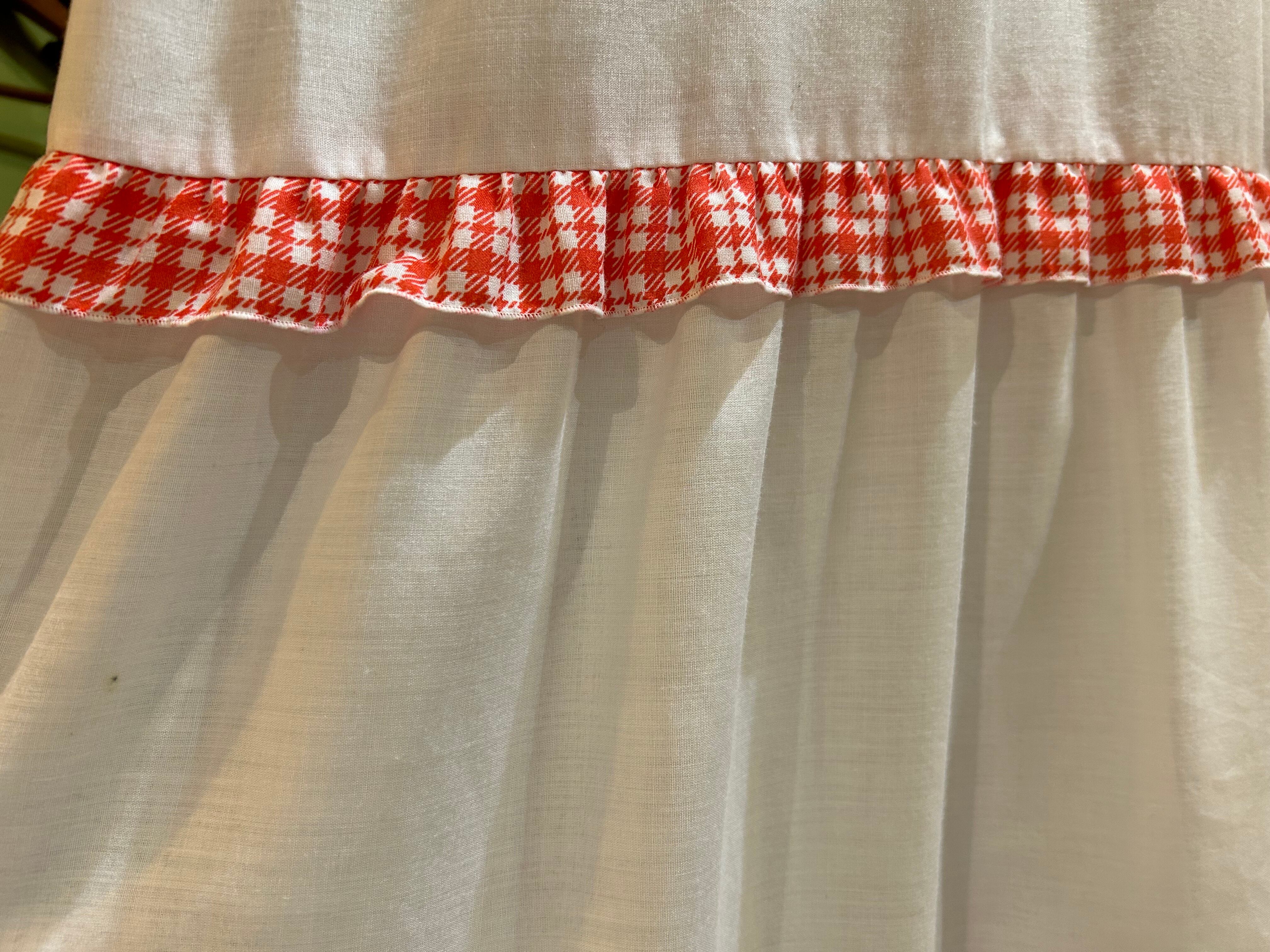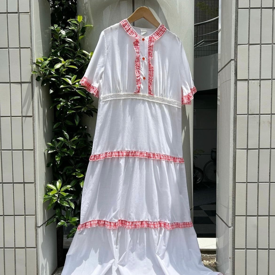 ホワイトボディに赤いチェックフリルが可愛いアイテム。