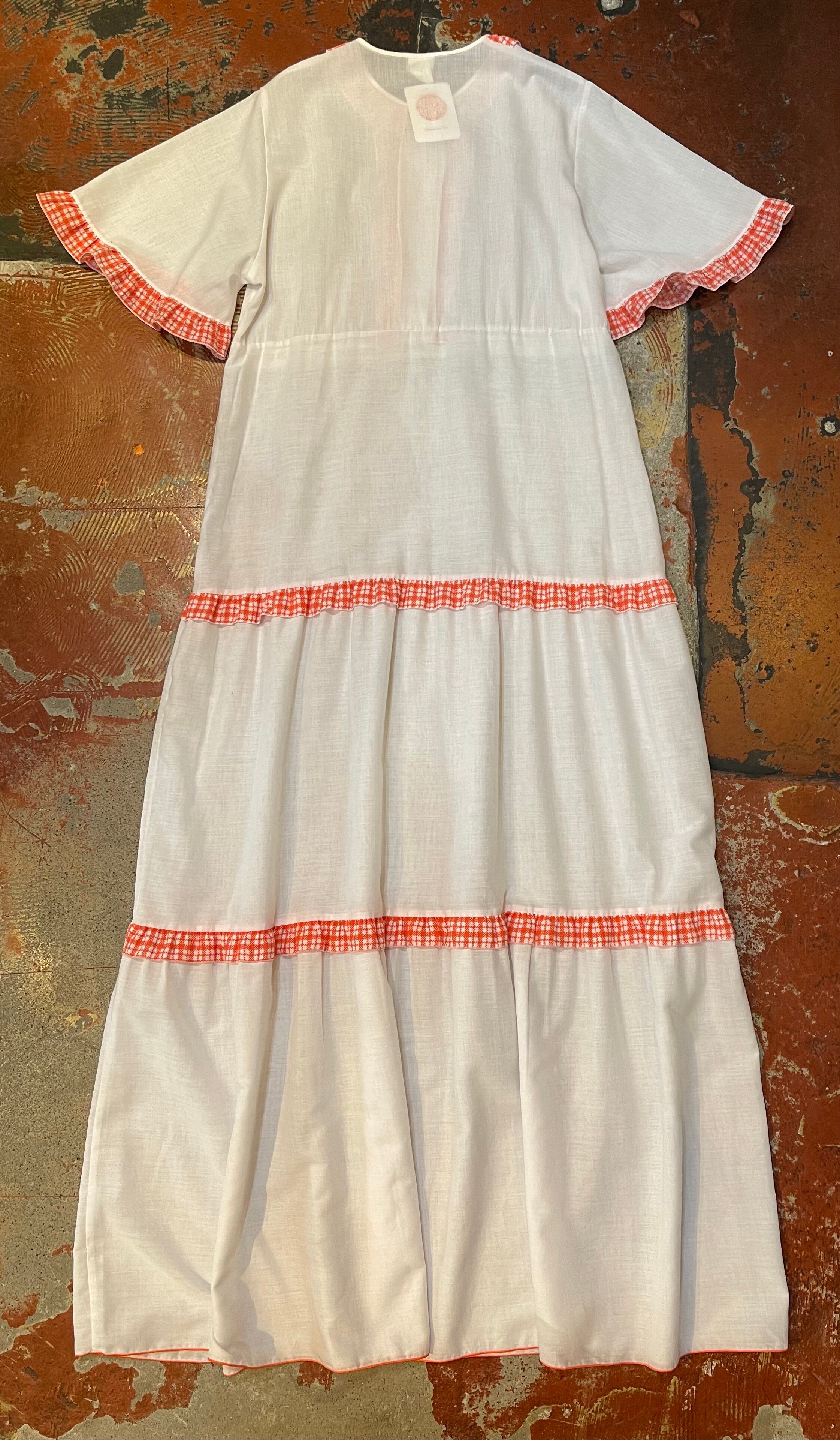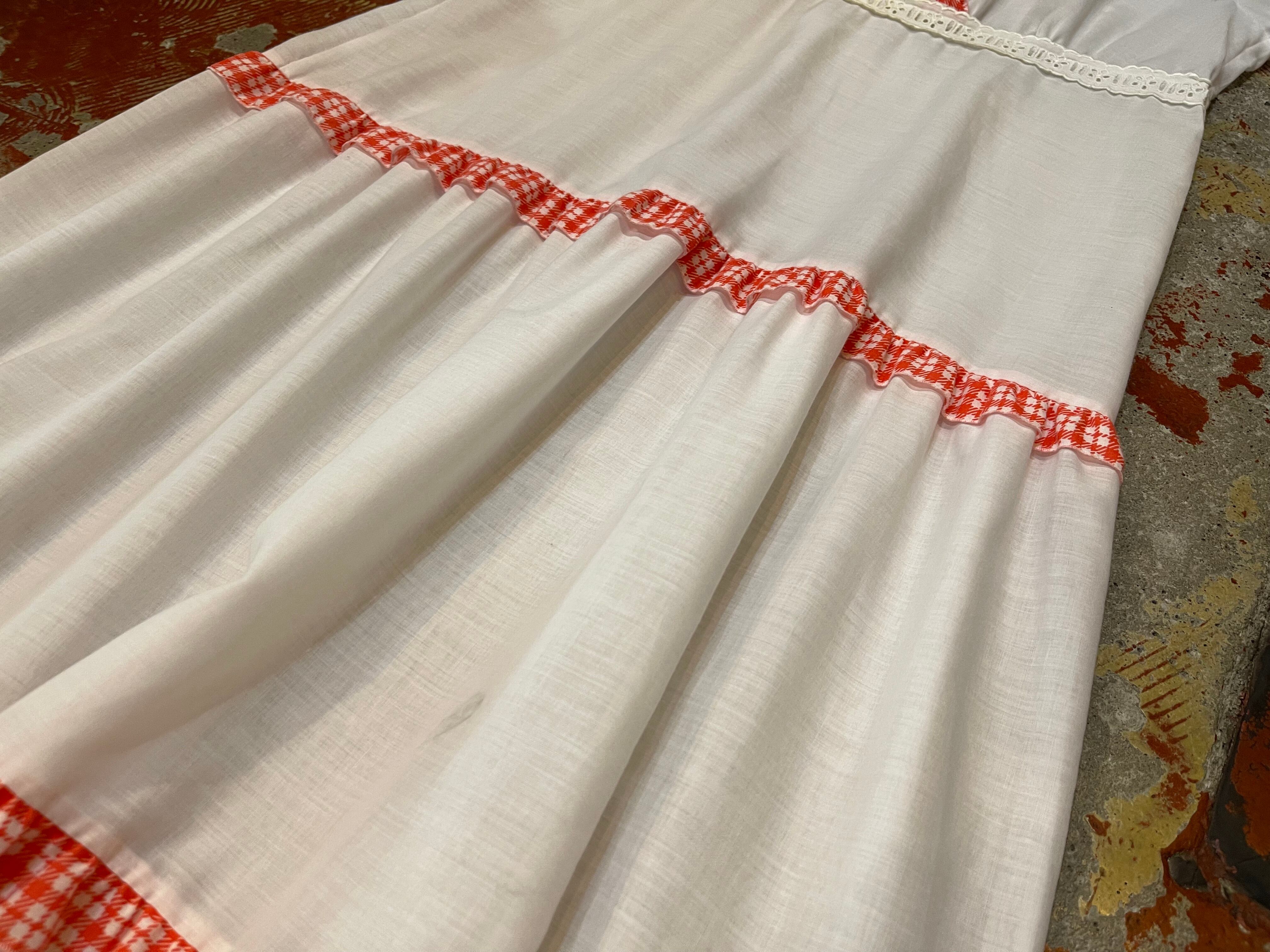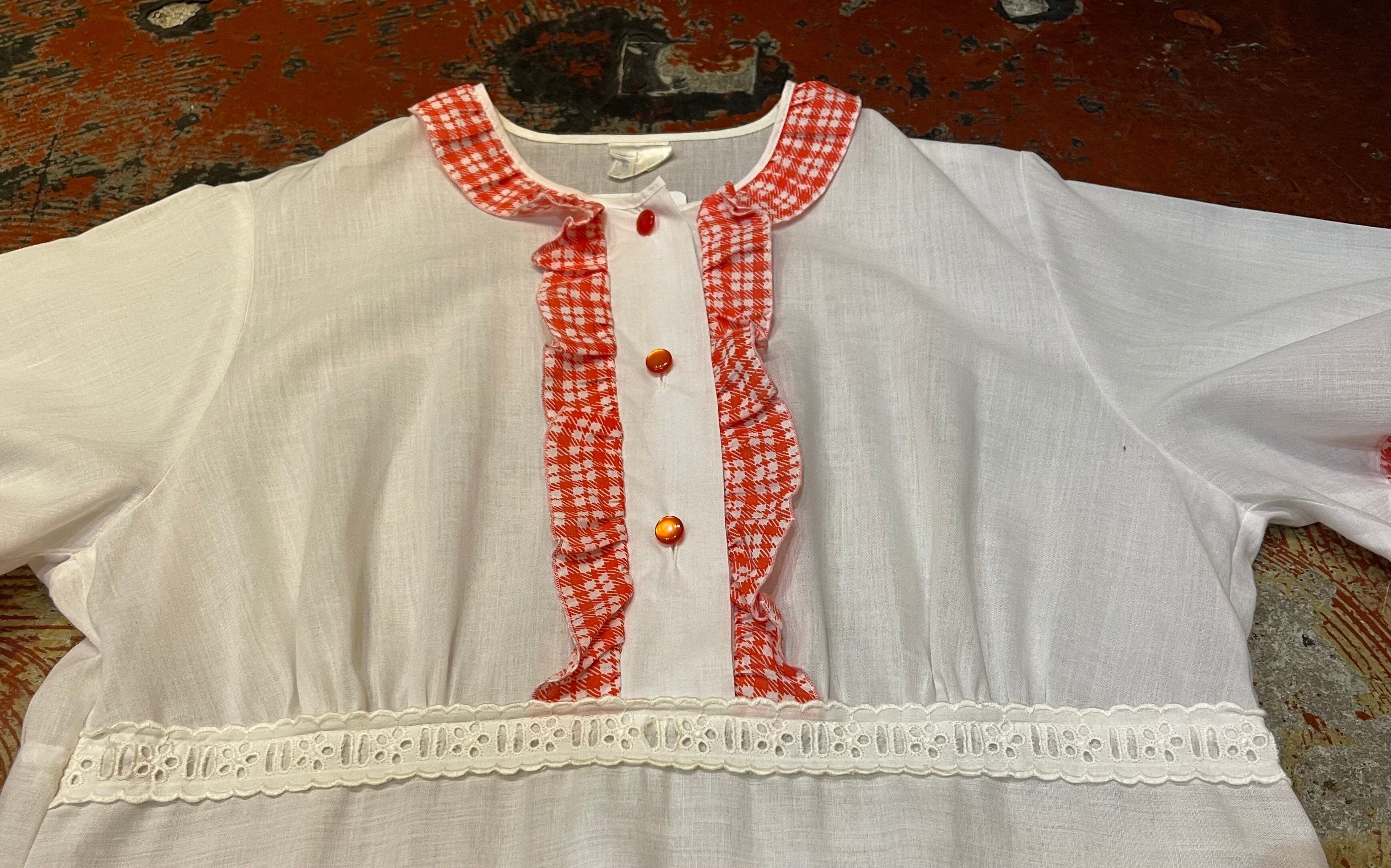 ホワイトボディに赤いチェックフリルが可愛いアイテム。