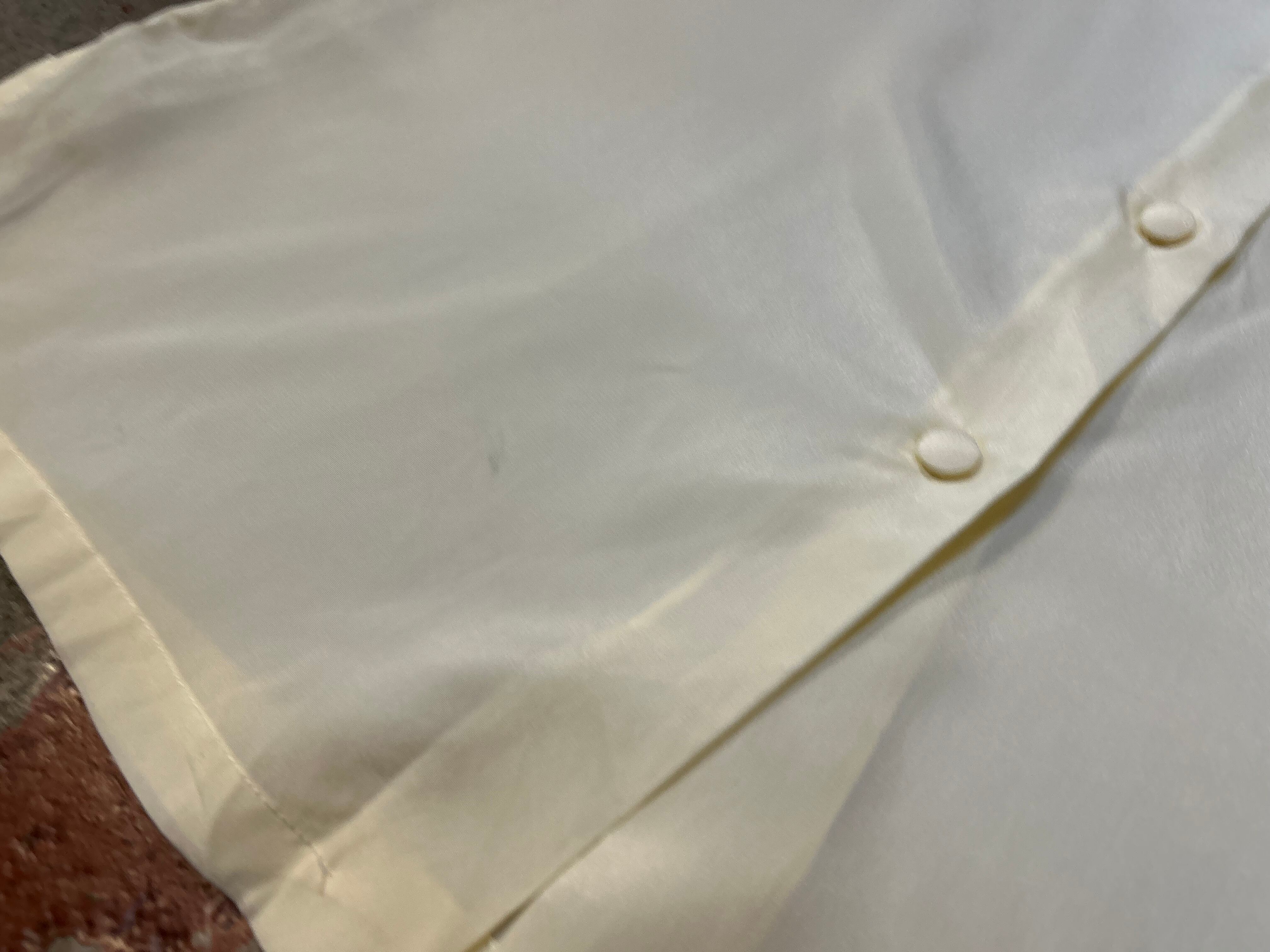 コンディション:所々黒い汚れ、その他首回りスカラップが若干ほつれておりますが気にせず着用頂けると思います。その他、特筆するようなダメージもなく、ビンテージにご理解頂いている方でしたら気にならない程度だと思われます。