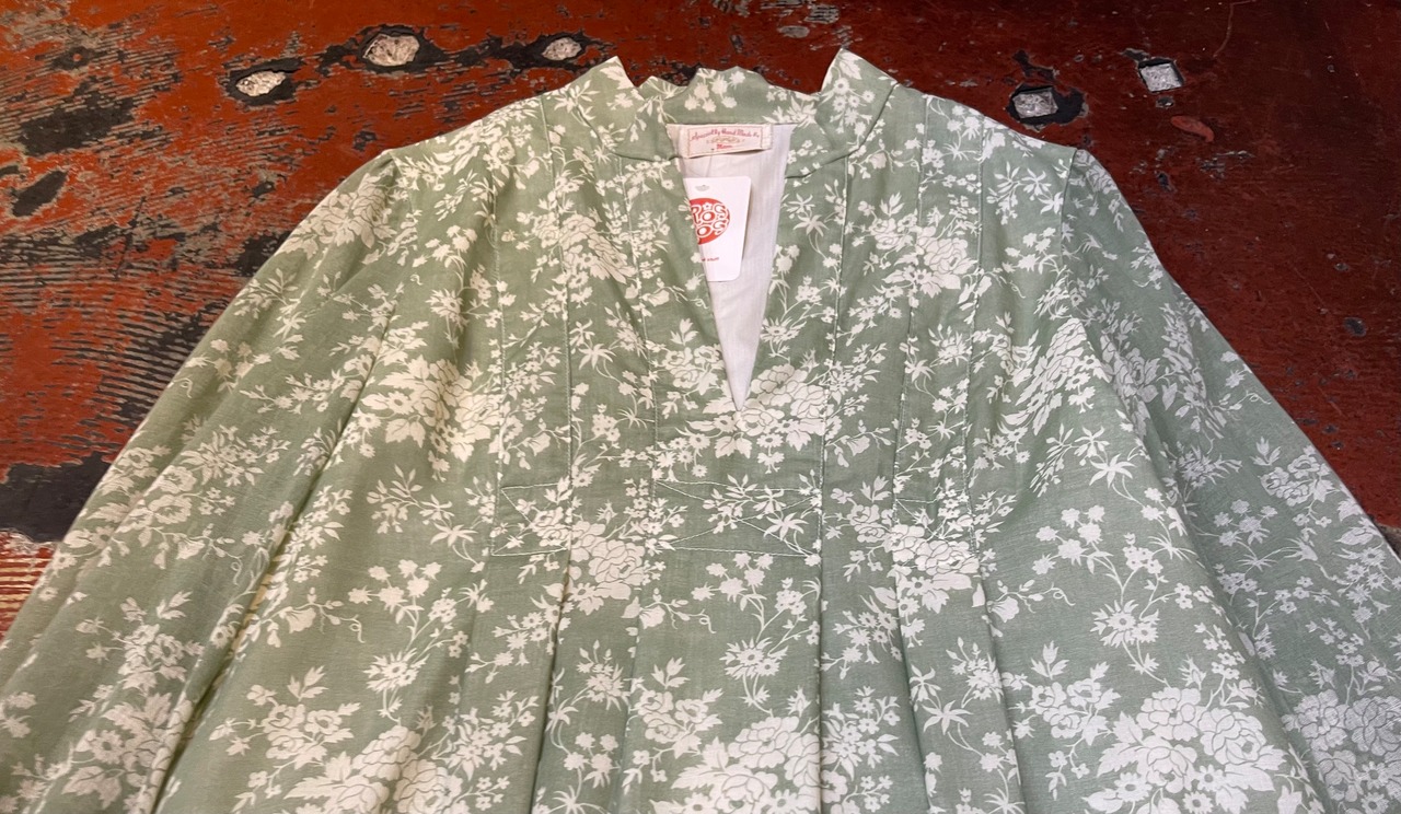 若草色のガーゼ生地、Aラインの綺麗なシルエットのアイテム。