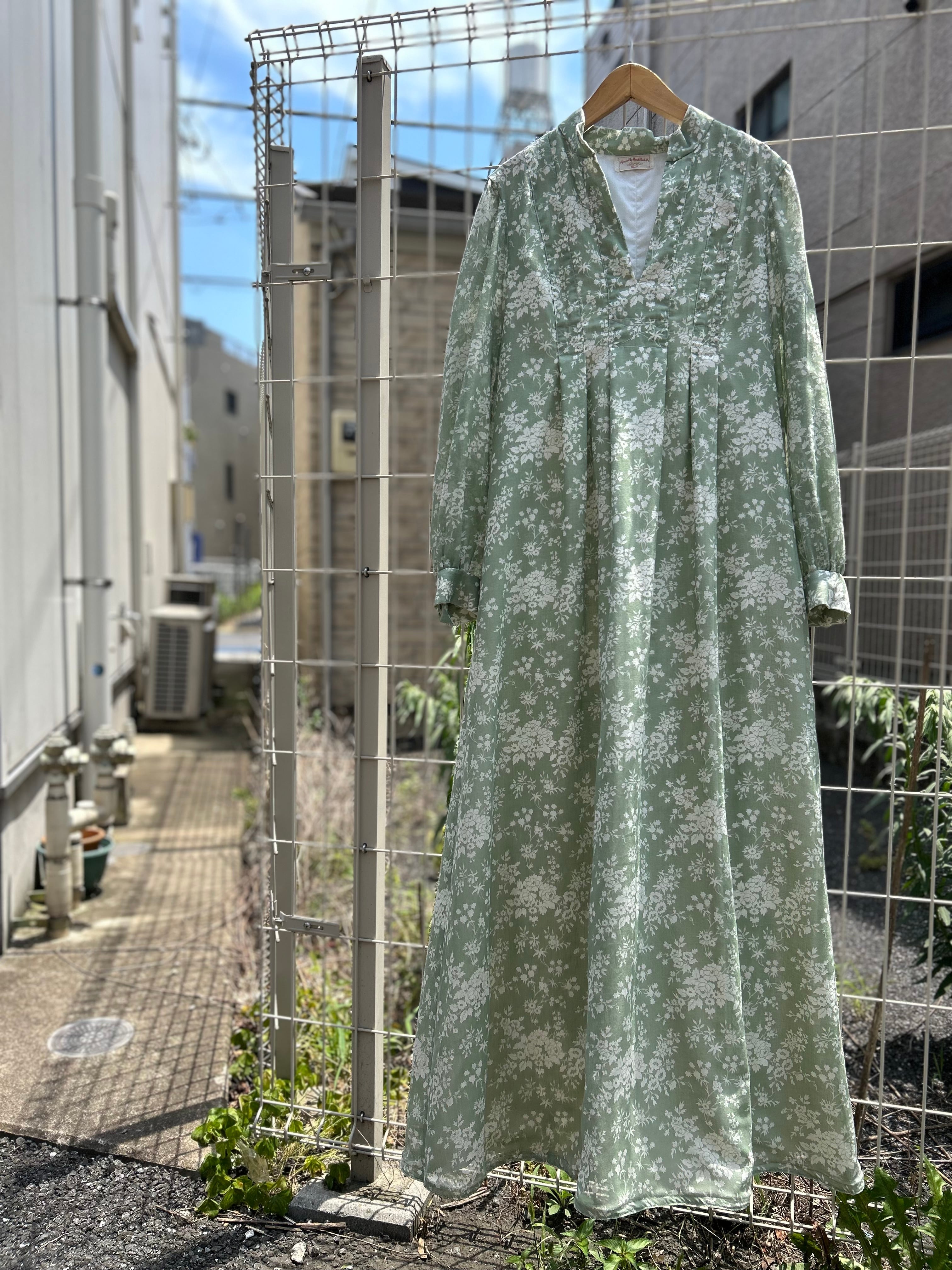 綺麗な首元のデザインで、裾にかけて広がりが美しいビンテージドレスです。