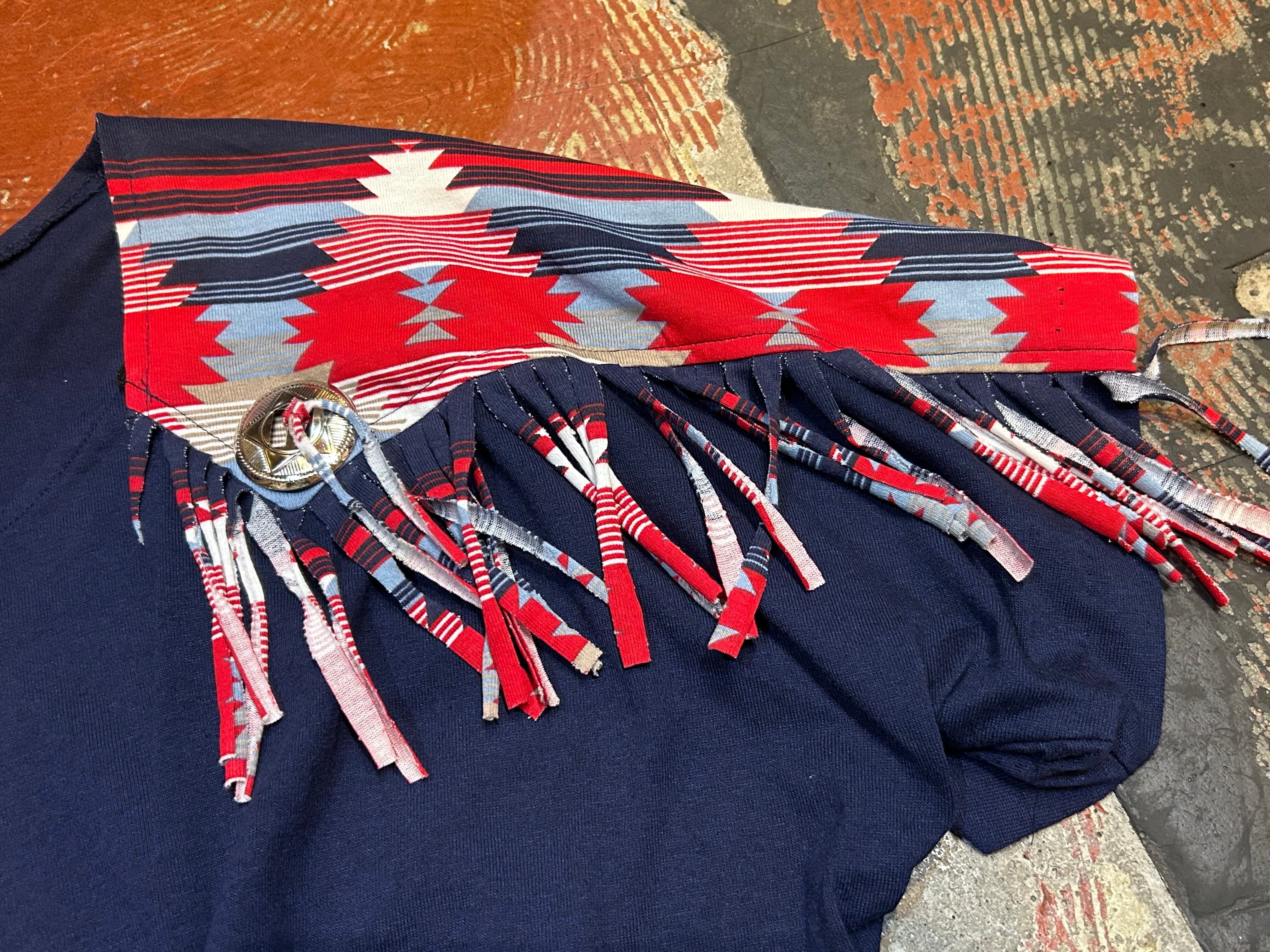 size:表記medium 肩幅なし、身幅56cm、袖丈35cm(首付け根から採寸)、着丈43cm
