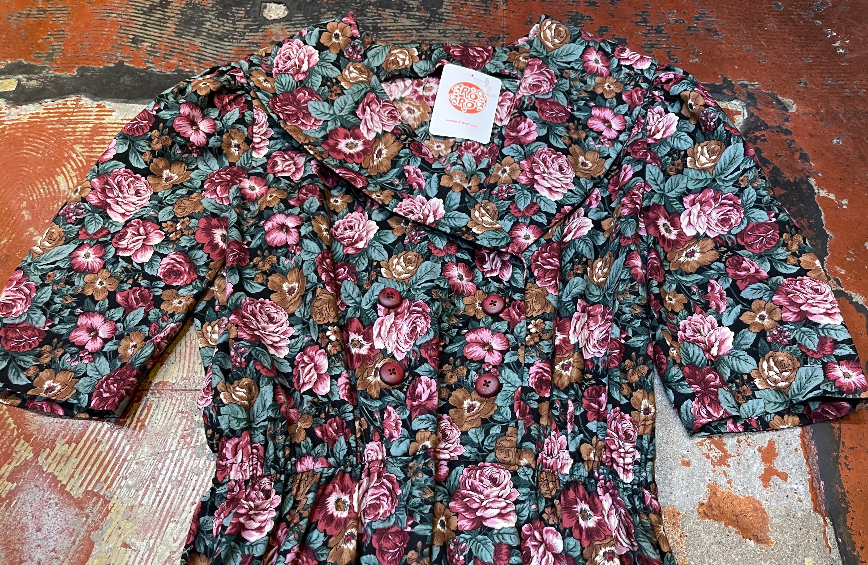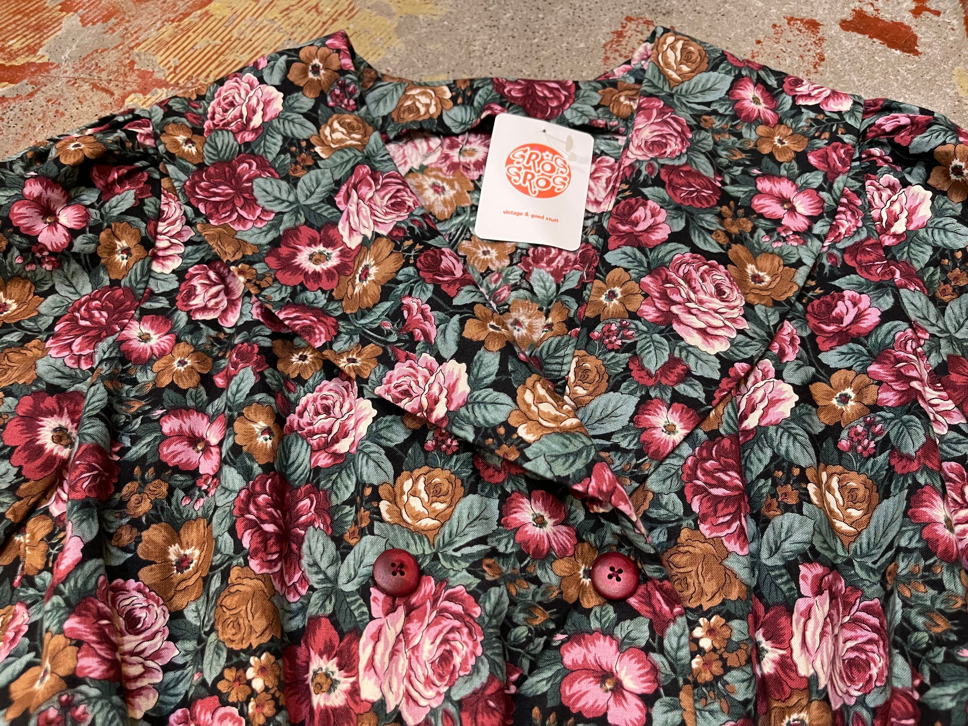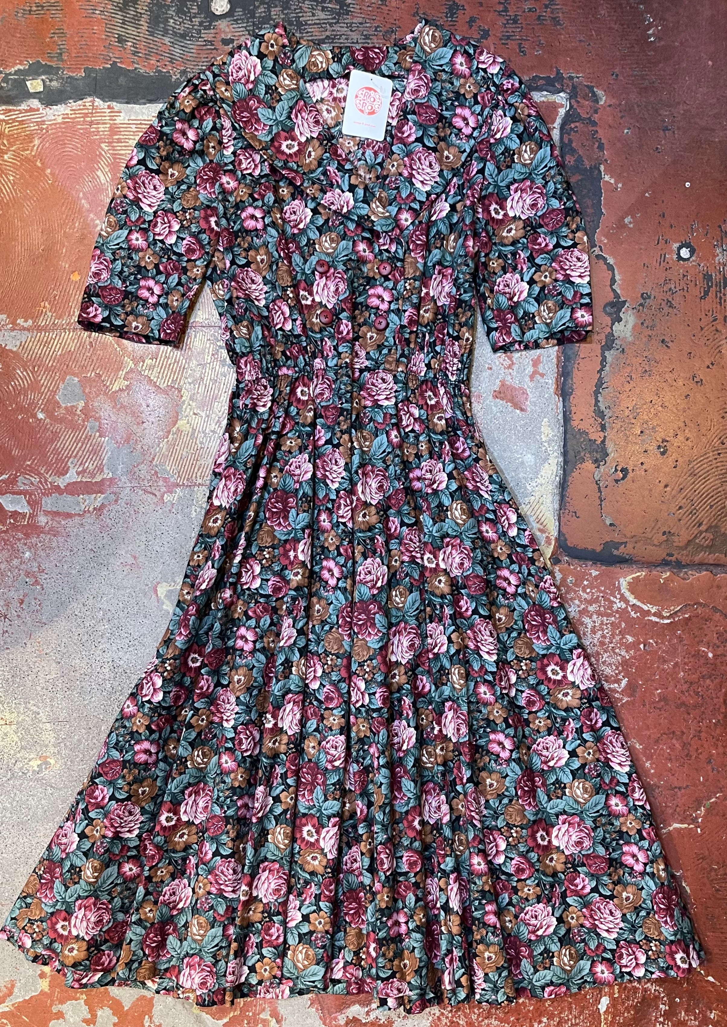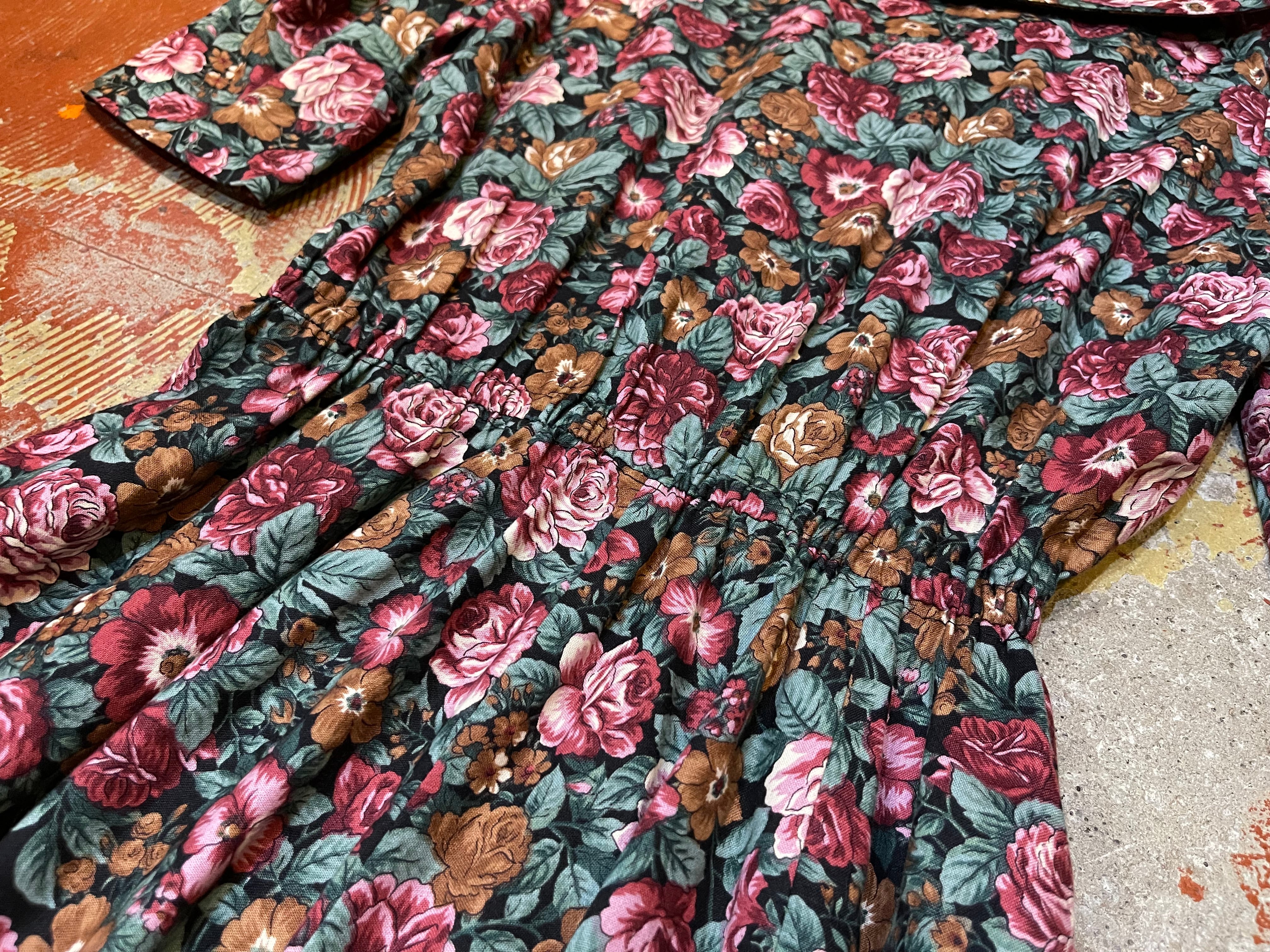 size:表記不明 肩幅37cm、身幅49cm、ウエスト59cm(ゴムの為平置き最小採寸)、袖丈34.5cm、着丈115cm、ウエストから裾72.5cm