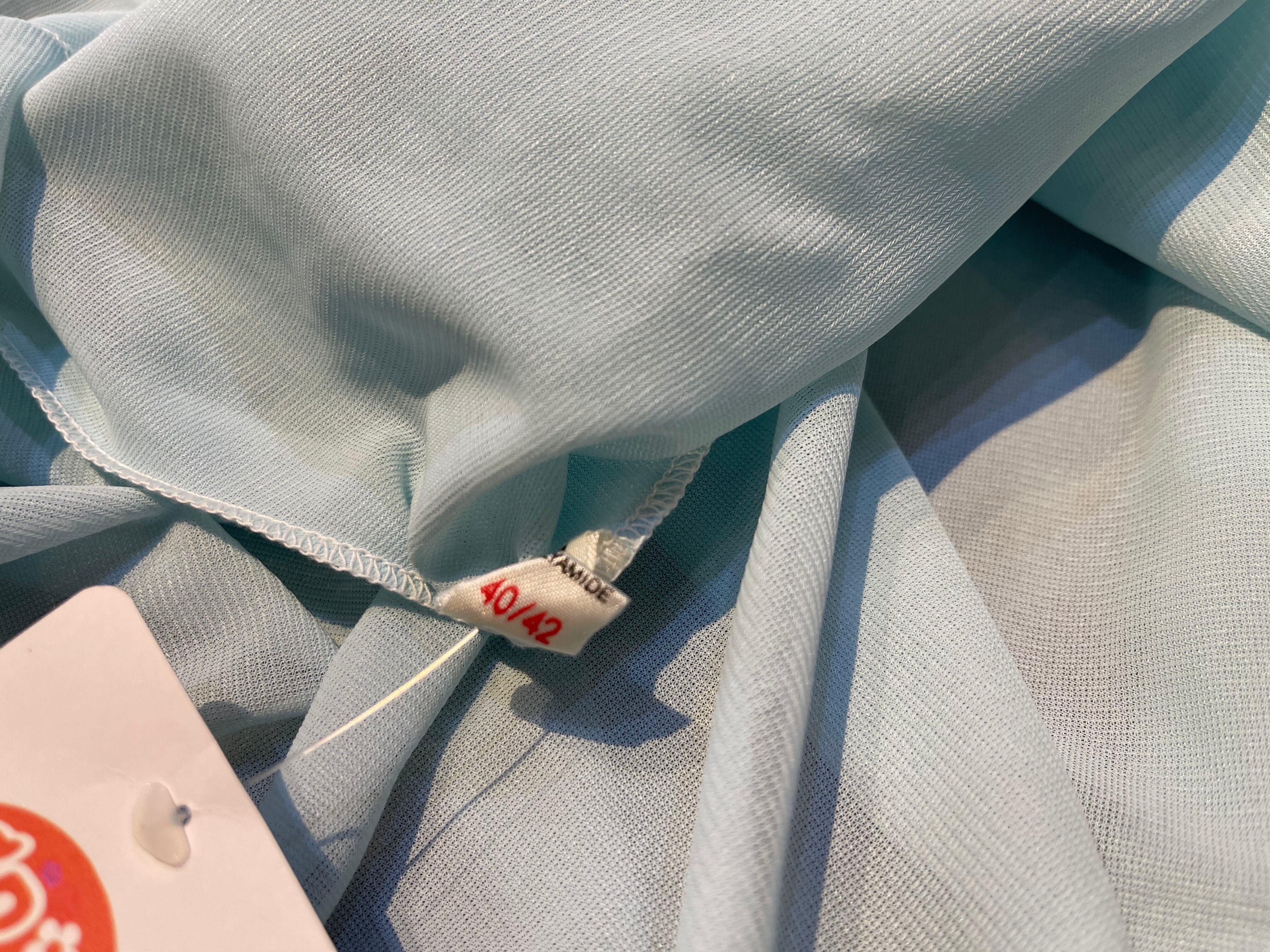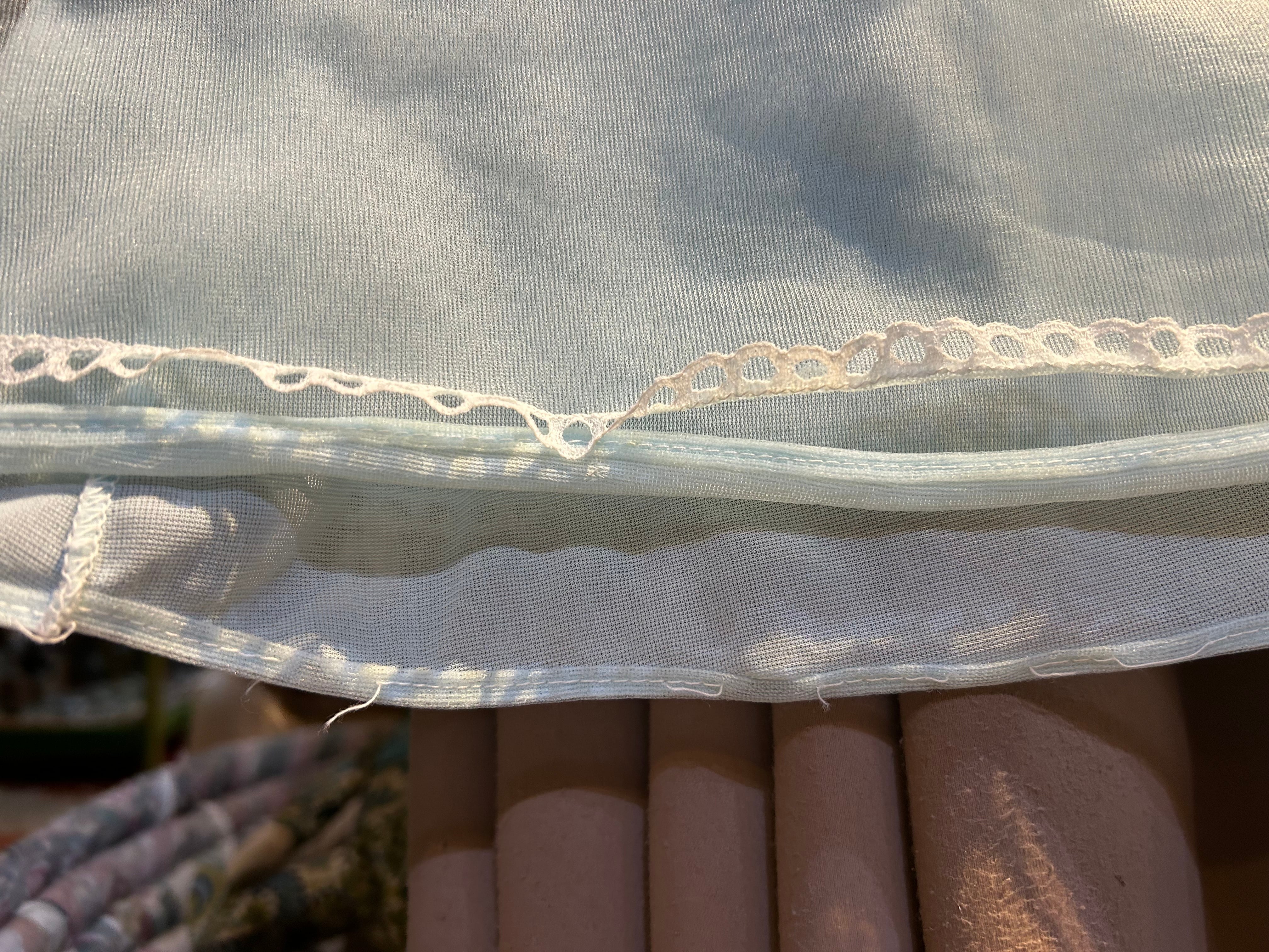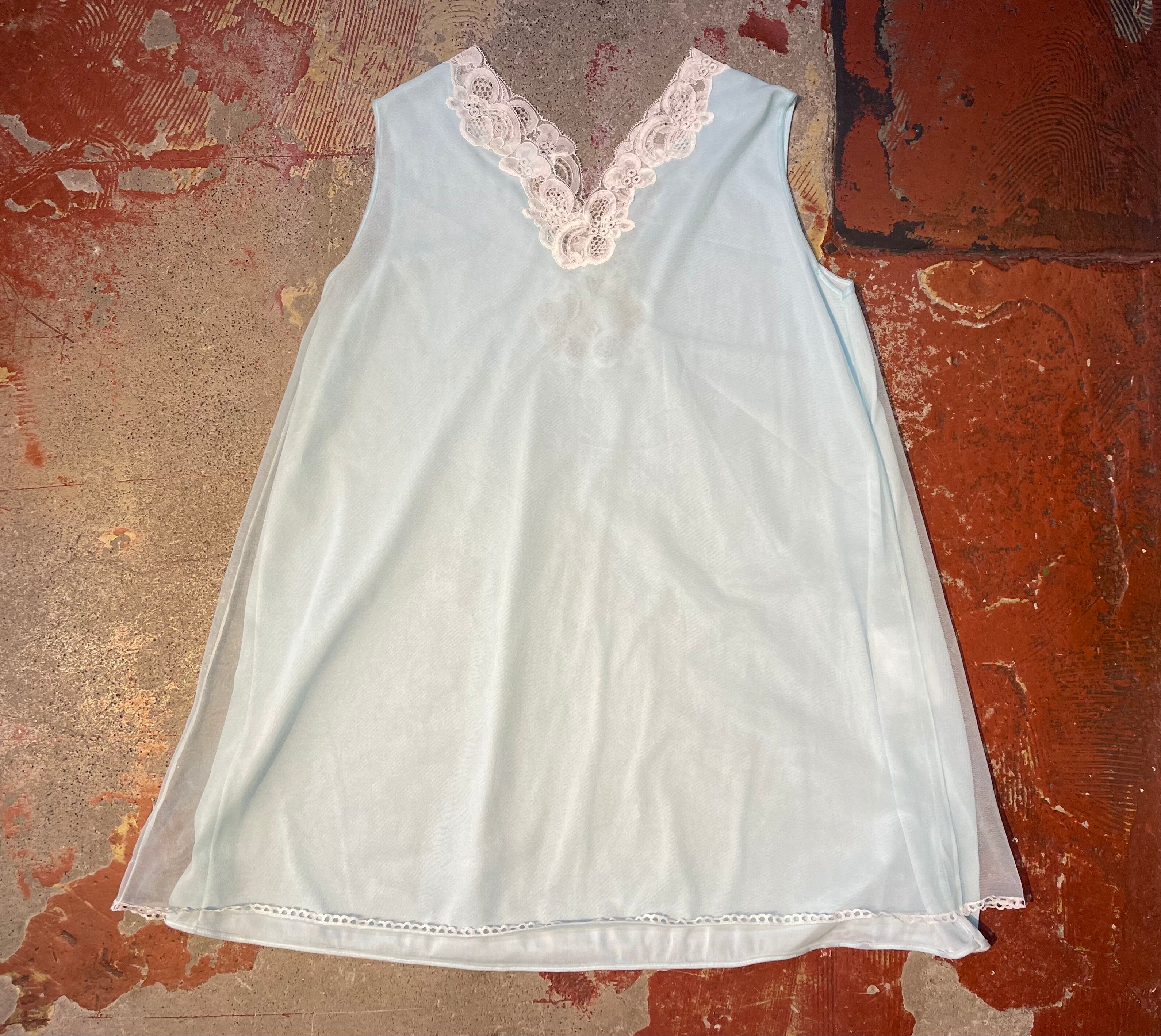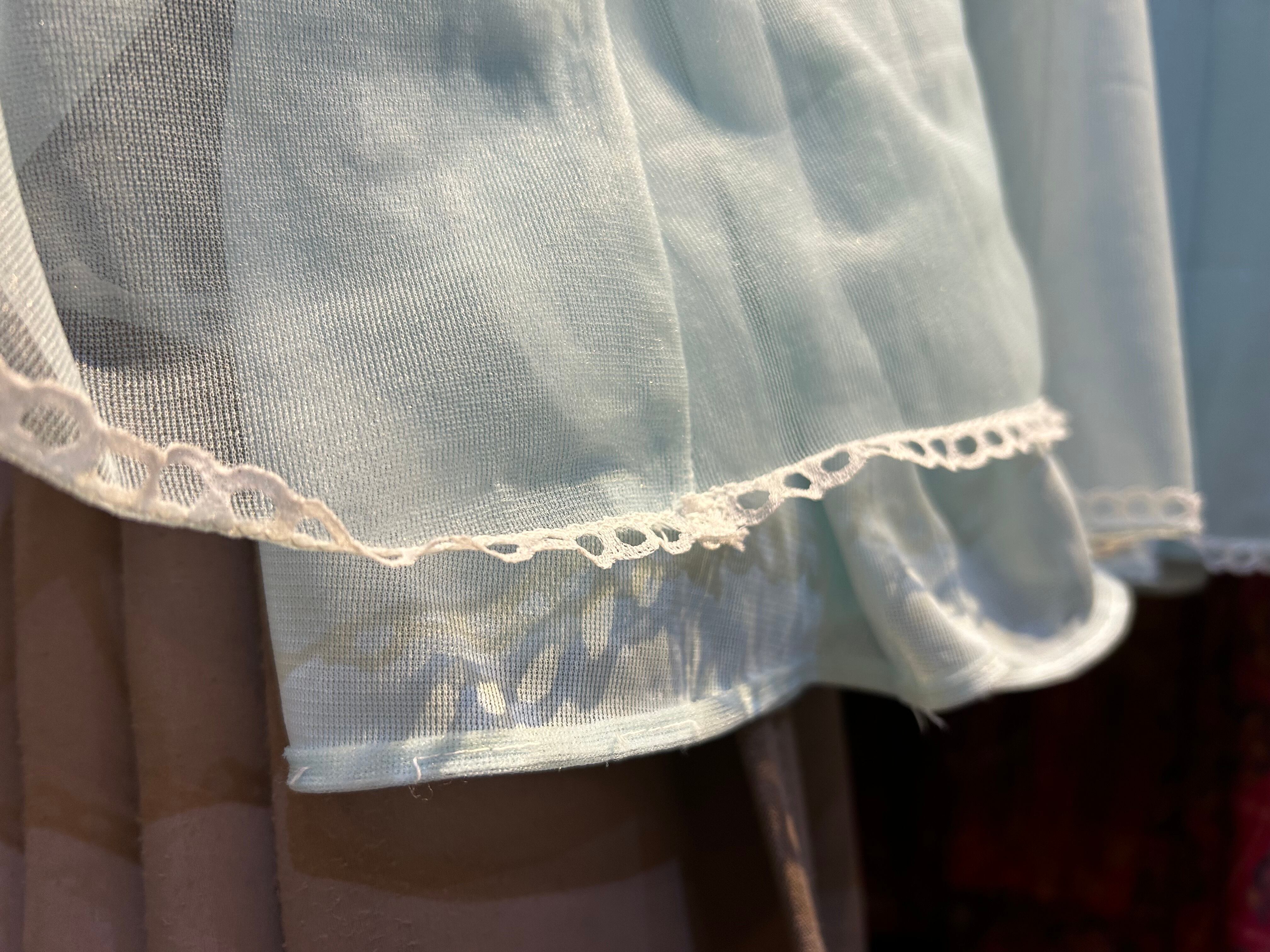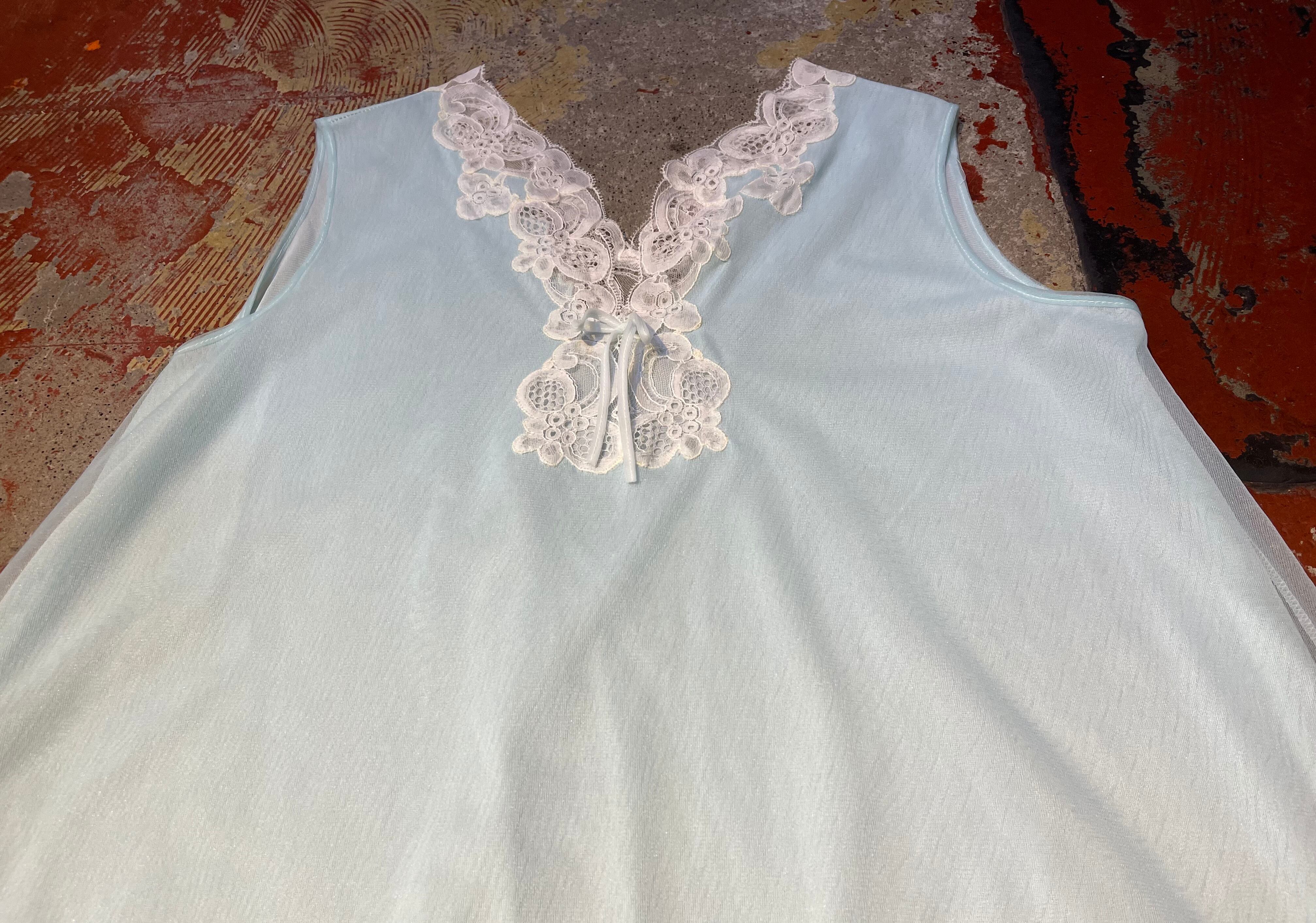 水色ボディ、ノースリーブに白いレースのデザインで重ね着コーデに大活躍間違いなしな1着です。