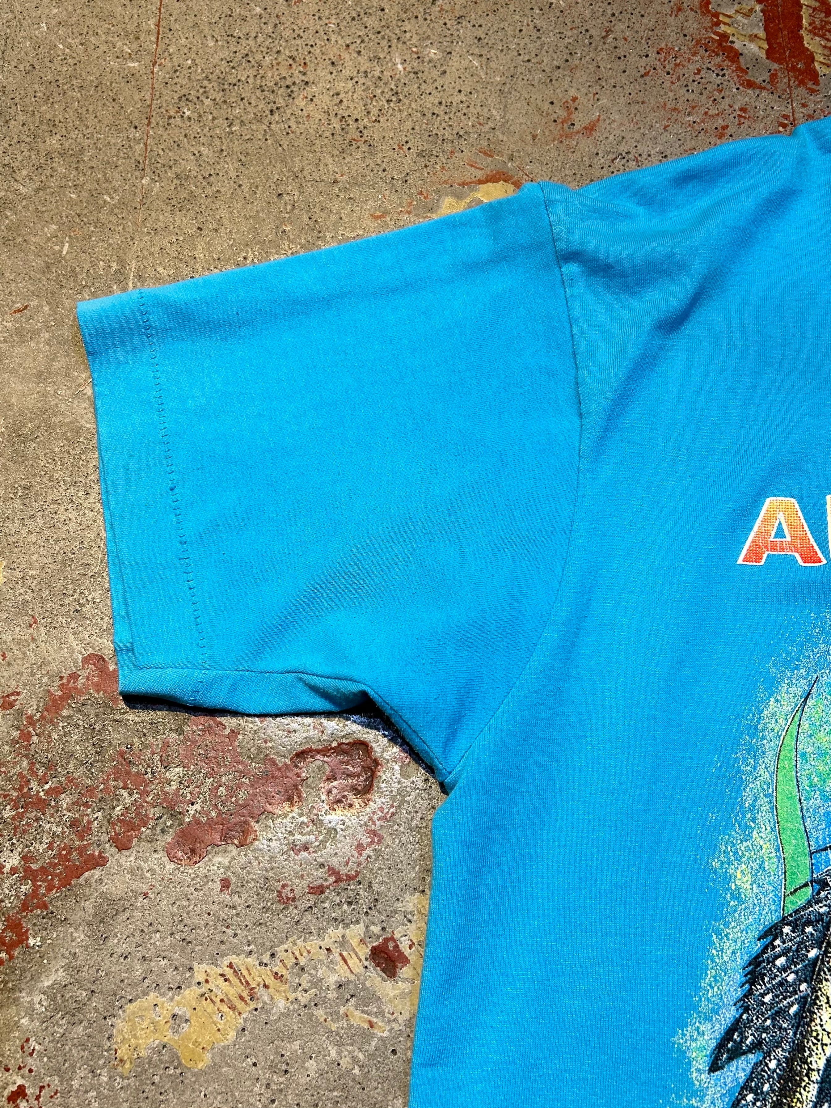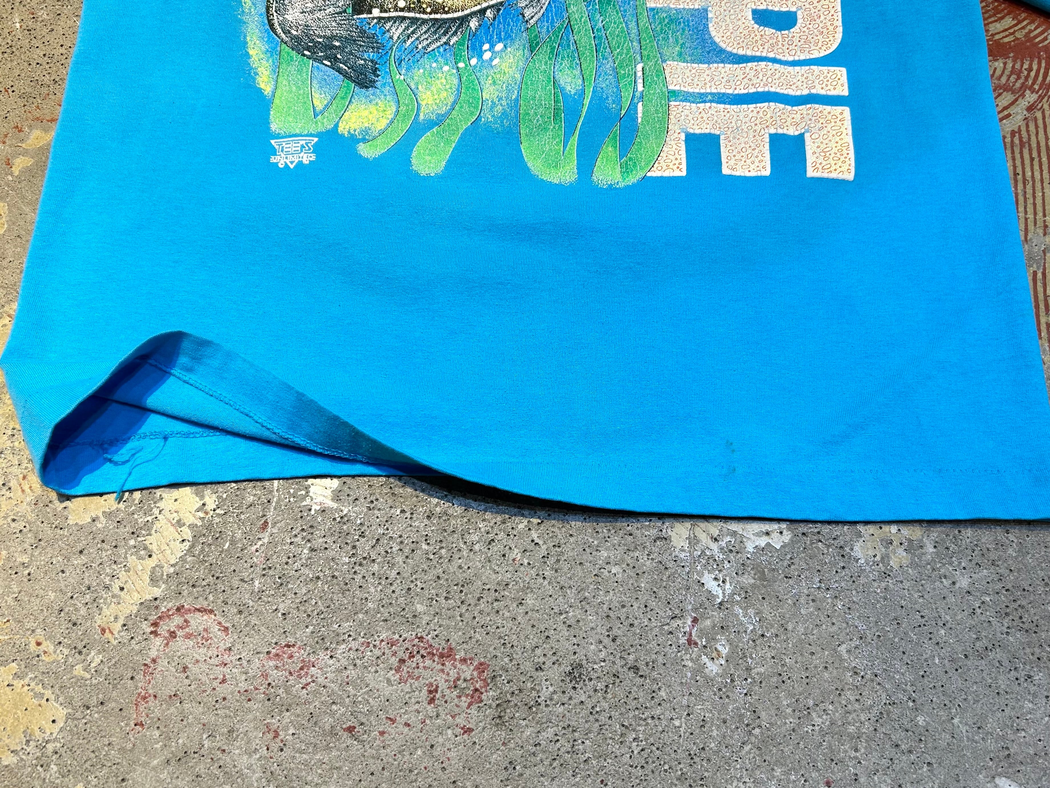 コンディション:プリントに割れ、フロント裾に汚れ、左袖に極小の穴がございますが、ビンテージにご理解頂いている方でしたら気にならない程度だと思われます。