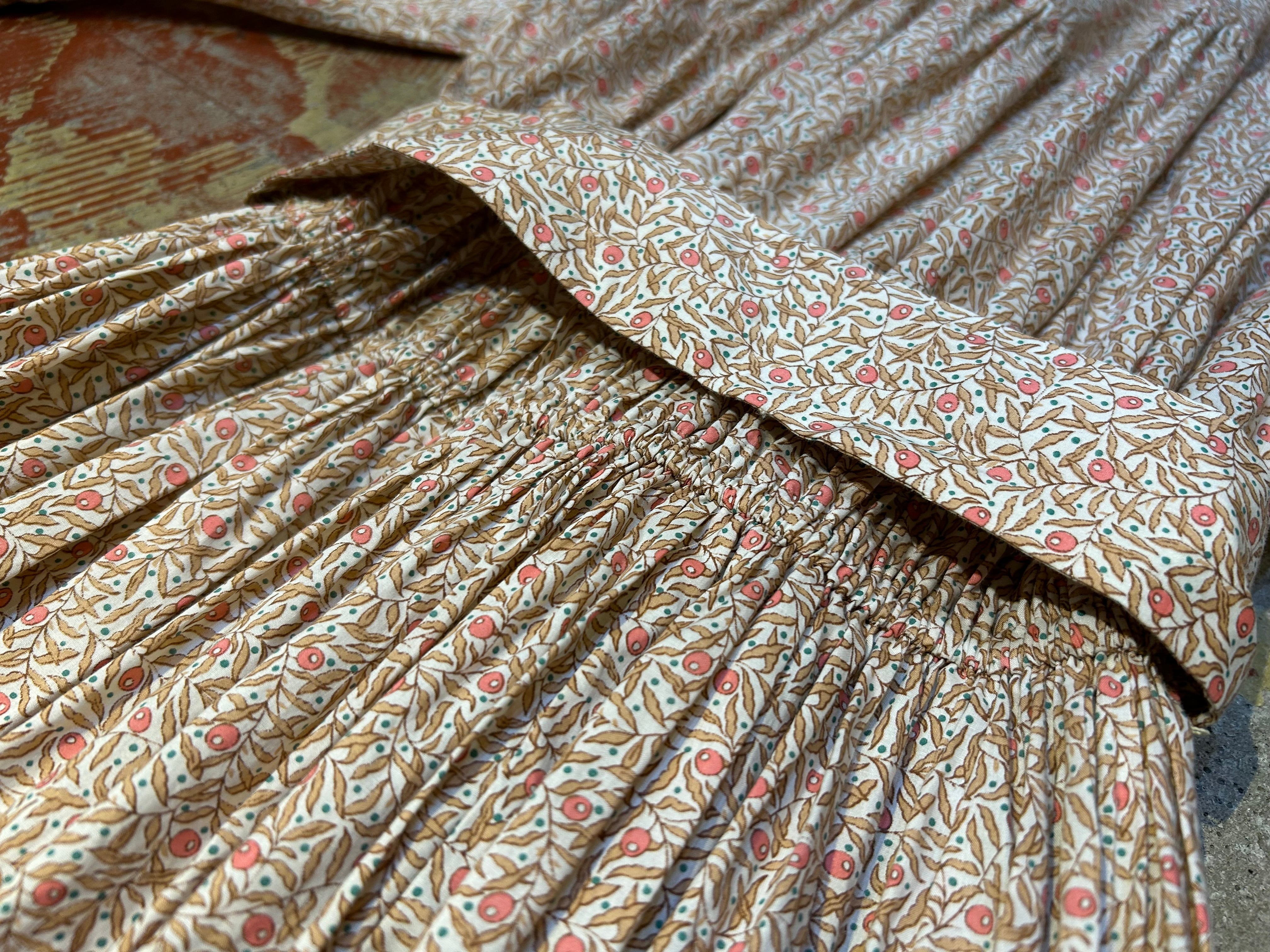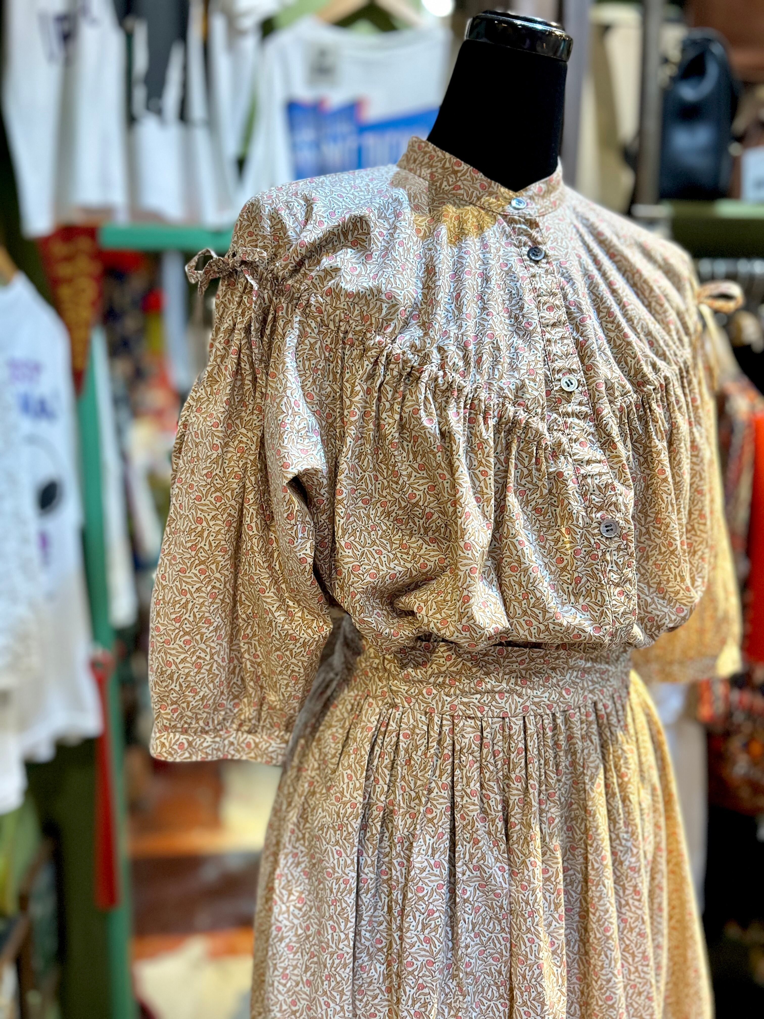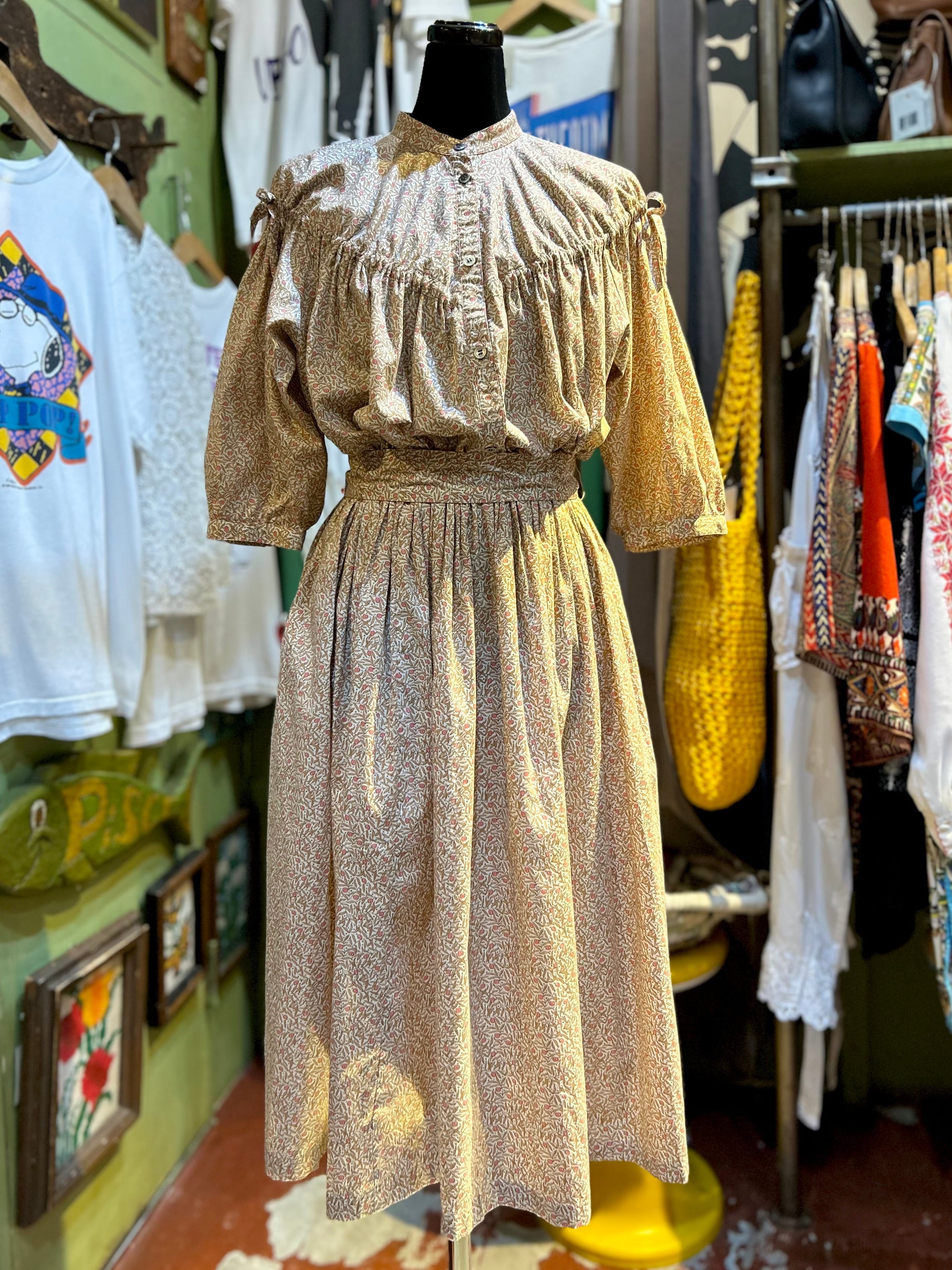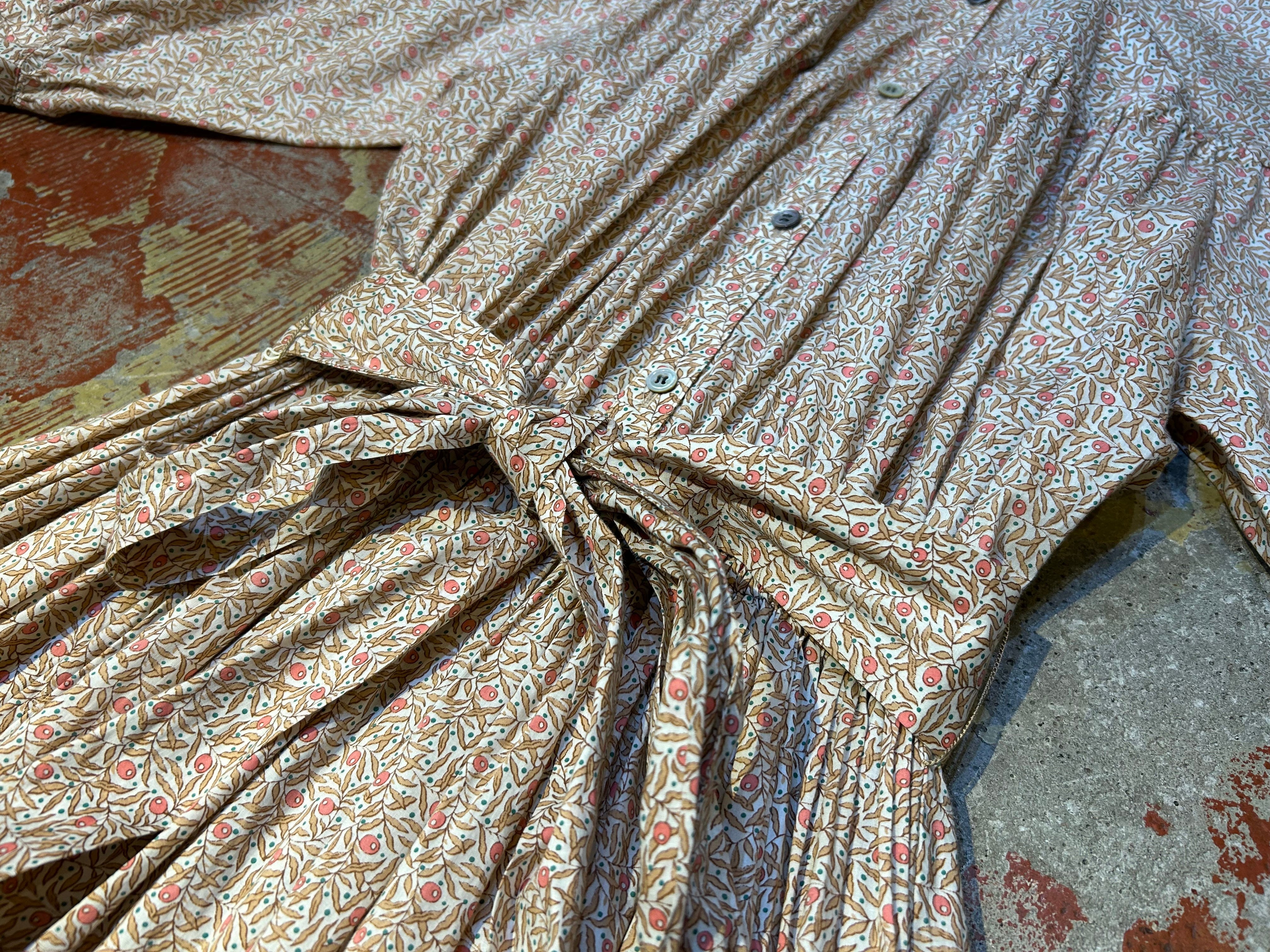 size:表記不明 肩幅なし、身幅53cm、ウエスト56cm(ゴムの為平置き最小採寸)、袖丈51cm(首付け根から採寸)、着丈109cm、ウエスト切替から裾67.5cm