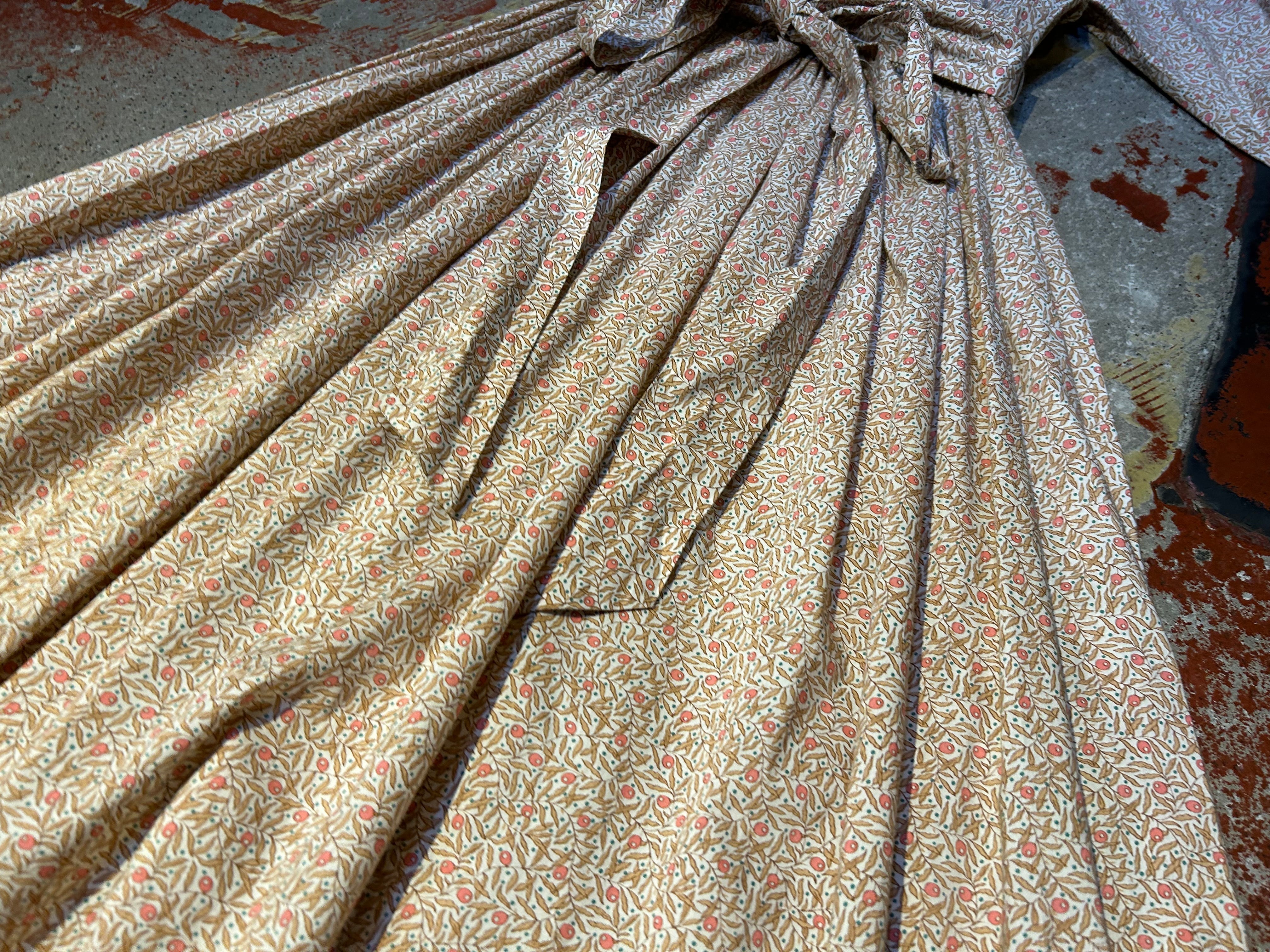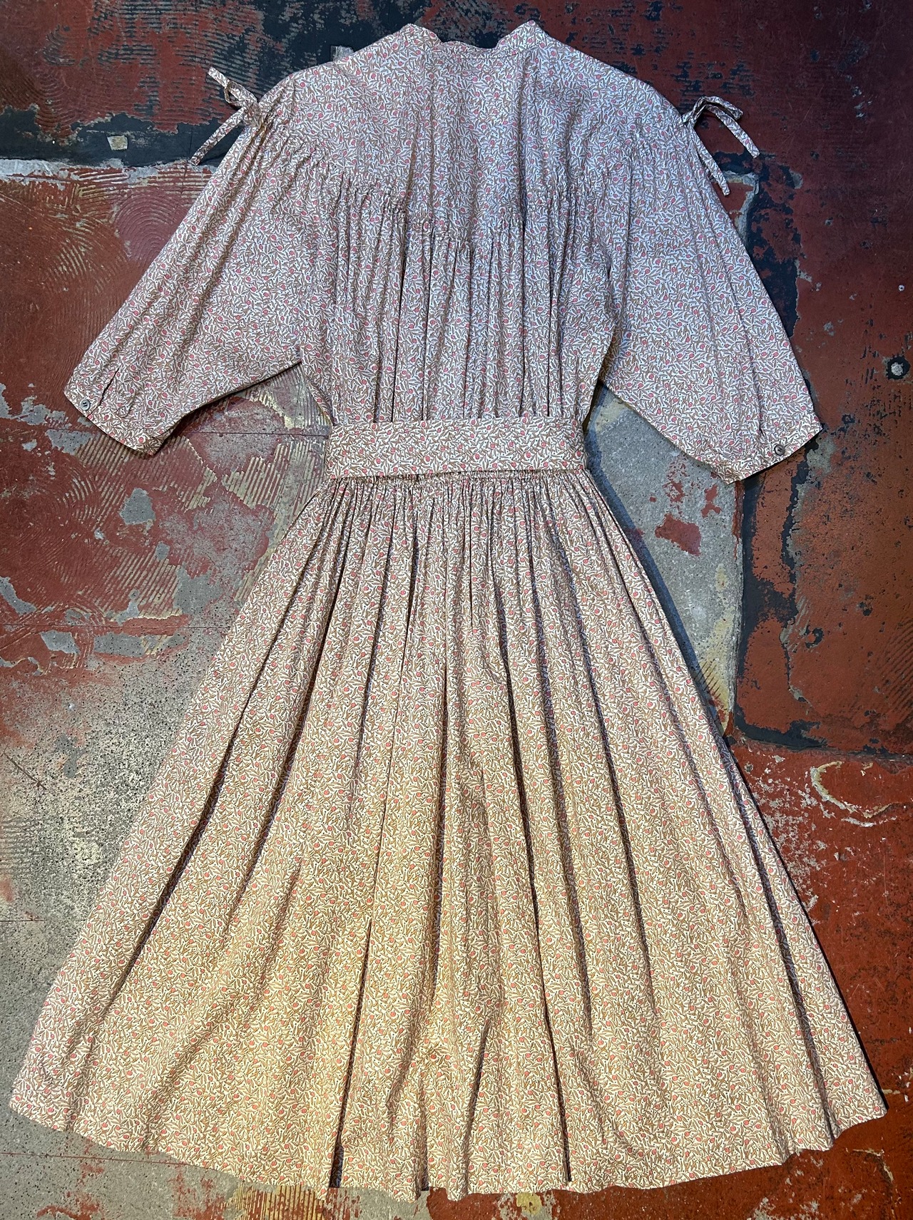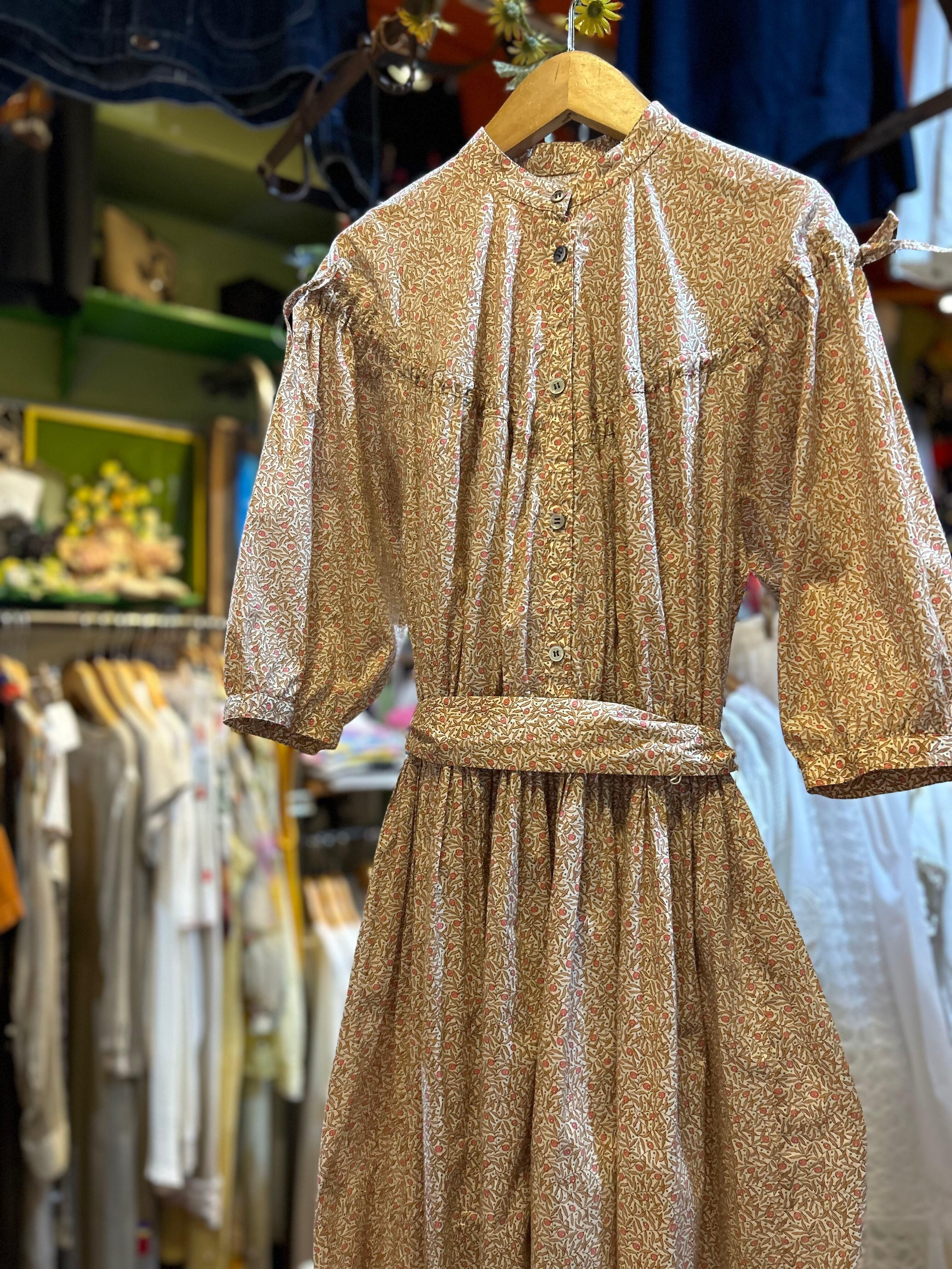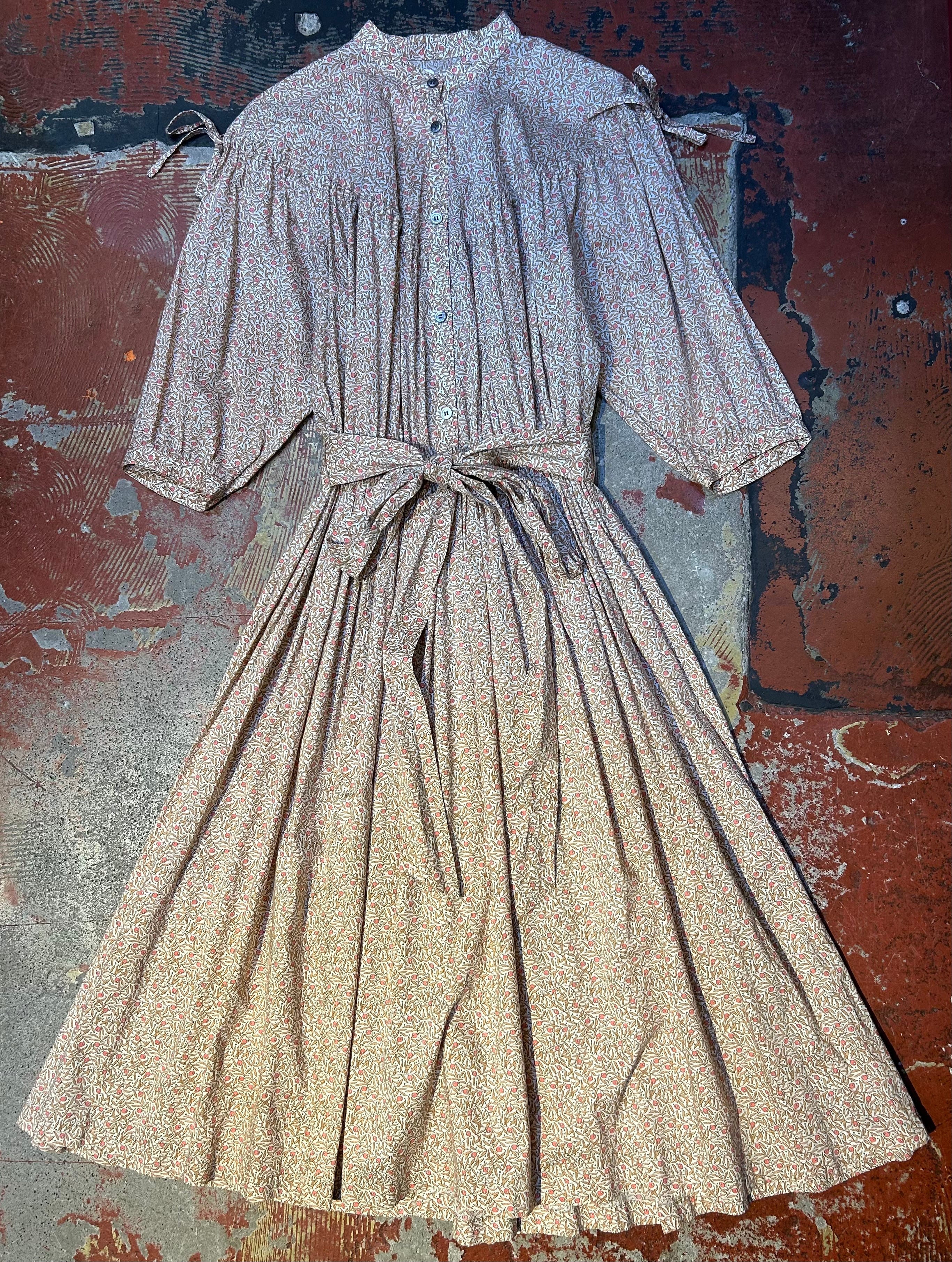 size:表記不明 肩幅なし、身幅53cm、ウエスト56cm(ゴムの為平置き最小採寸)、袖丈51cm(首付け根から採寸)、着丈109cm、ウエスト切替から裾67.5cm