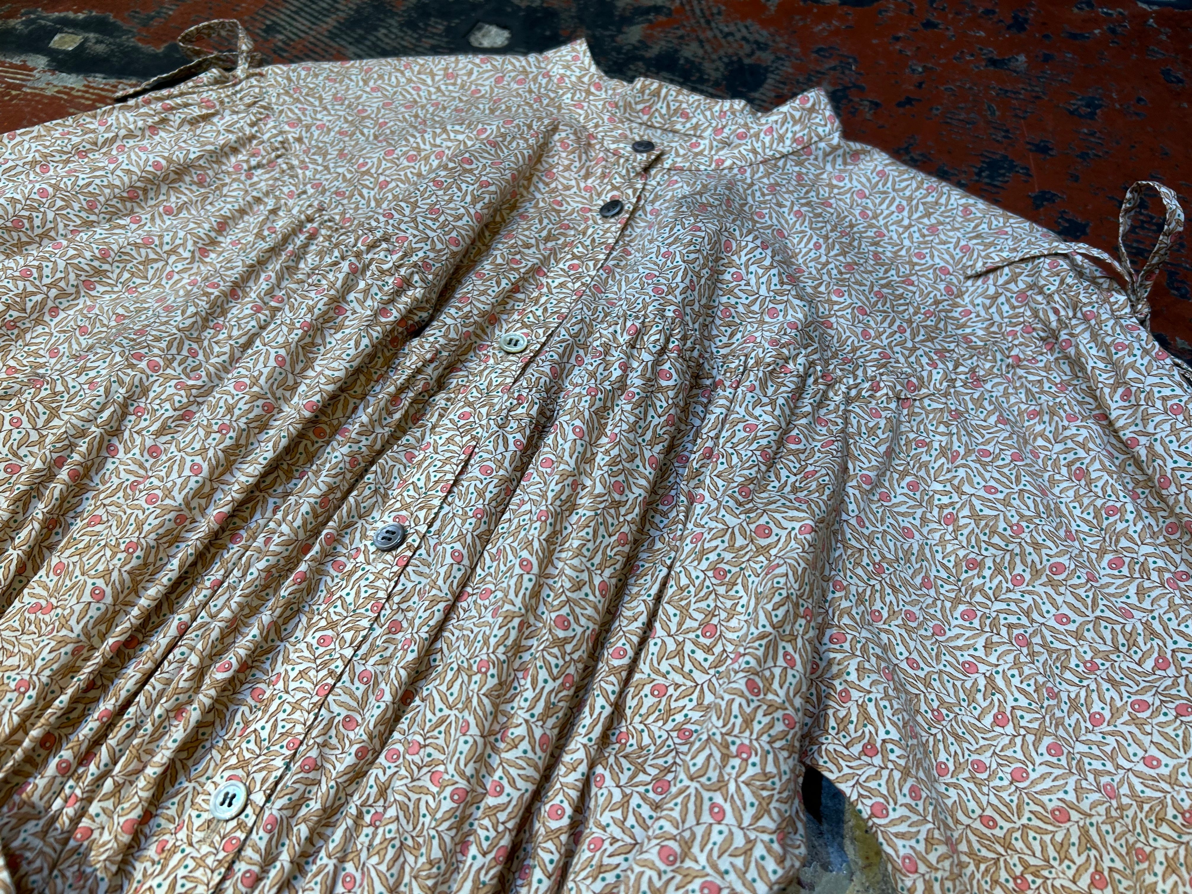 袖はゆったりなドルマンのようなスリーブ、ヨークの切替ラインに近い部分にドローコードが入り肩で結ぶリボンが可愛いです。