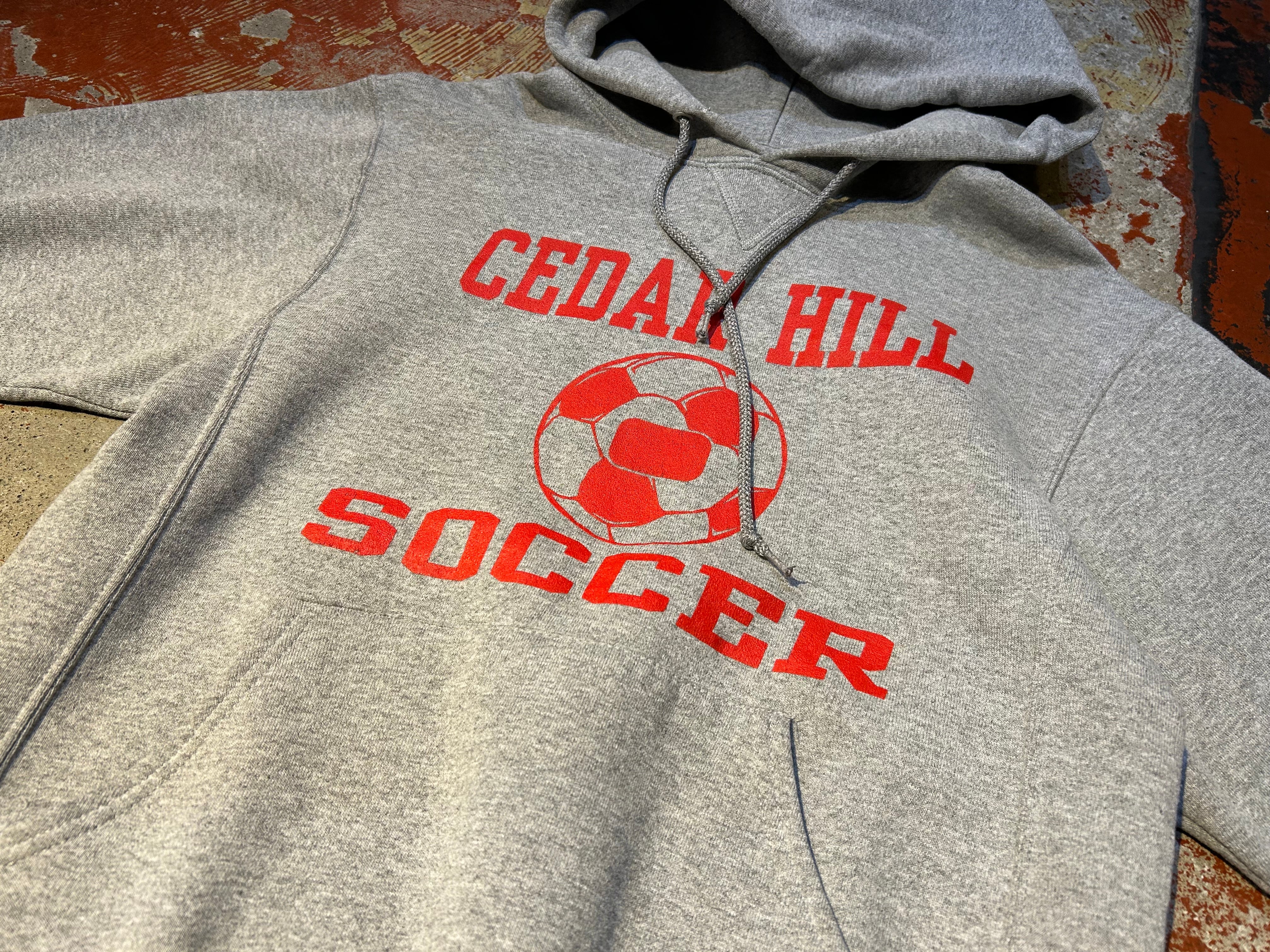 グレー霜降り、フロントはサッカーのデザインがかっこいい一着です。
