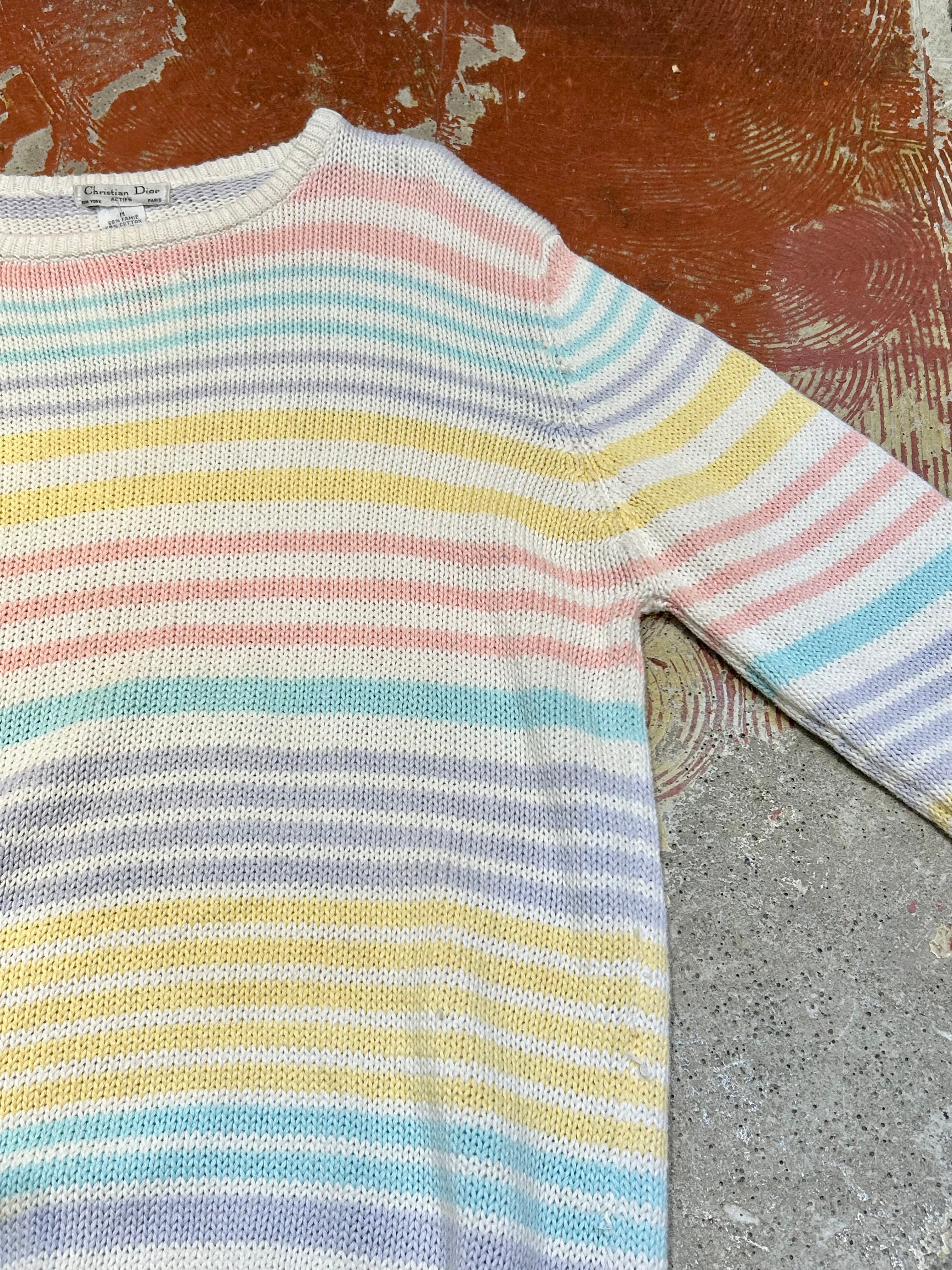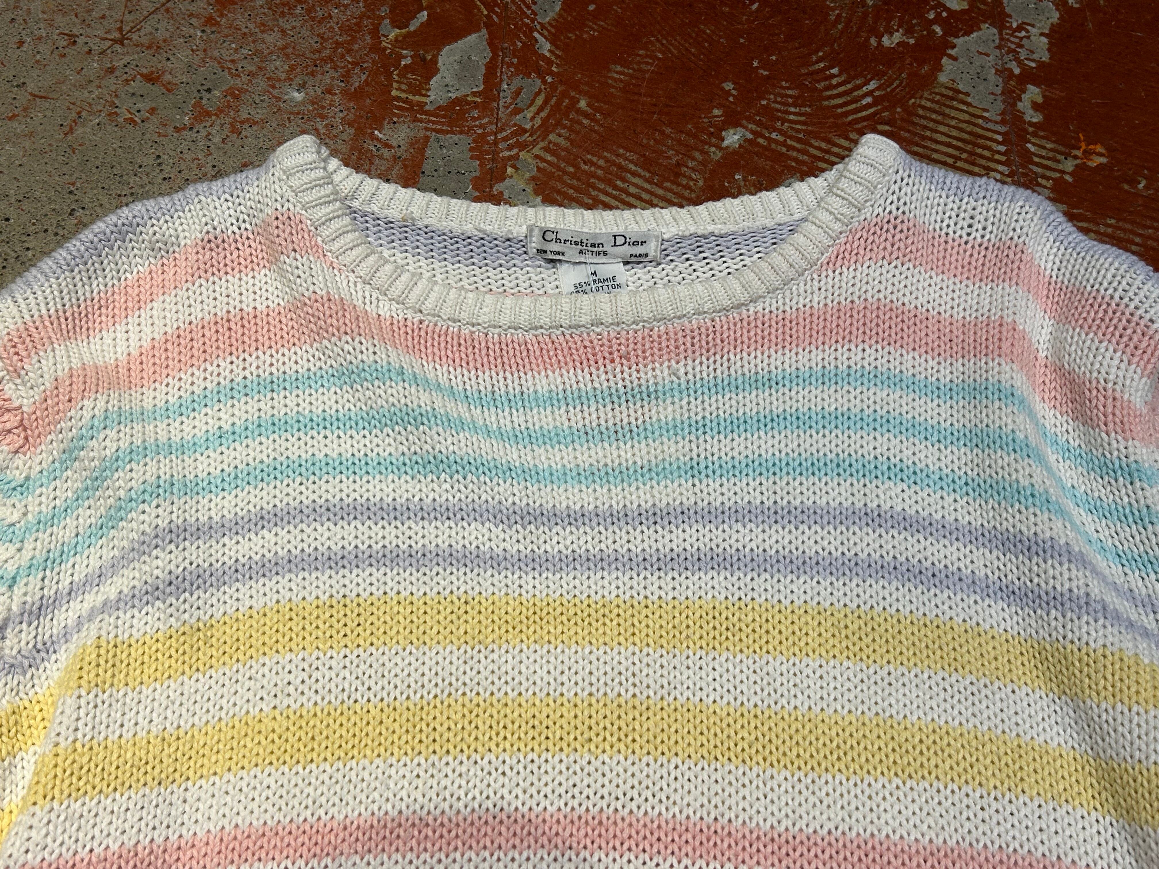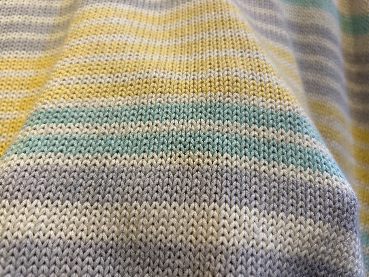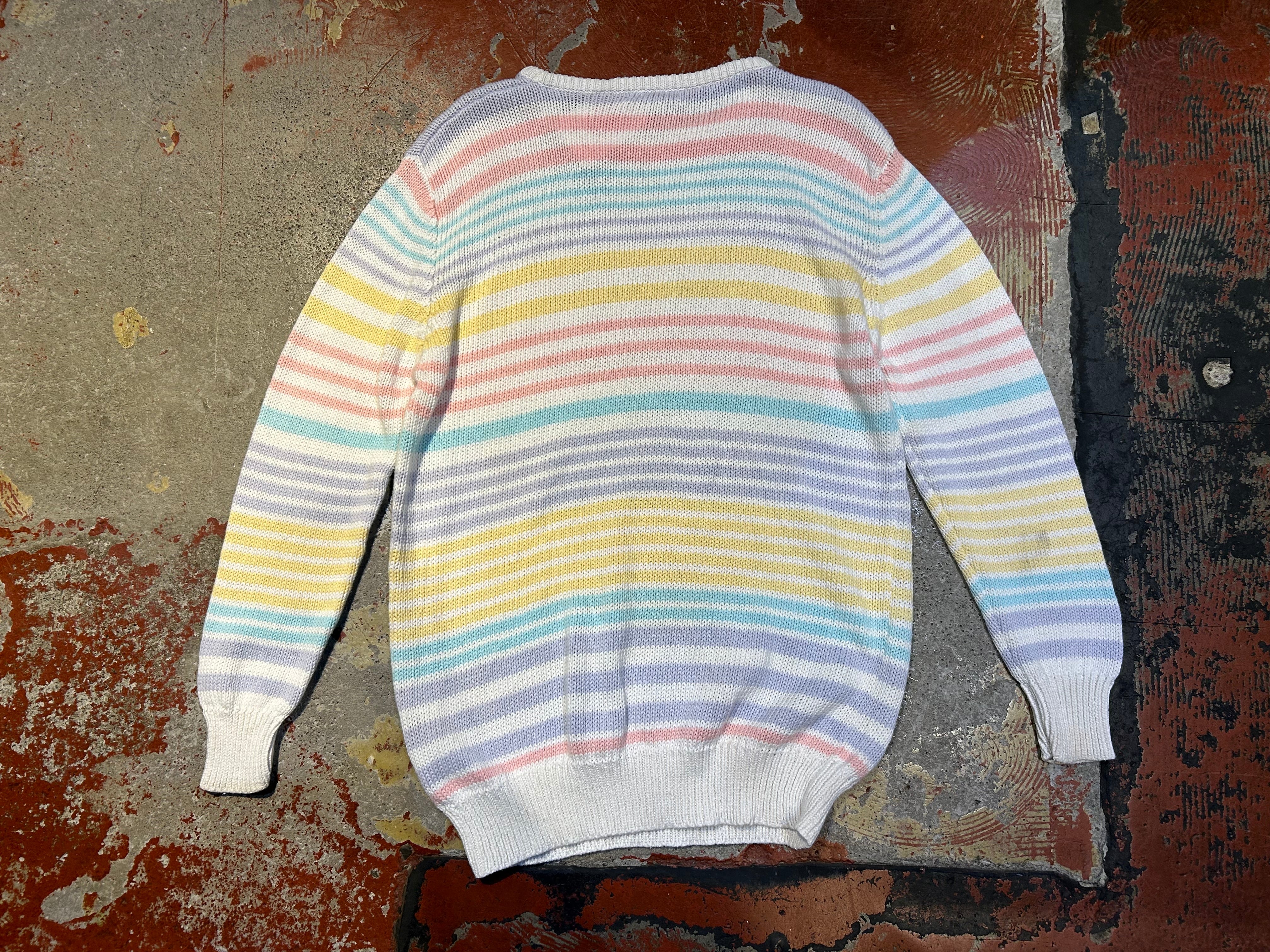 ホワイトとパステルのボーダーが可愛いコットンニット。