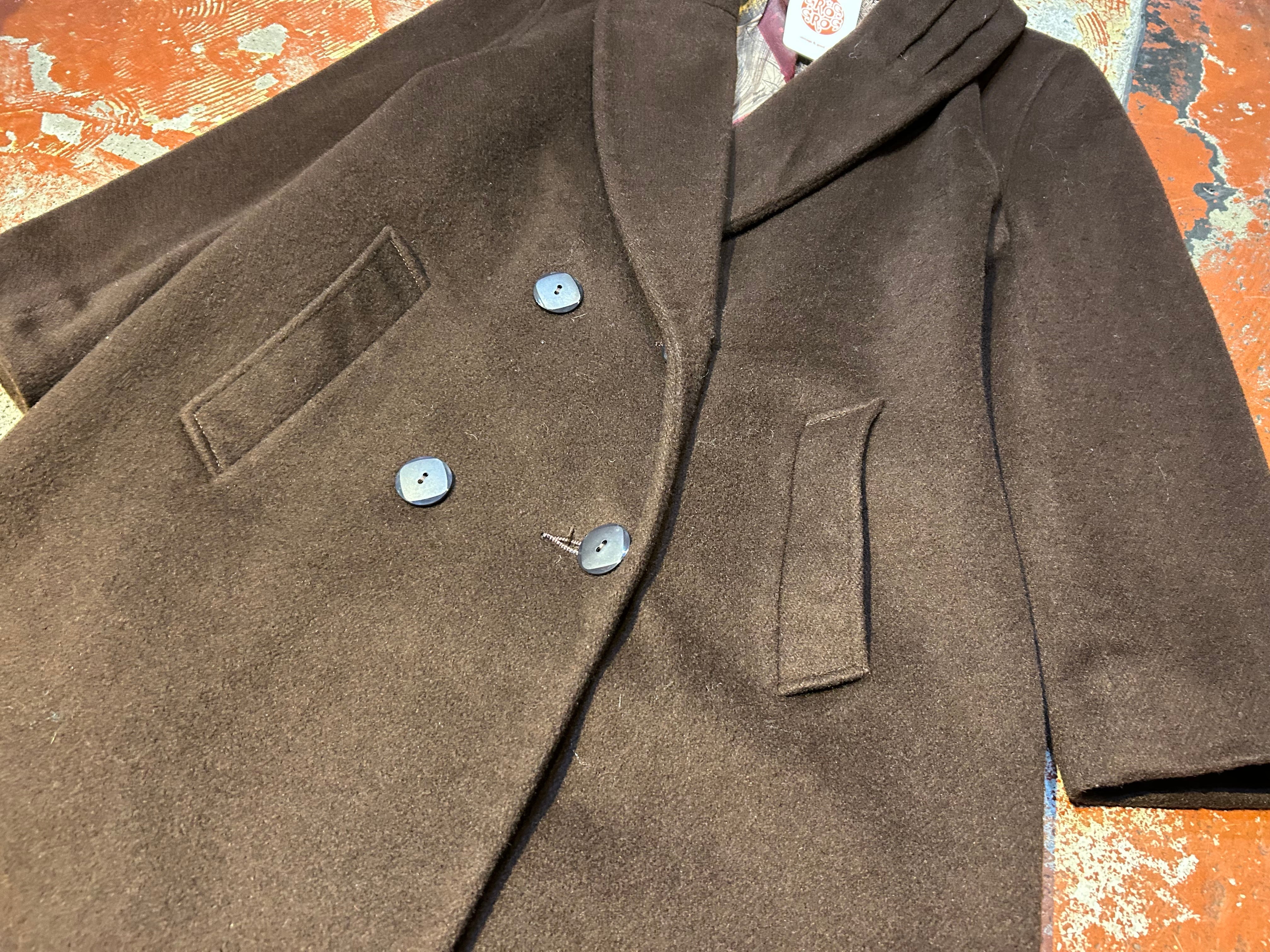 ショールカラーにフロントはダブルの作りでシルエットも素敵で一枚で決まります。