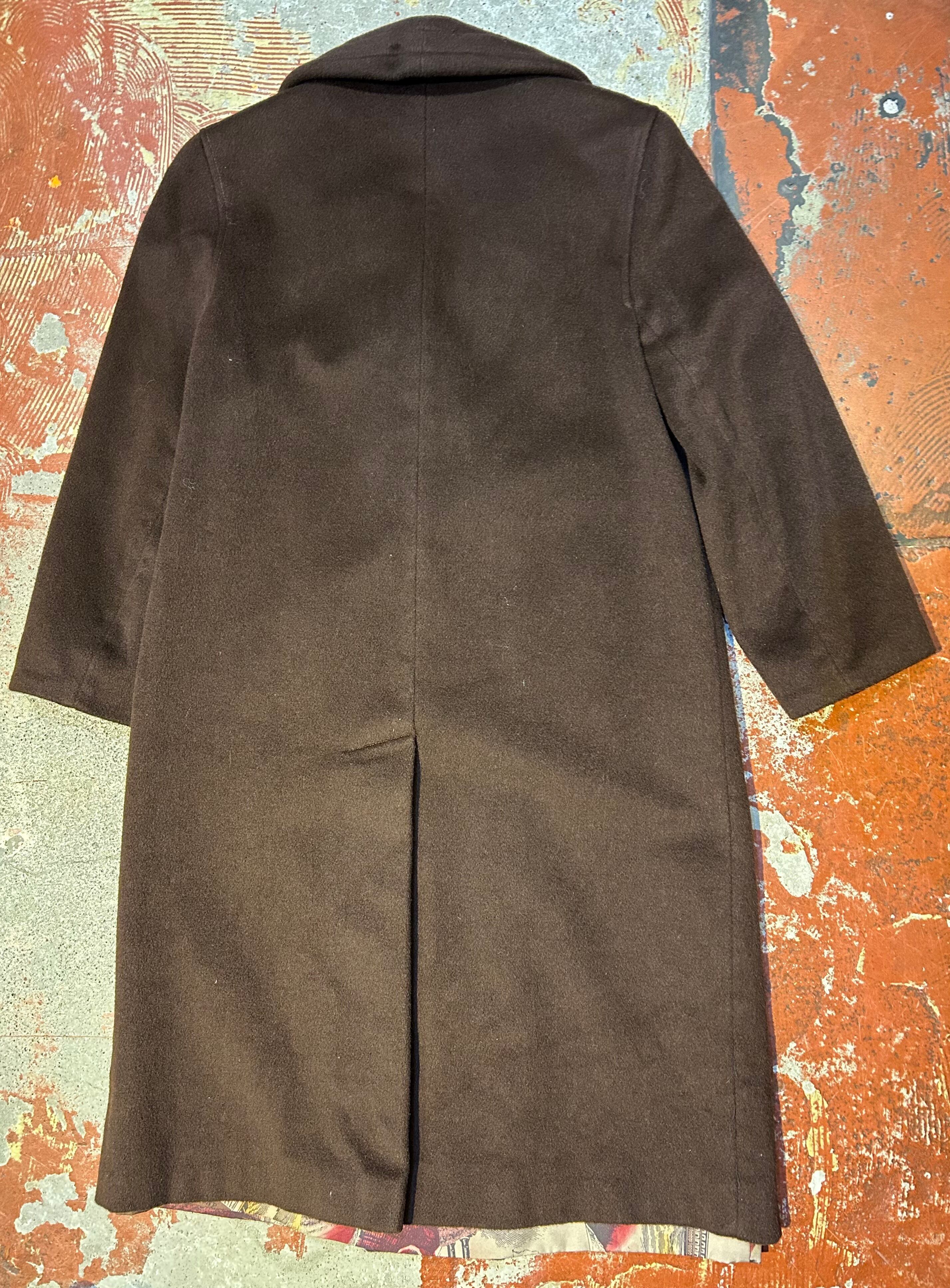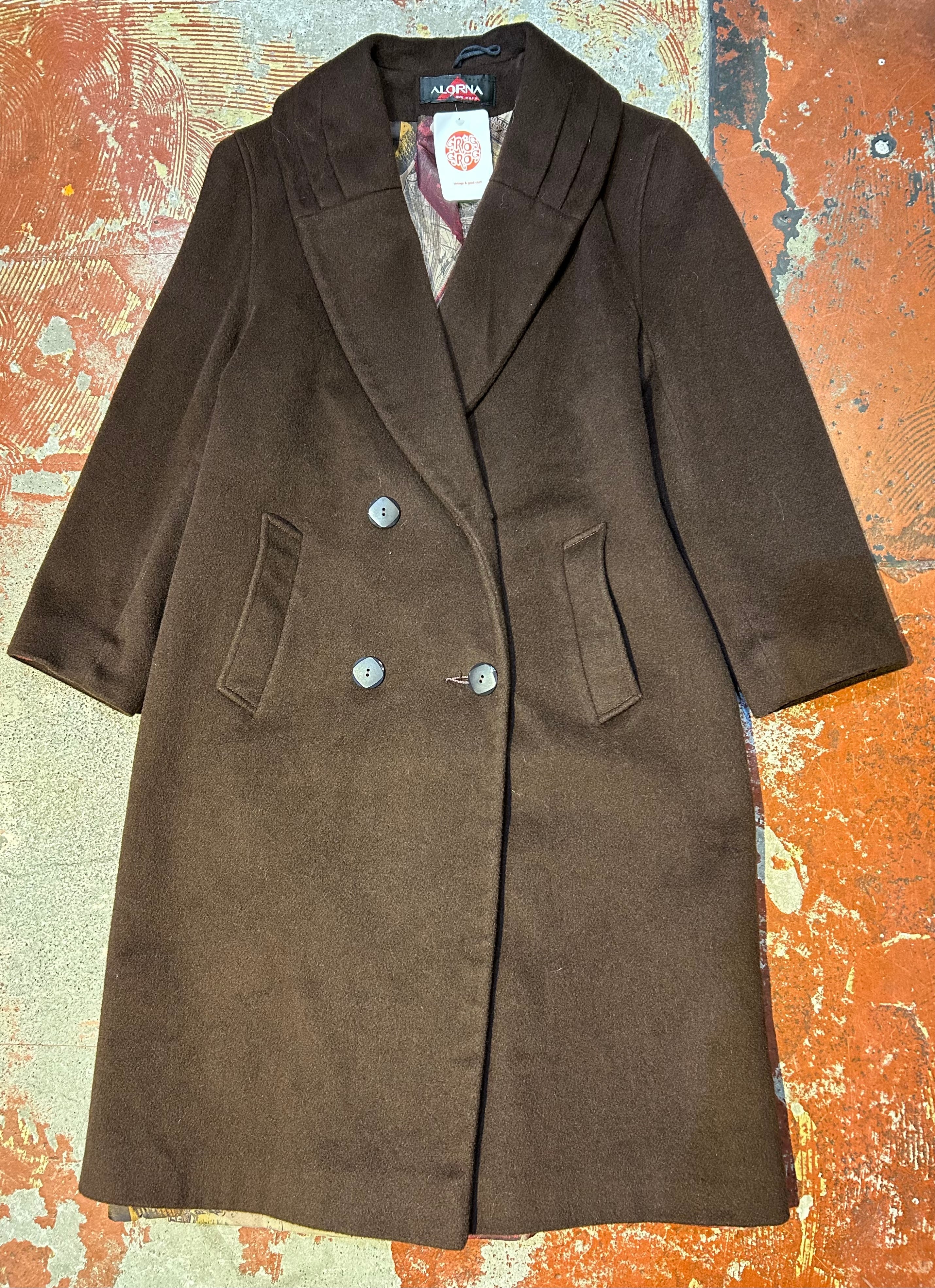 茶ボディにプリントの入った素敵な裏地とスカーフが映える1着。