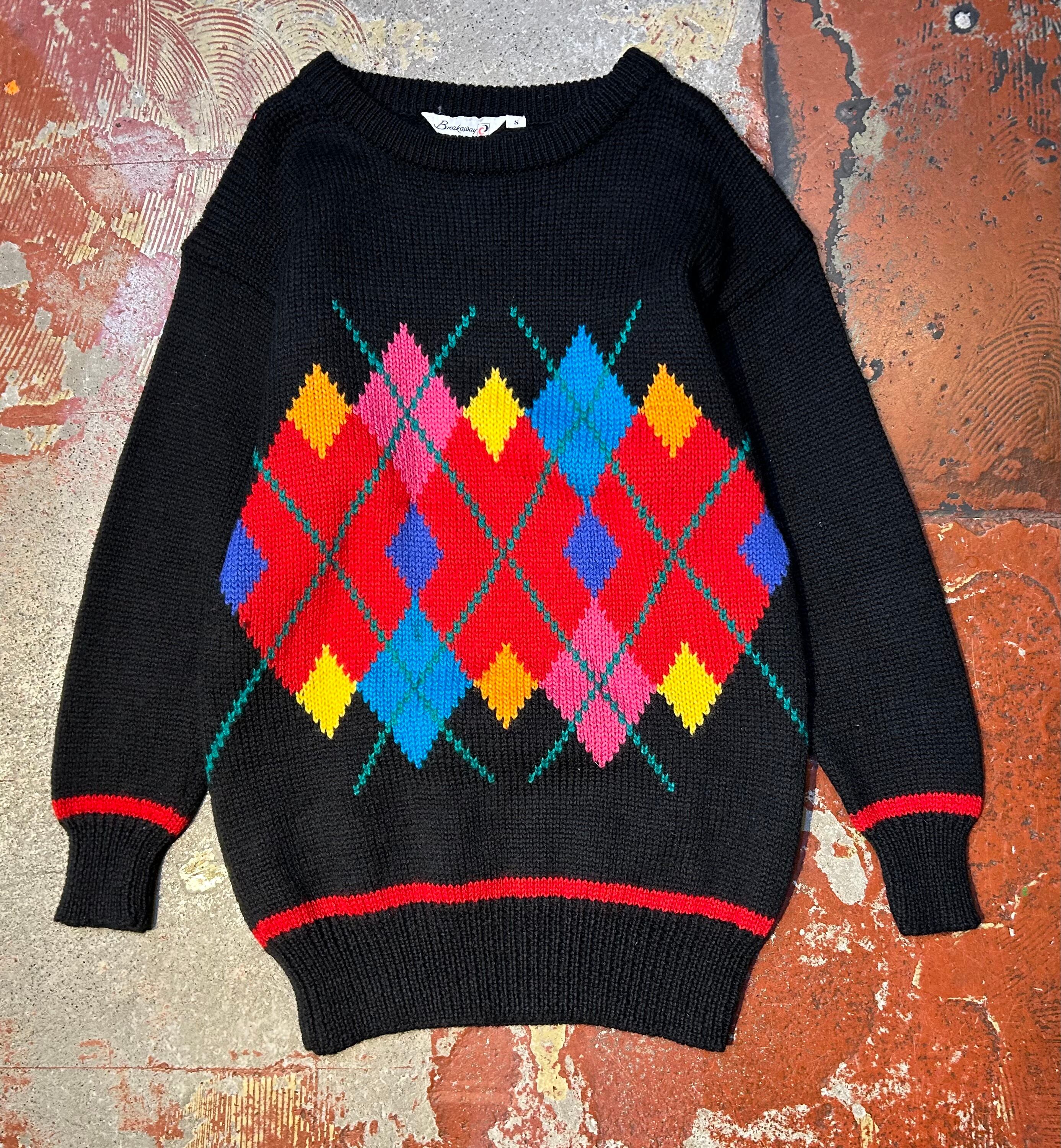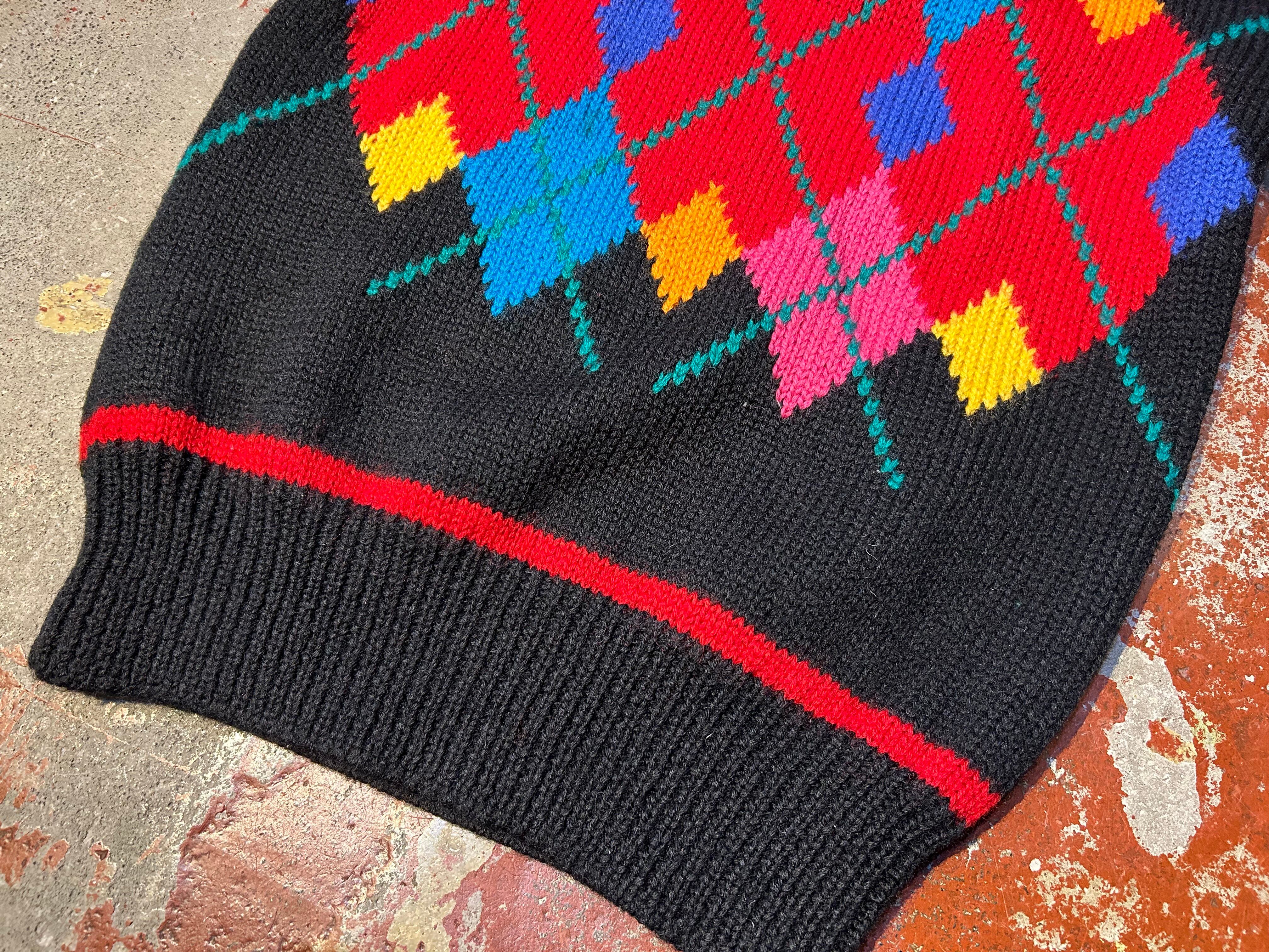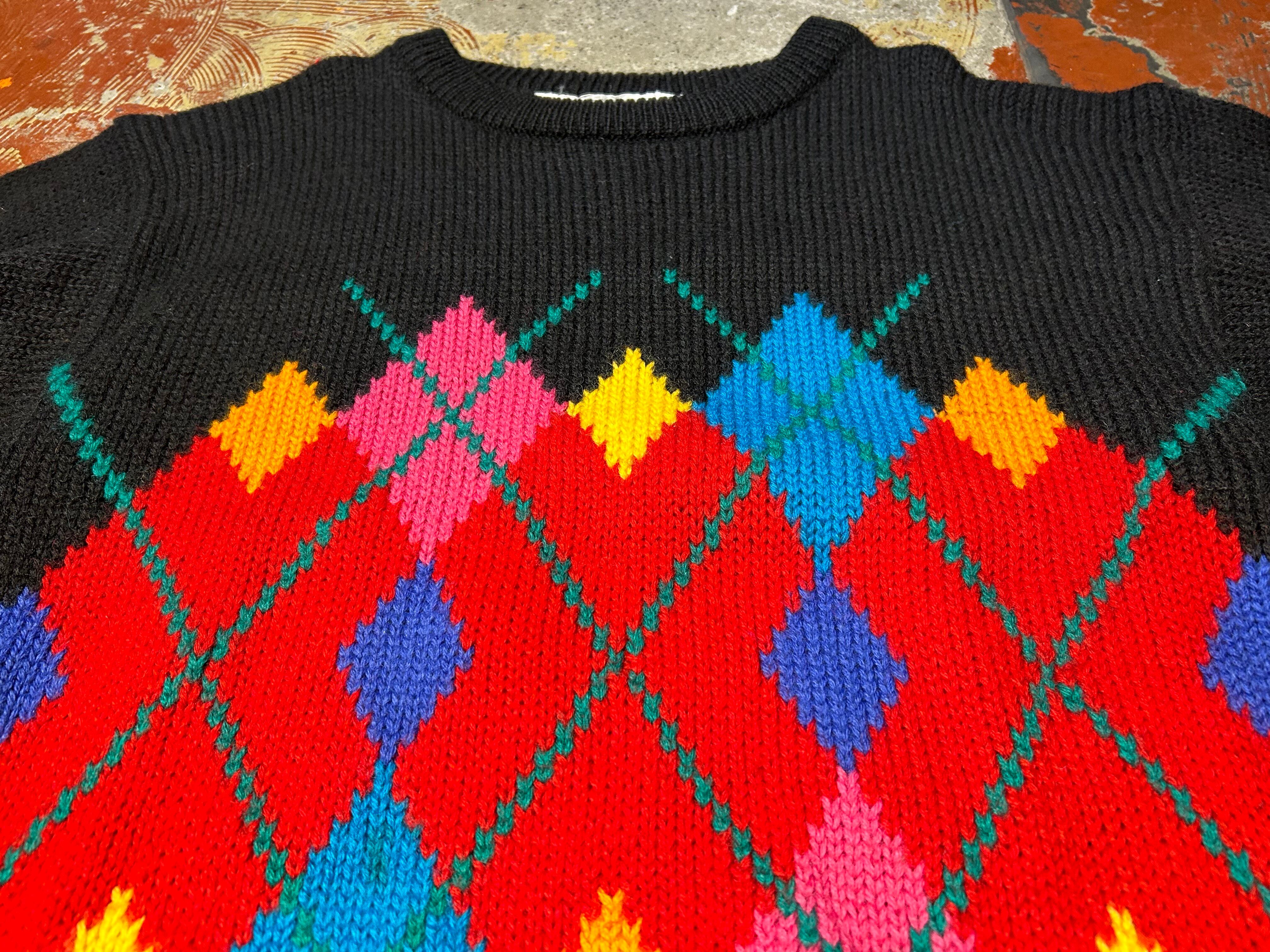 黒ボディにカラフルなアーガイルデザインがインパクト抜群のアイテム。