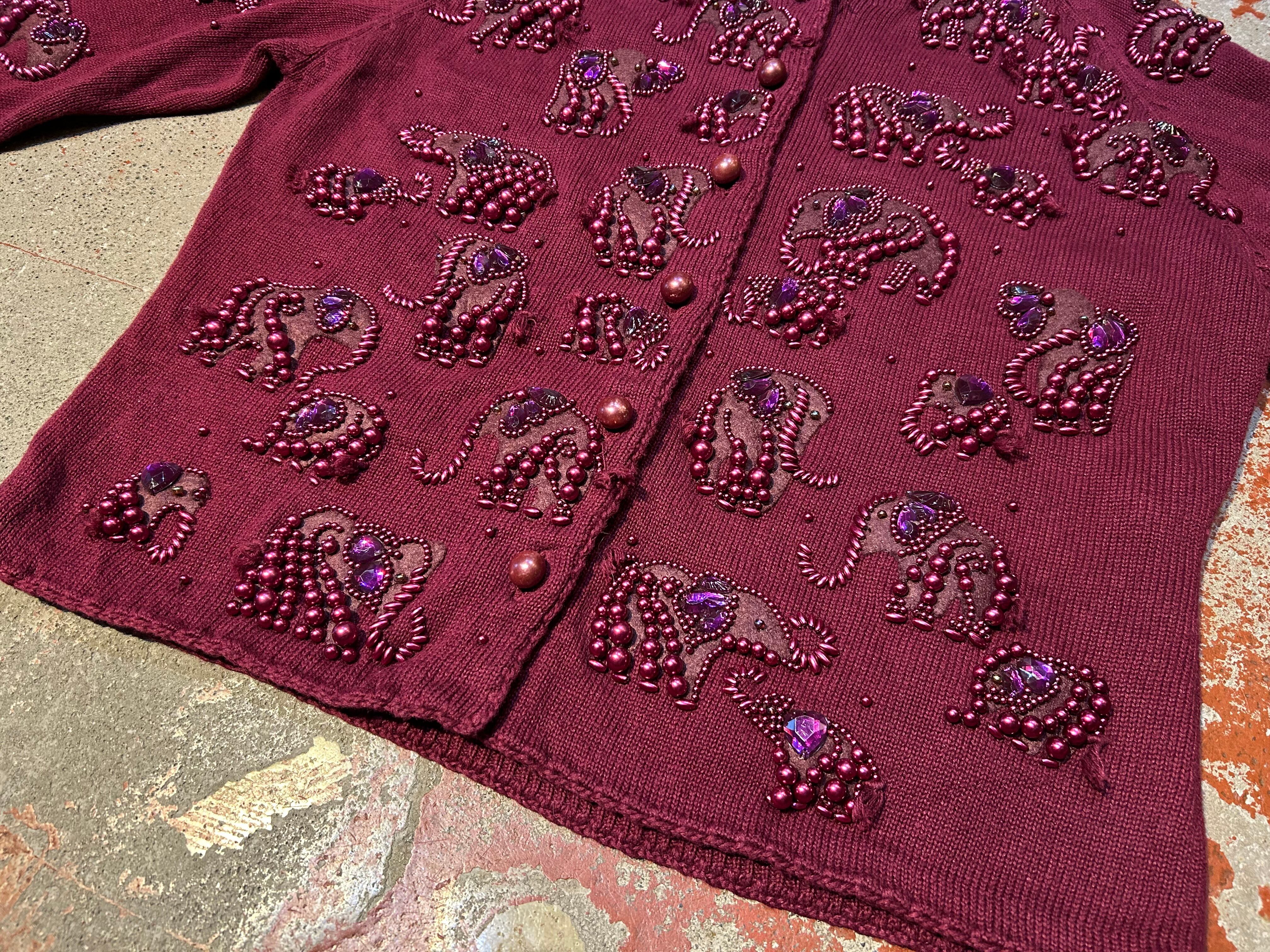 紫ボディにラインストーンやパールビーズを用いてデザインされたゾウが可愛いアイテム。