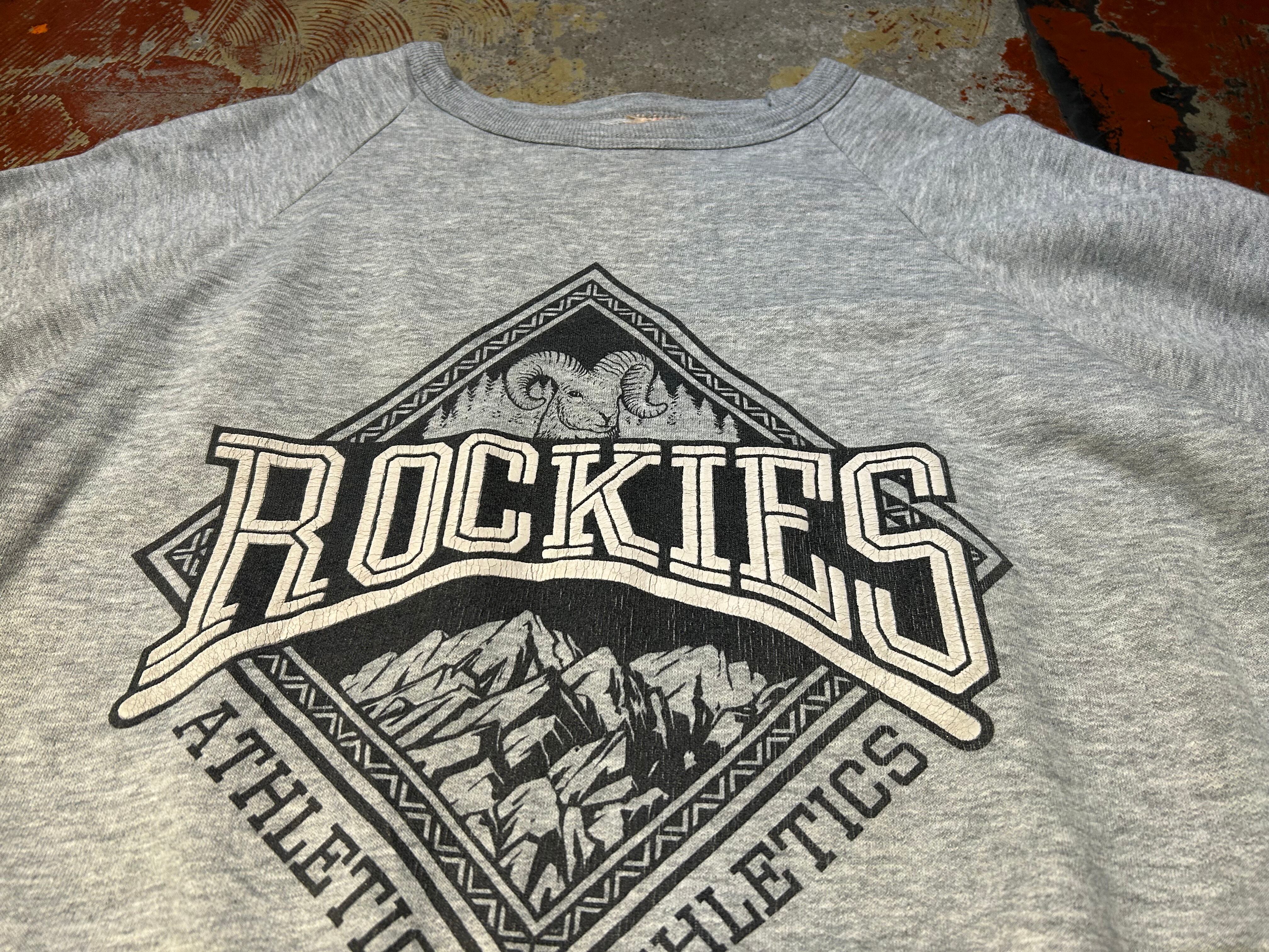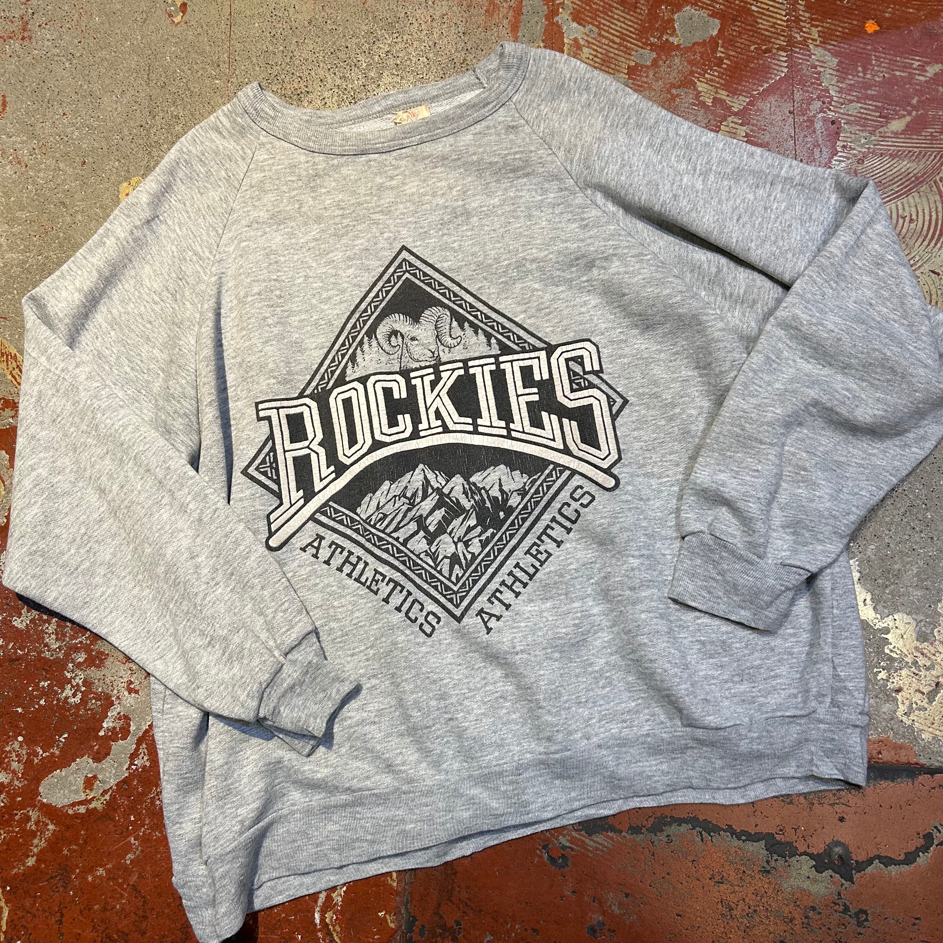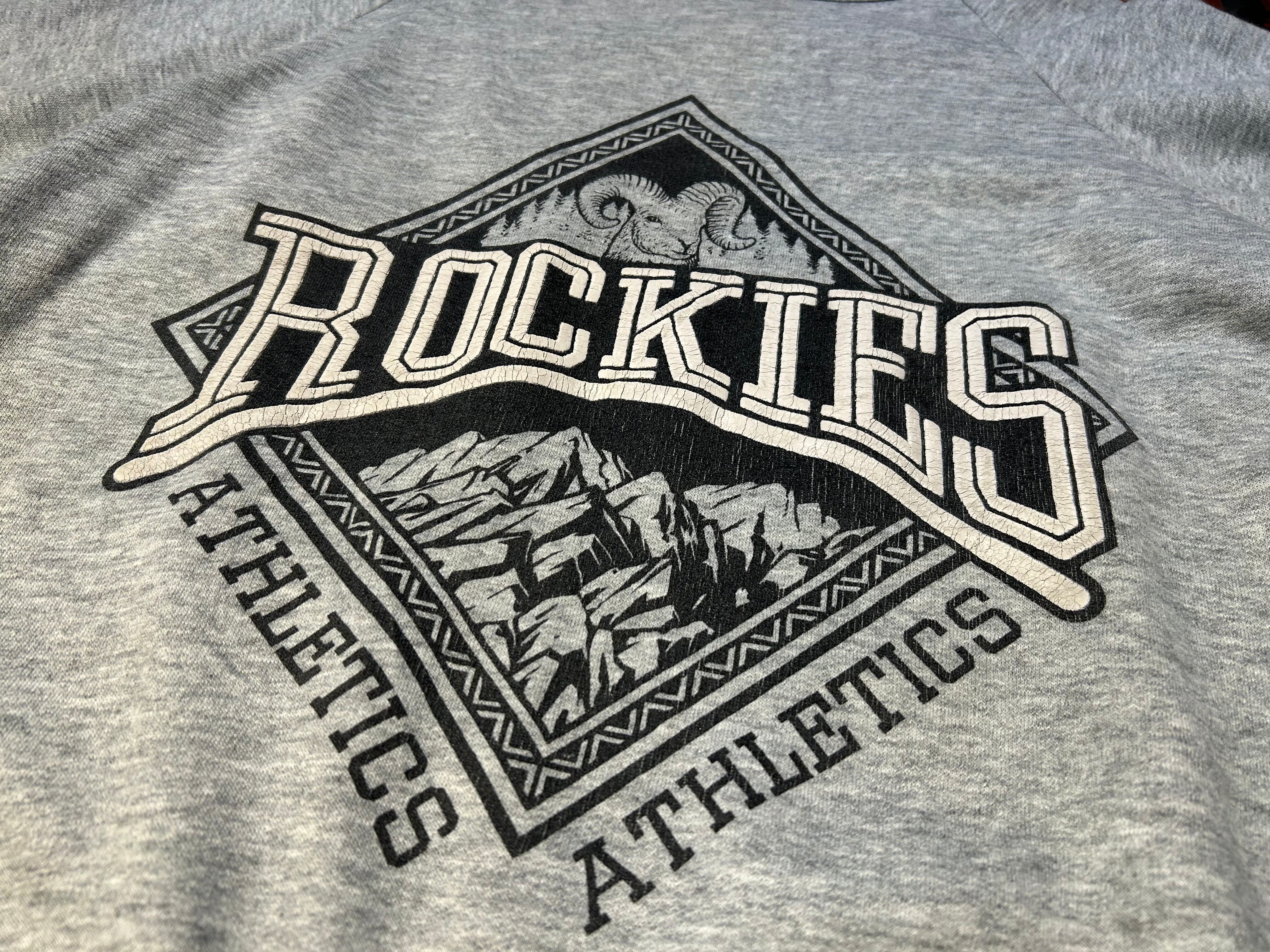 霜降りグレー、フロントには大きな羊とROCKIESのプリントのアイテム。