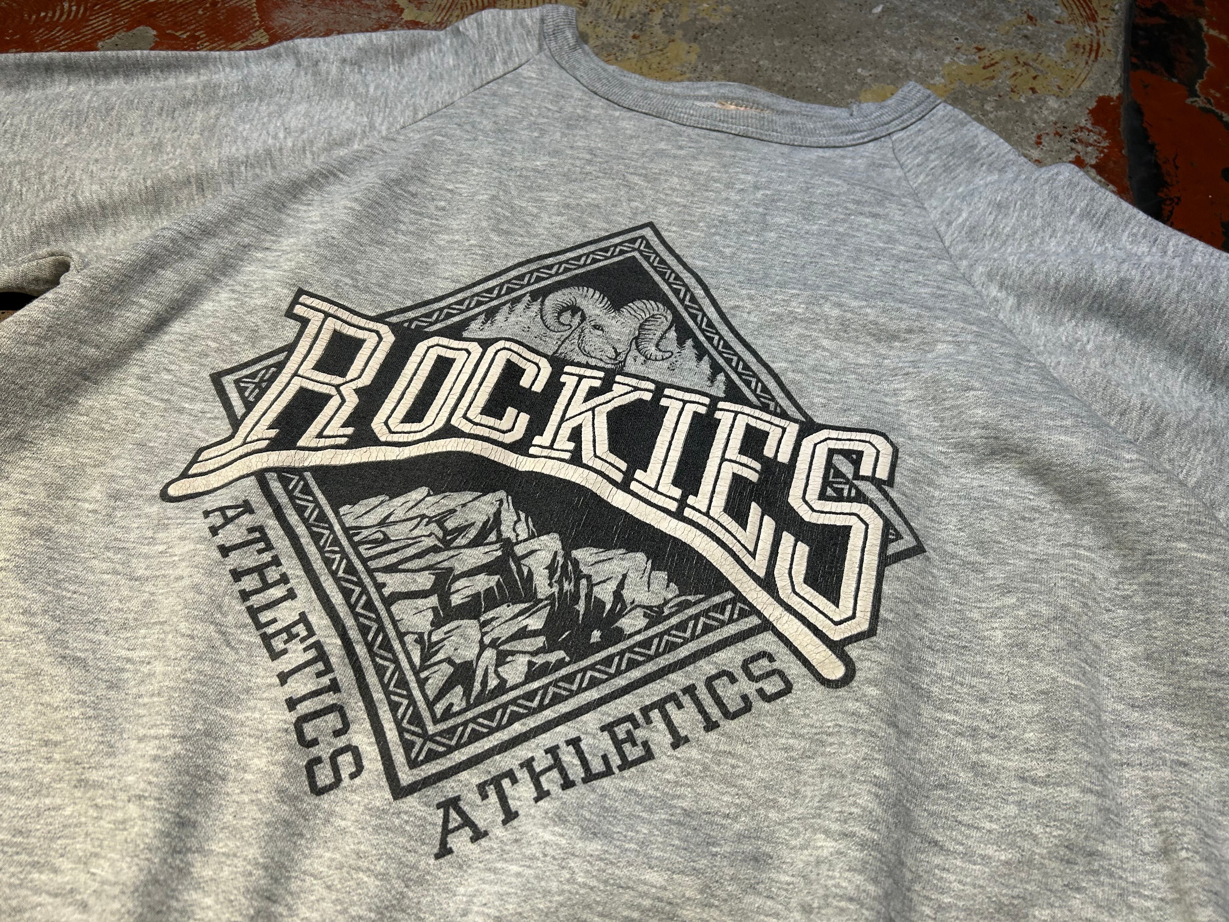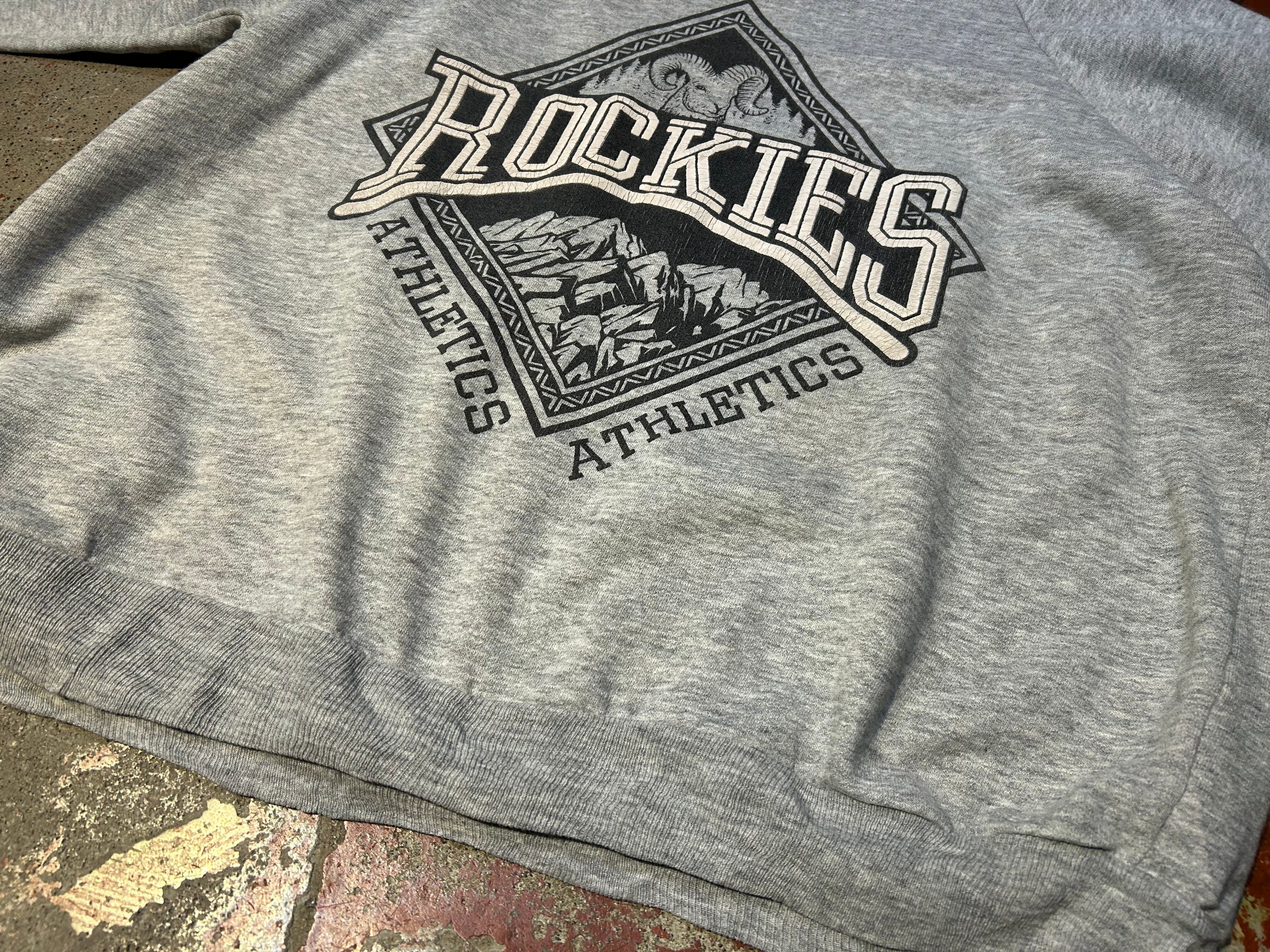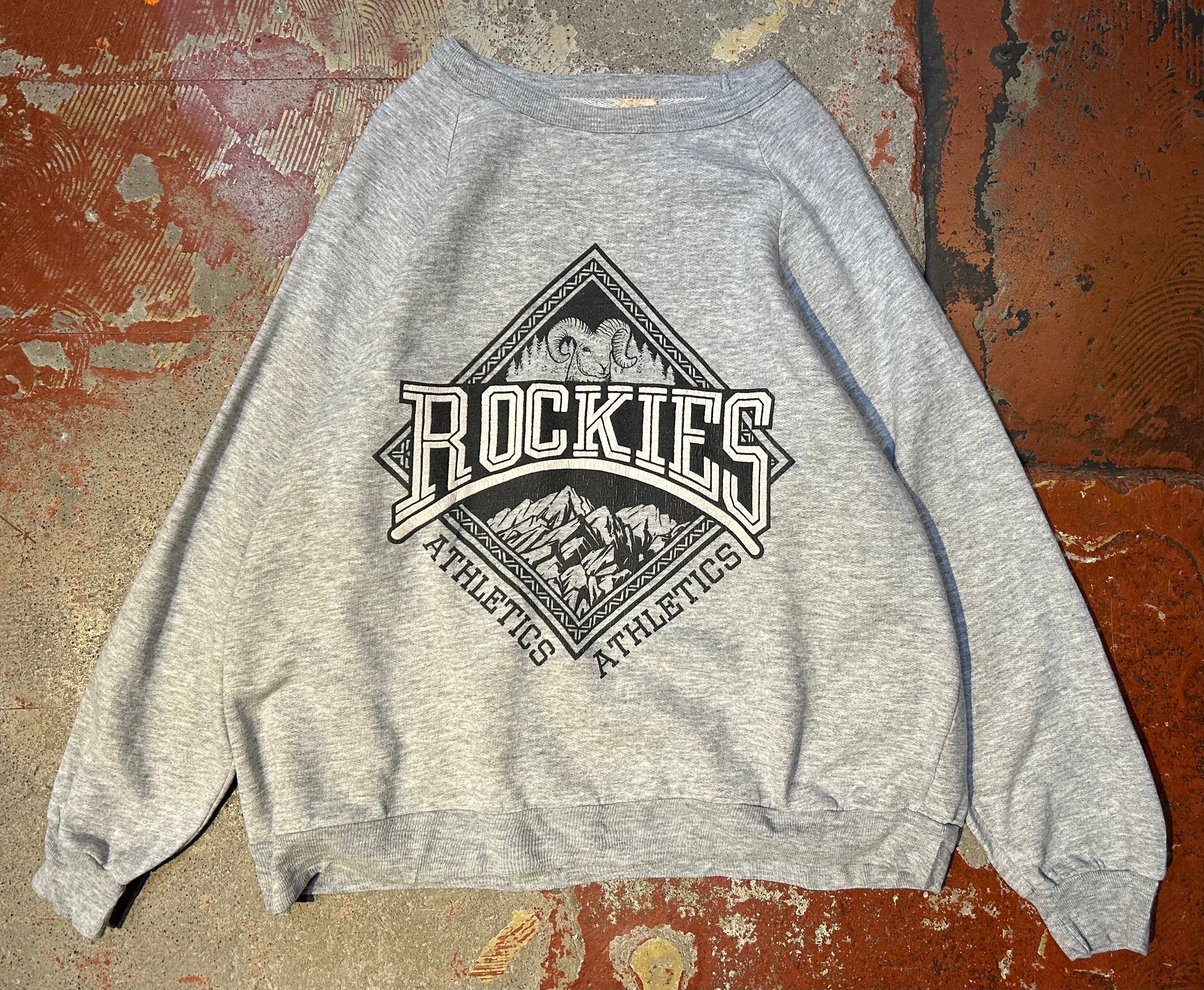霜降りグレー、フロントには大きな羊とROCKIESのプリントのアイテム。