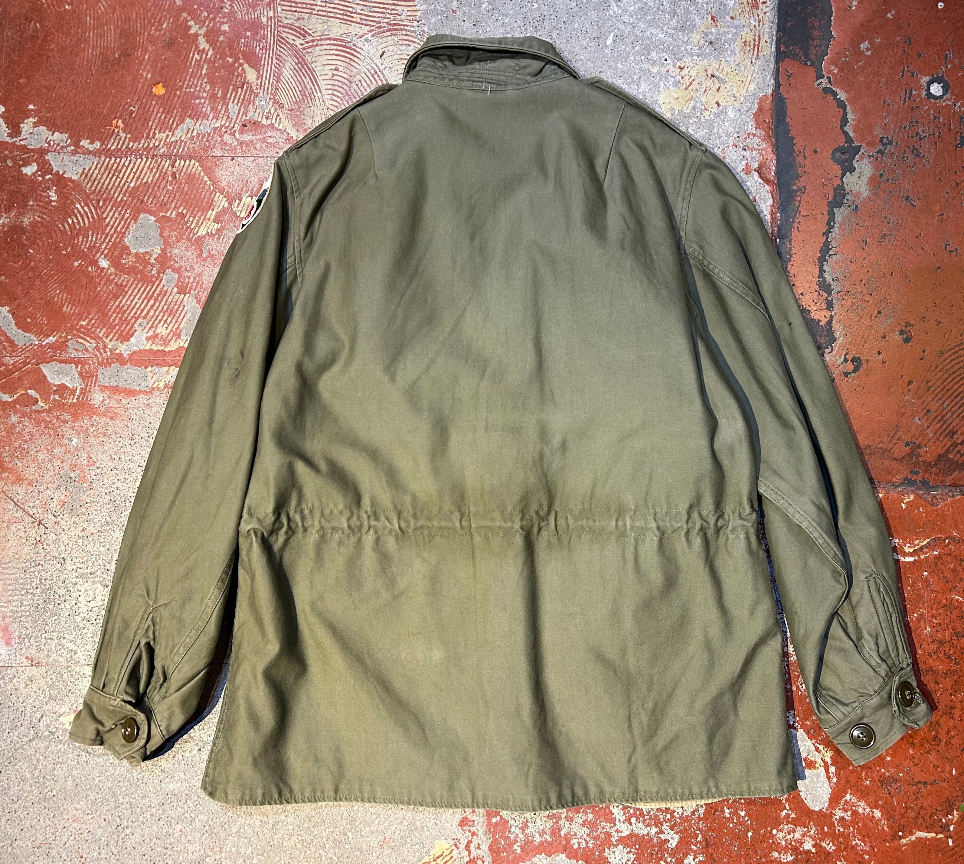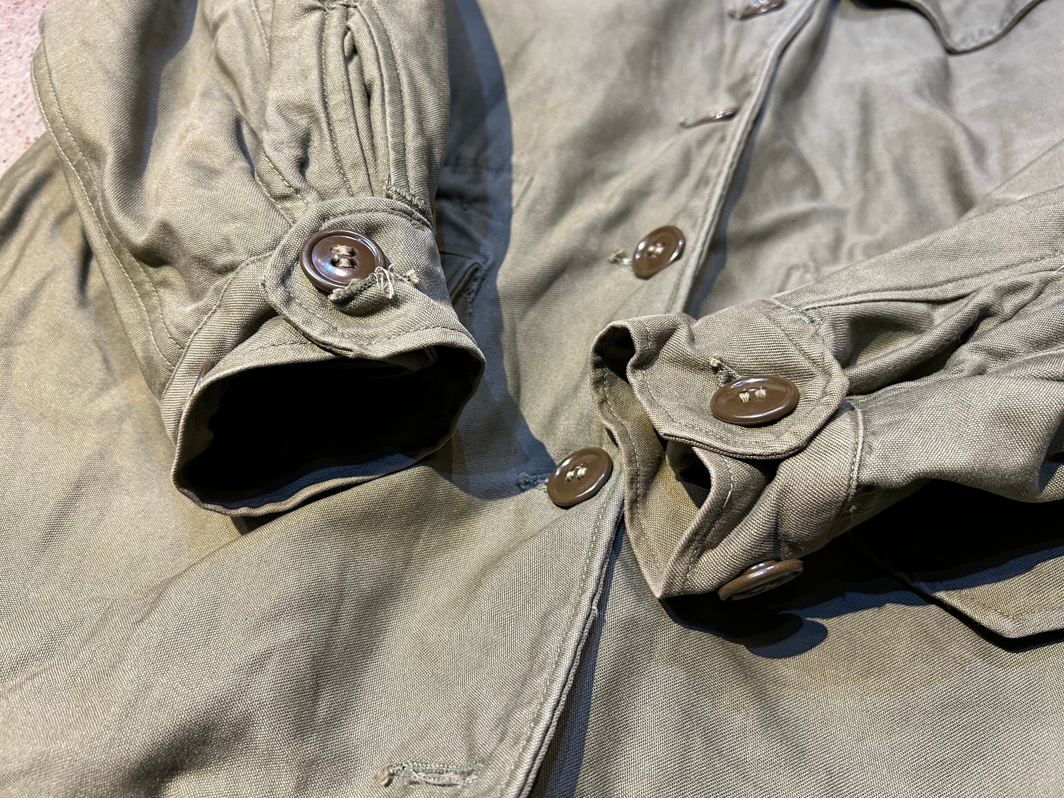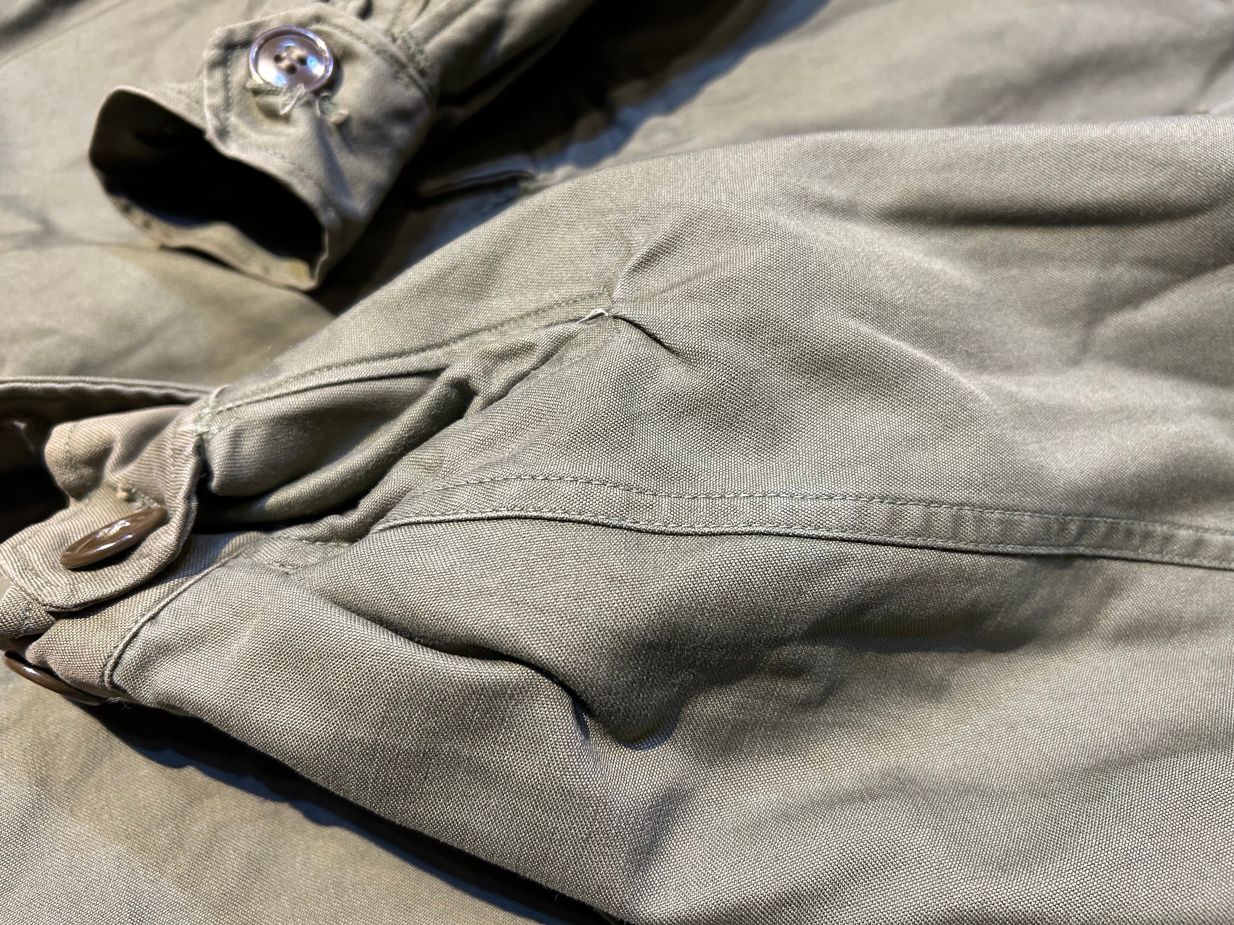 コンディション:裏油染みの様なものが、若干表背中のドローコード付近に滲んでおります。フロント第二第三ボタン付近白い汚れ、肩や袖に汚れ等ございますが、風合いとしてお楽しみ頂けると思います。その他特筆するようなダメージもなく、ビンテージにご理解頂いている方でしたら気にならない程度だと思われます。